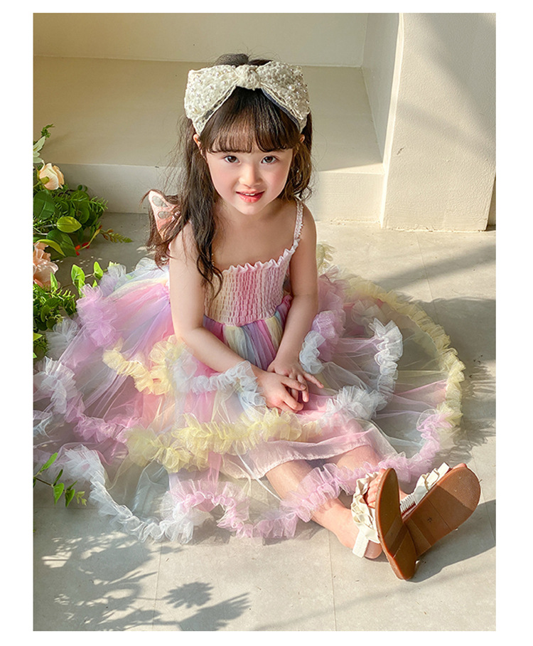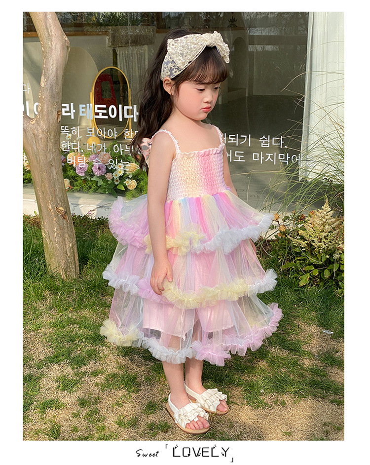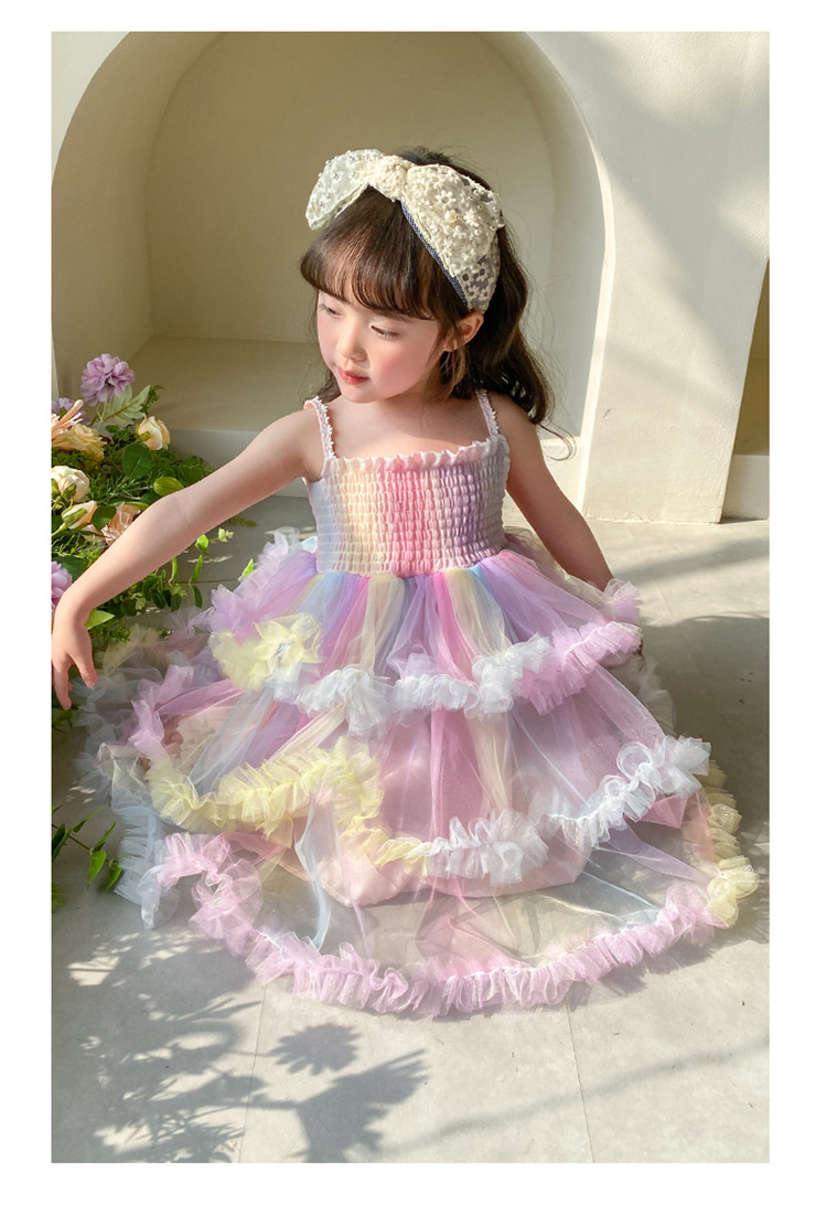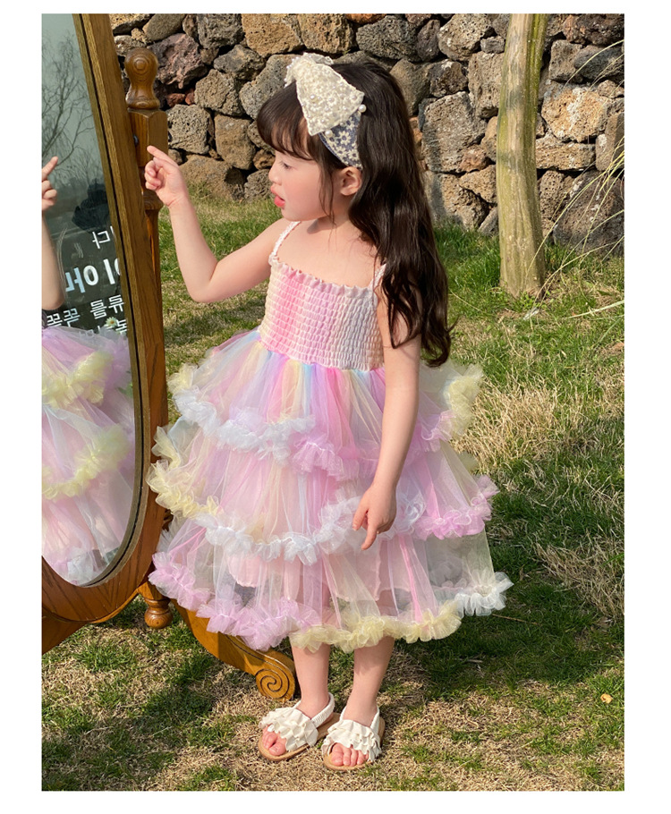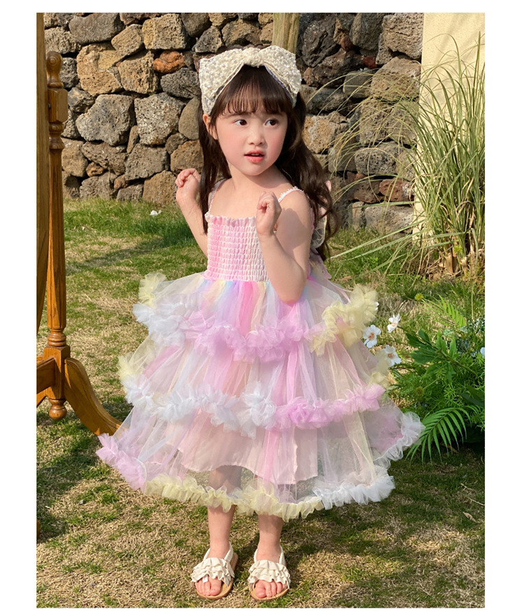 소녀의 무지개 스트랩 공주 원피스 서양 스타일 2023 새로운 여름 소녀 아기 투투 생일 케이크 원피스스토어 가기