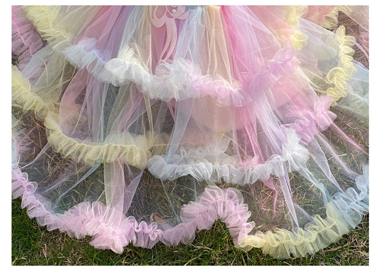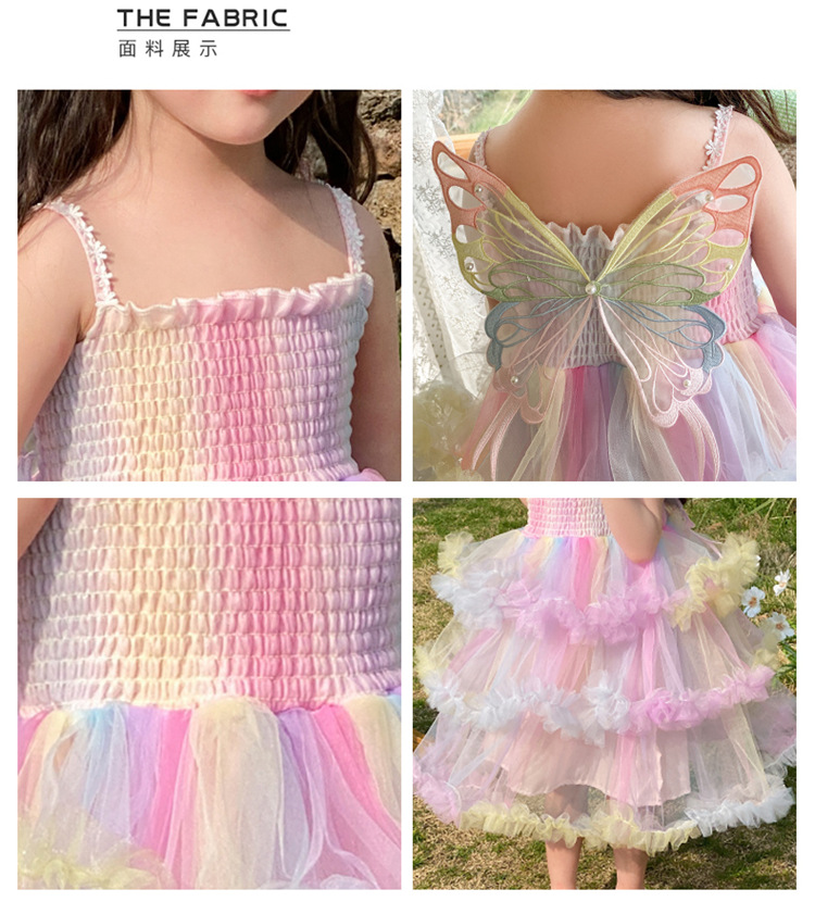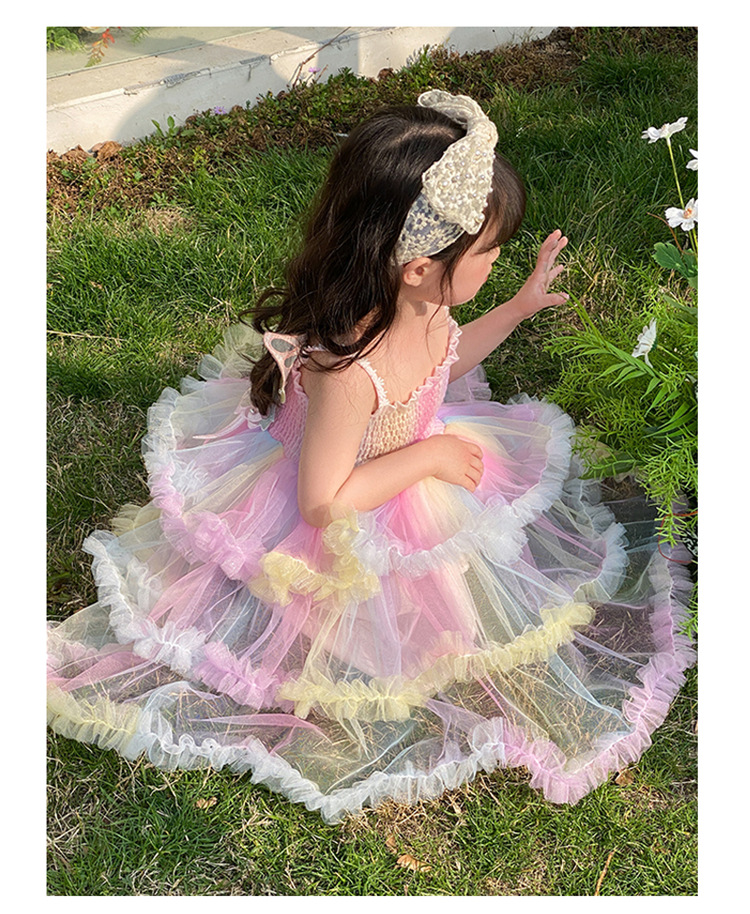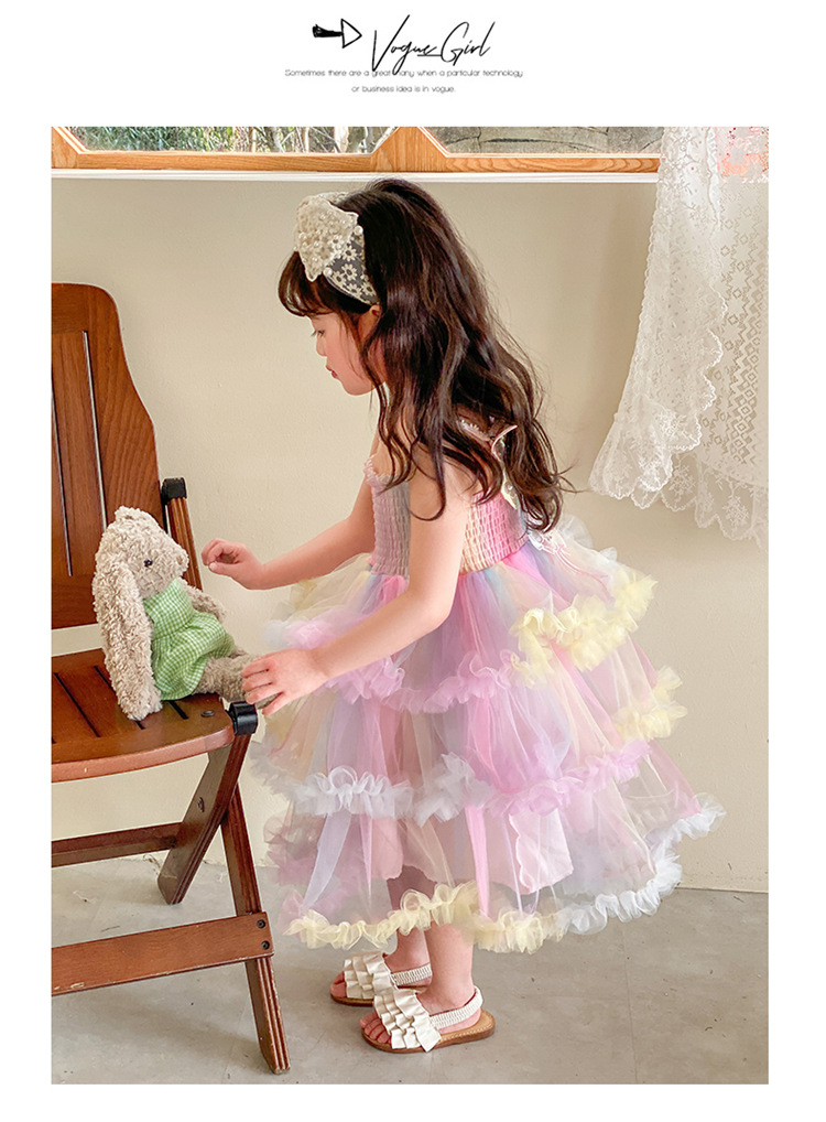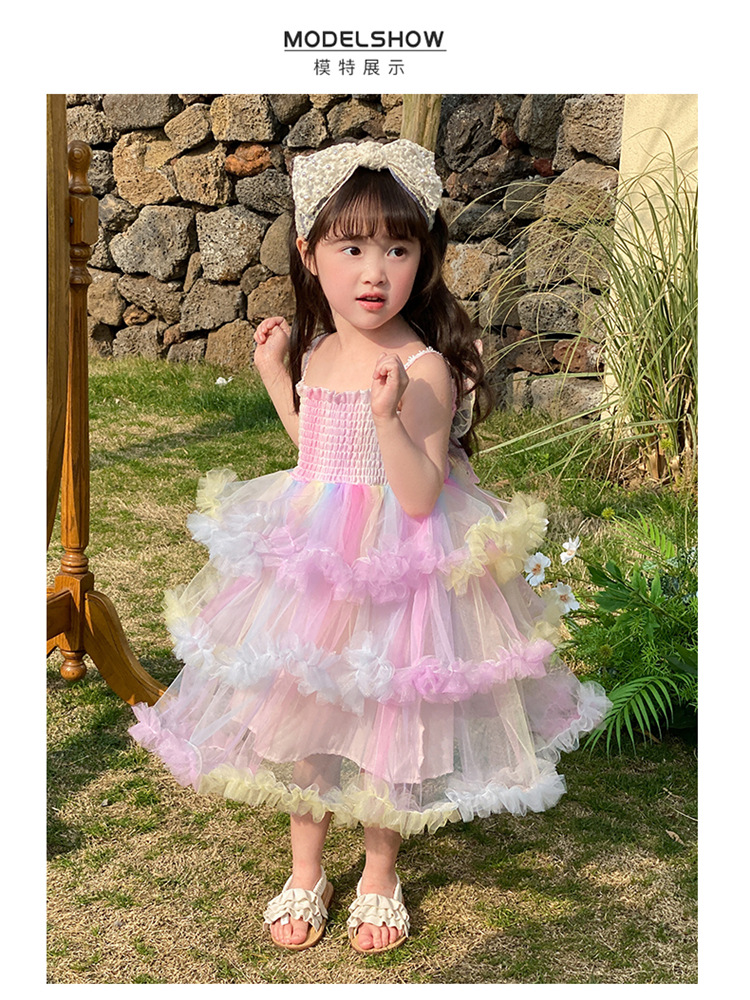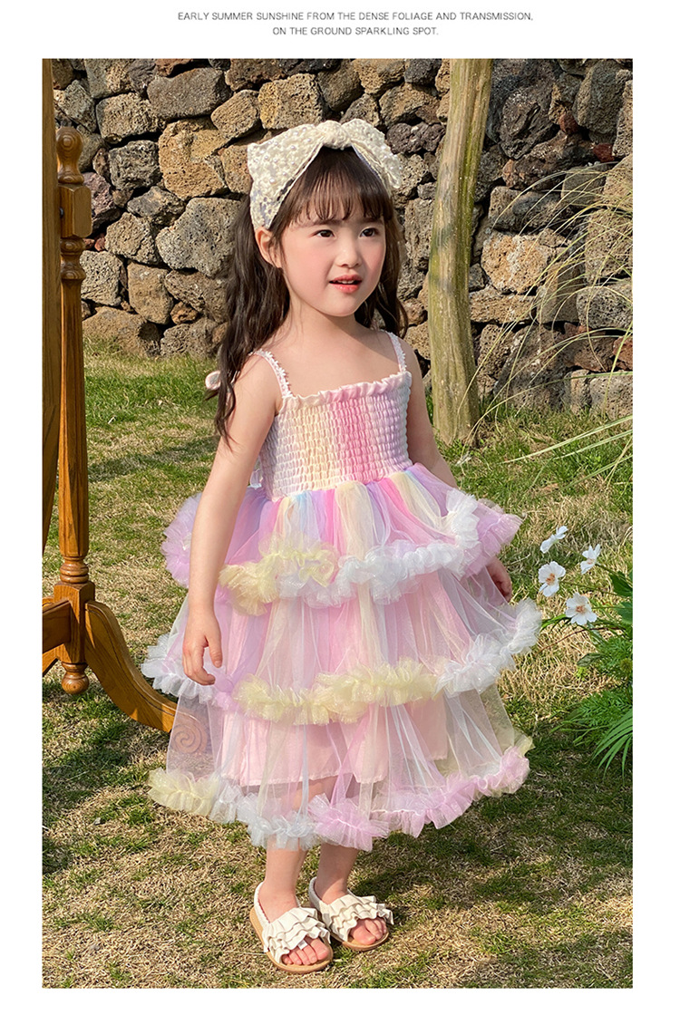 소녀의 무지개 스트랩 공주 원피스 서양 스타일 2023 새로운 여름 소녀 아기 투투 생일 케이크 원피스스토어 가기