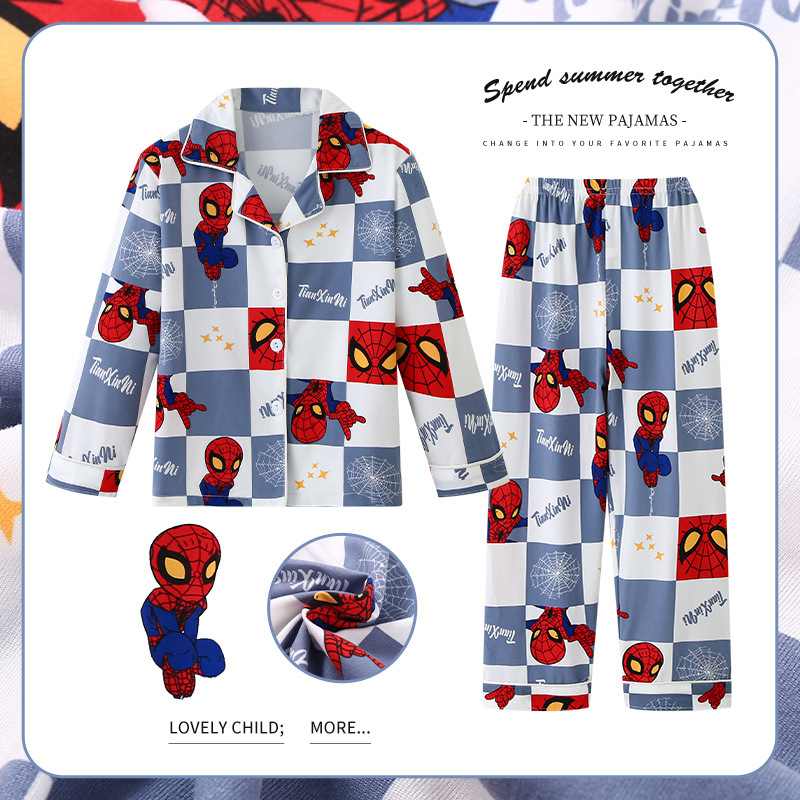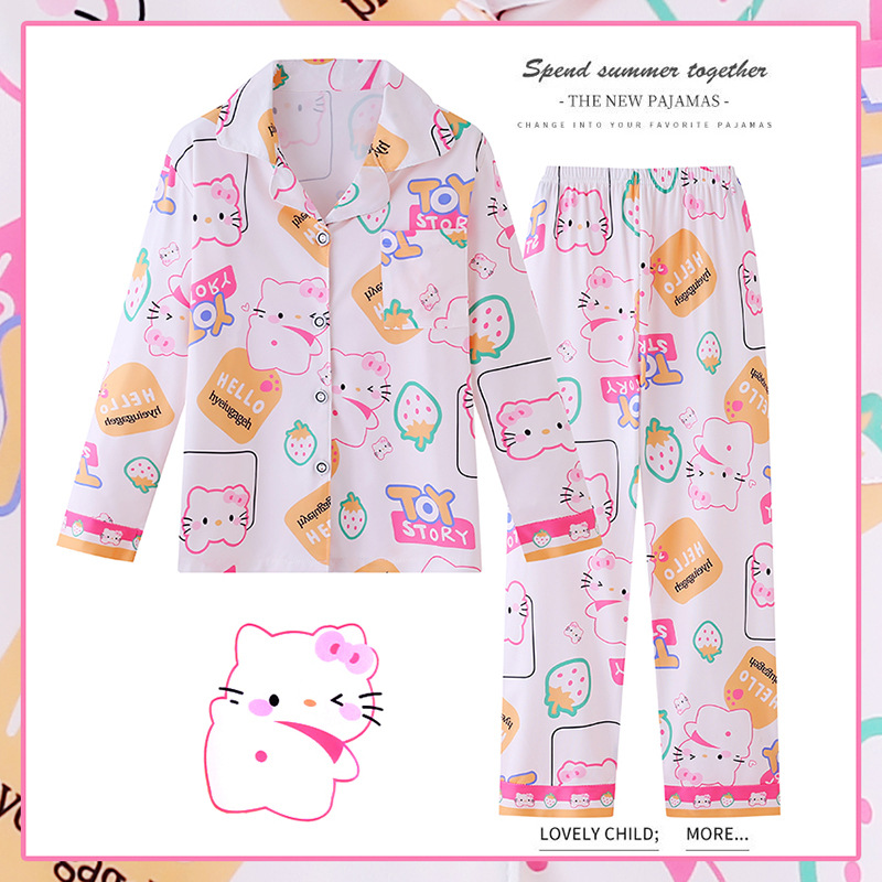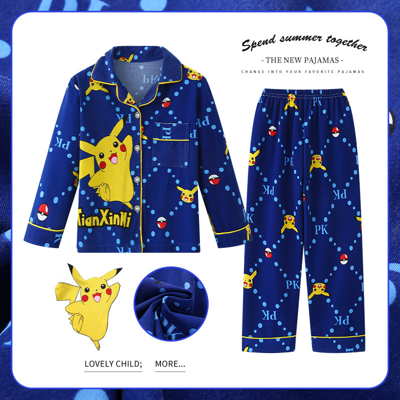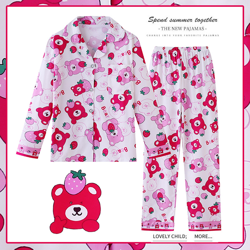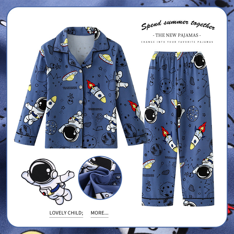 어린이 잠옷 소녀와 소년 봄과 가을 만화 공주 스타일 카디건 옷깃 소녀 큰 어린이 가정 옷 겉옷스토어 가기