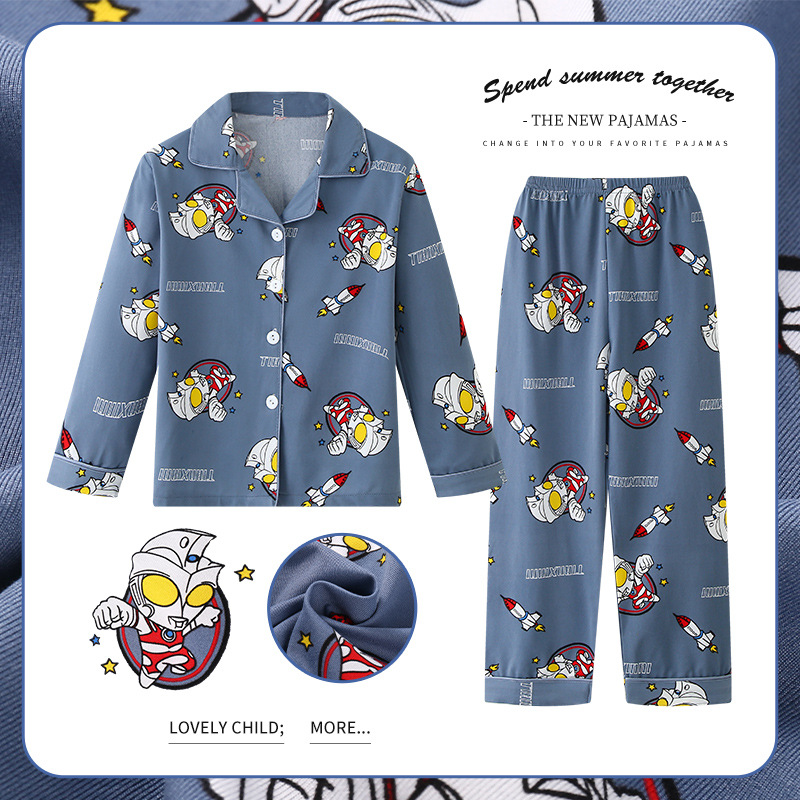 어린이 잠옷 소녀와 소년 봄과 가을 만화 공주 스타일 카디건 옷깃 소녀 큰 어린이 가정 옷 겉옷