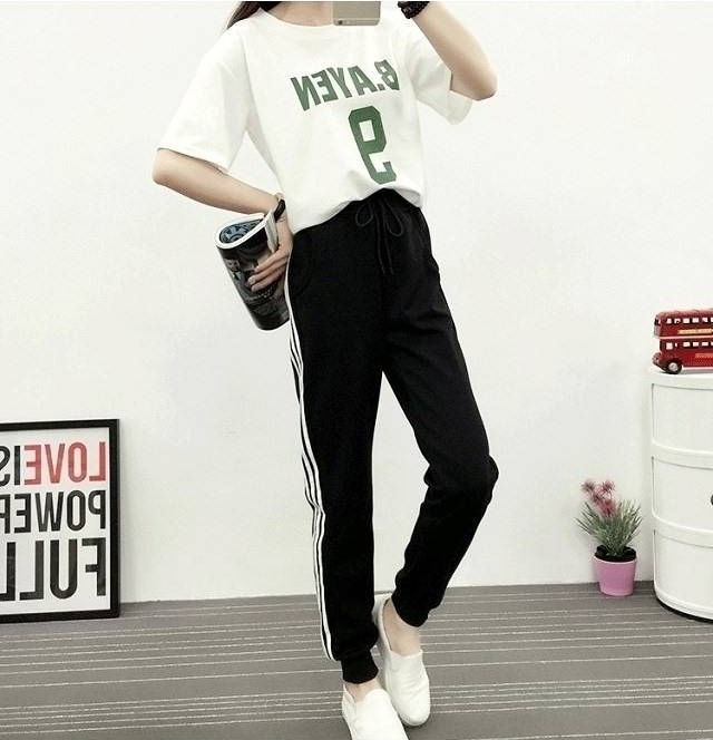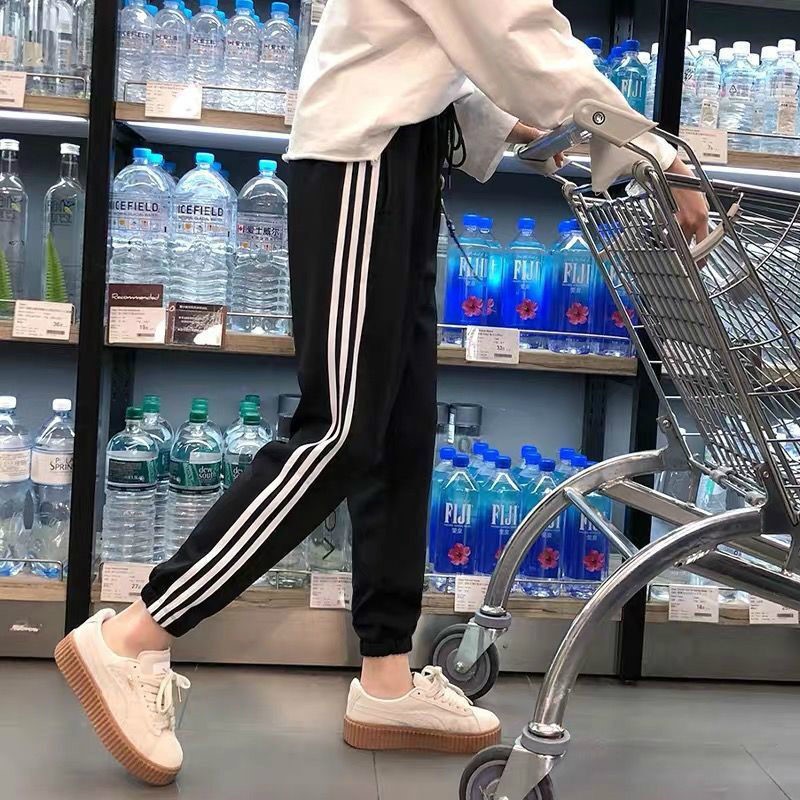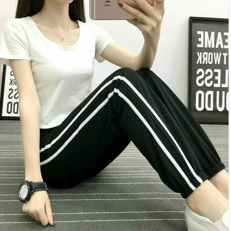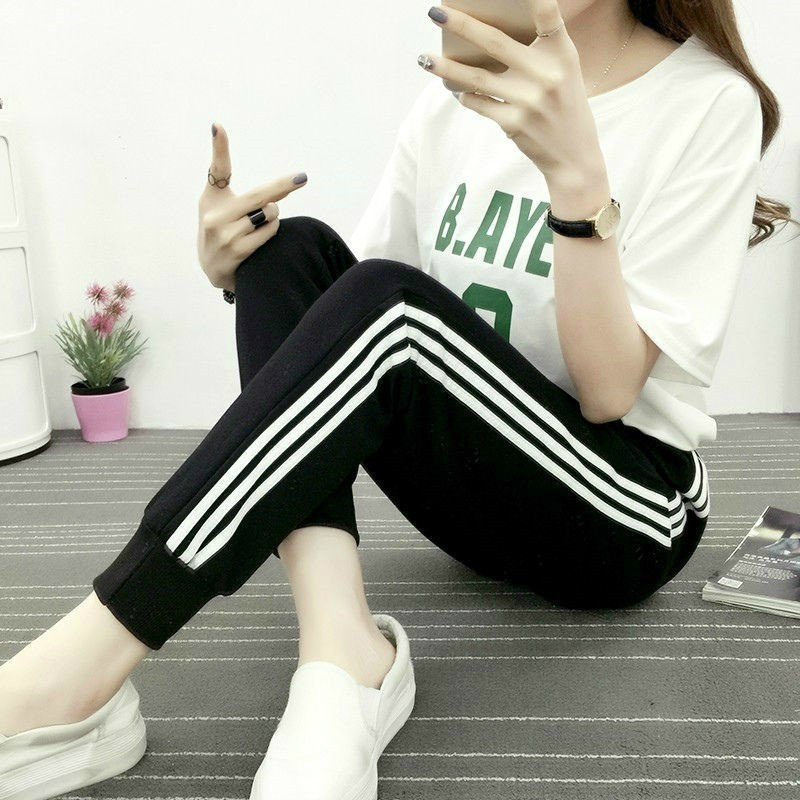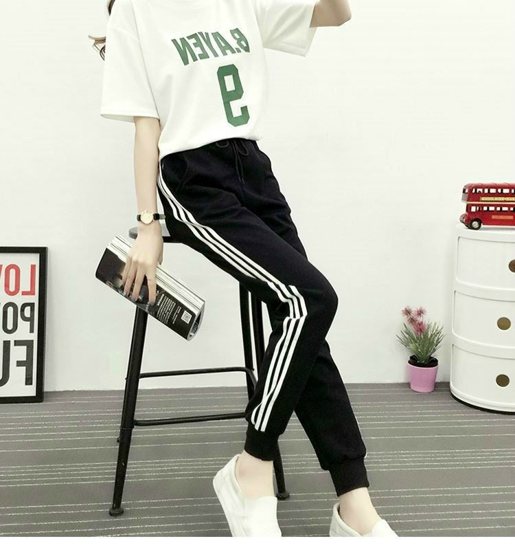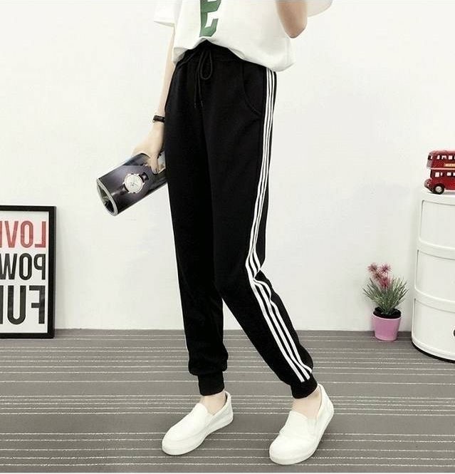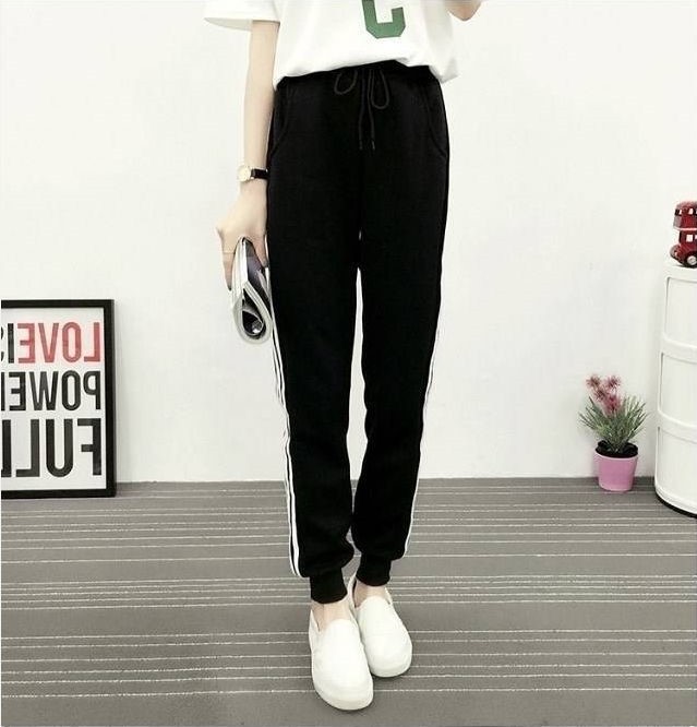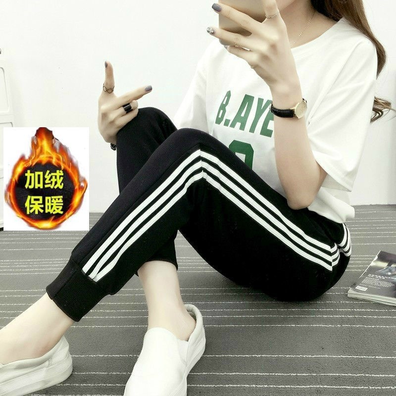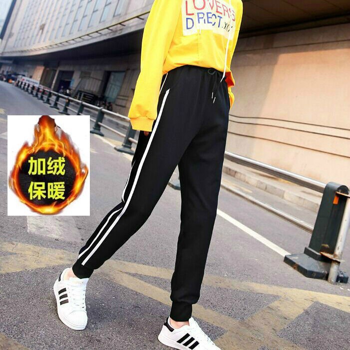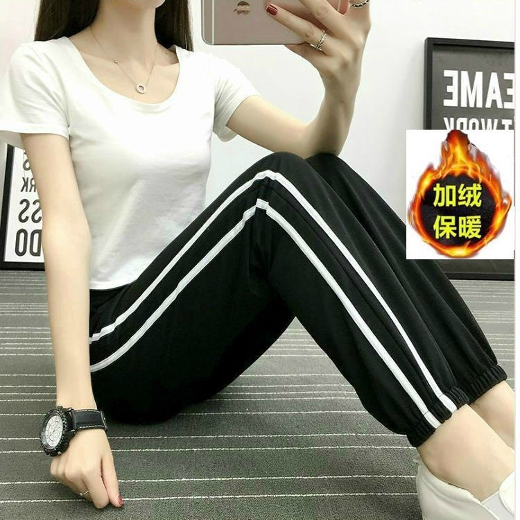 여성 학생을위한 얇은/기모 생성 느슨한 스포츠 바지 한국 스타일 캐주얼 바지 여성용 대형 바지스토어 가기