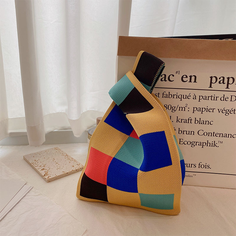 조끼 가방 새로운 하이 엔드 마름모꼴 작은 사각 가방 유행 어깨 니트 짠 가방 색상 일치 바둑판 핸드백스토어 가기