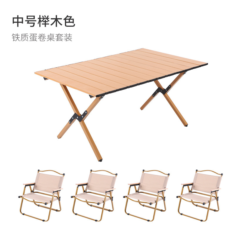 • 중간 탄소강 철 너도밤 나무 색 달걀 롤 테이블 + 4 개의 중간 의자