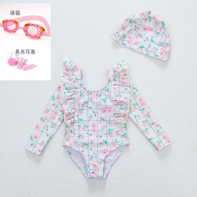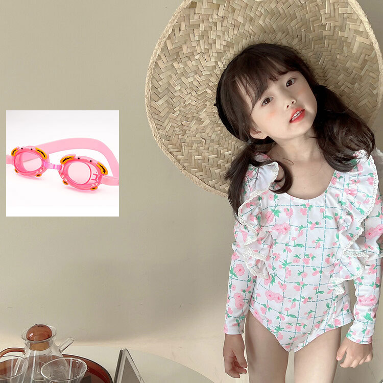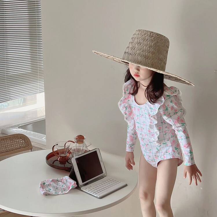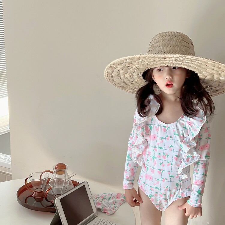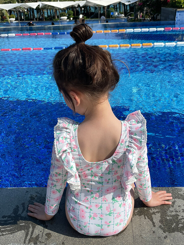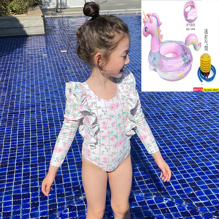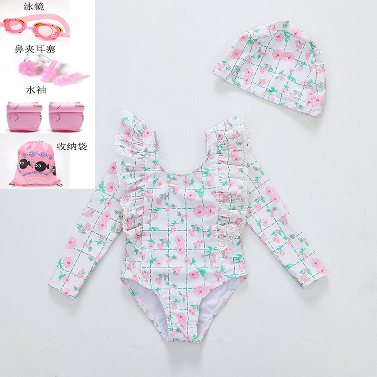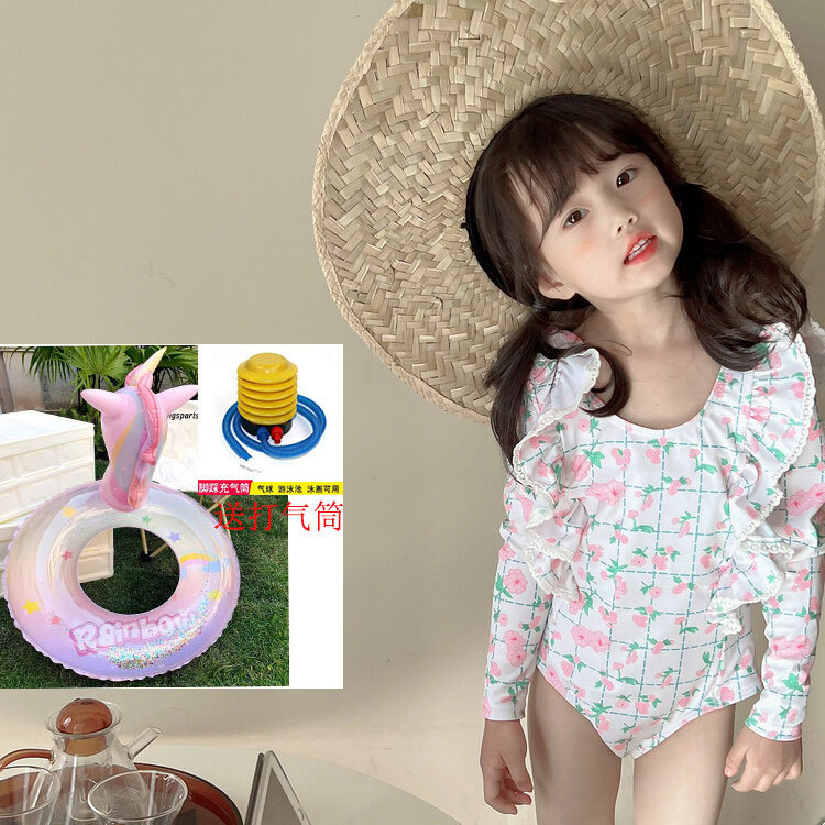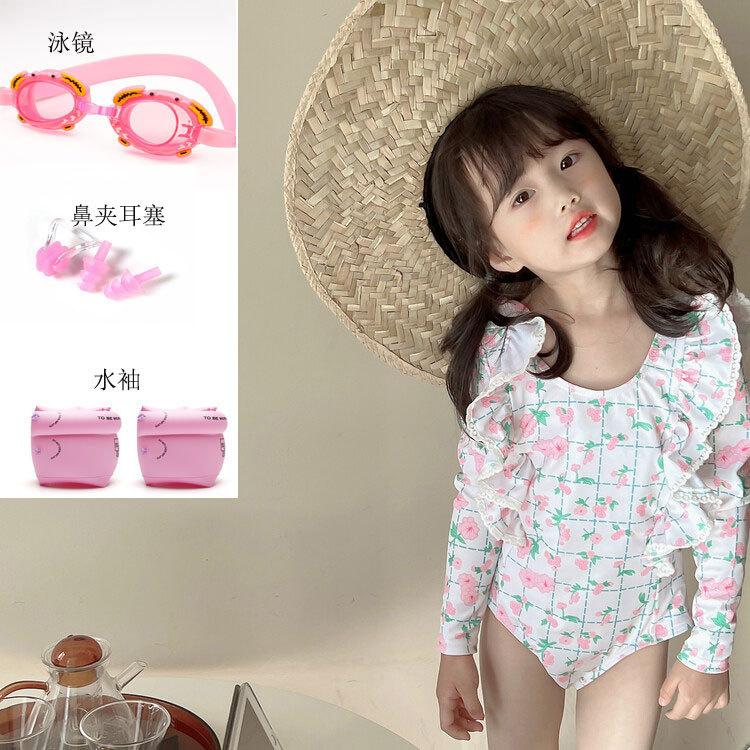 여아 긴팔 원피스 수영복 귀여운 공주 아기 온천 수영복 한국식 세트 도매