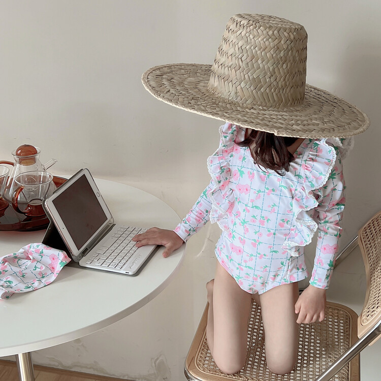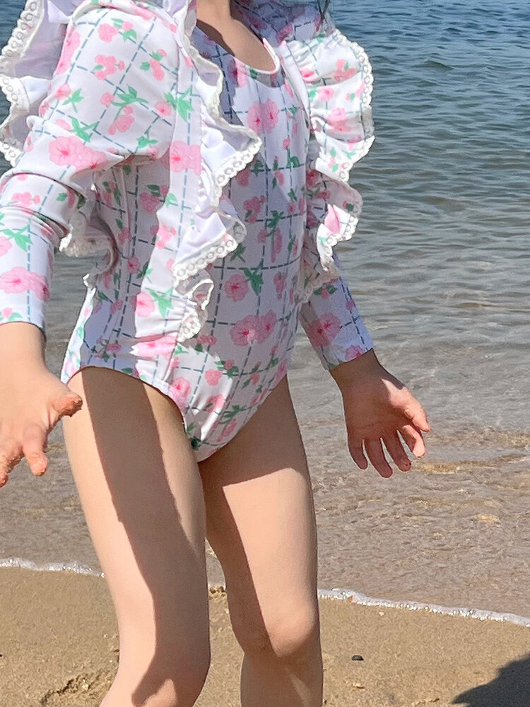 여아 긴팔 원피스 수영복 귀여운 공주 아기 온천 수영복 한국식 세트 도매스토어 가기