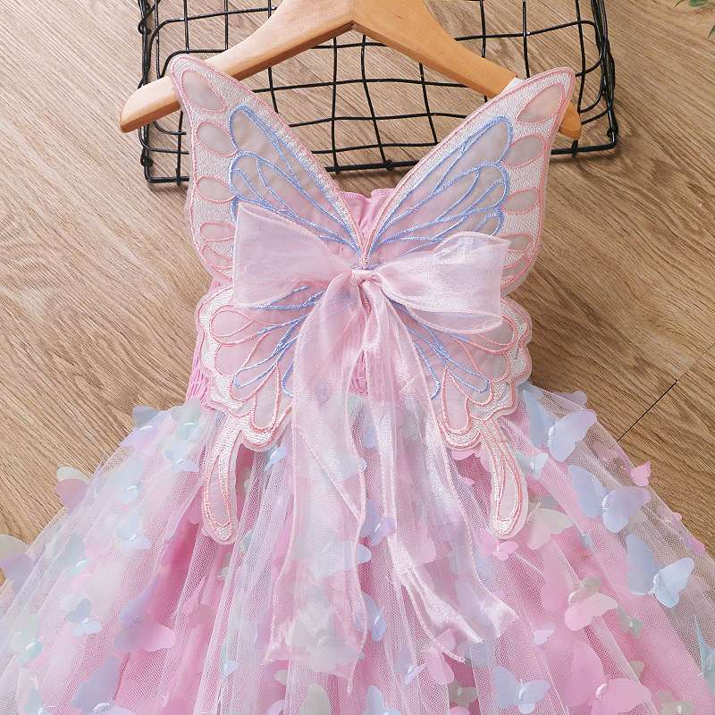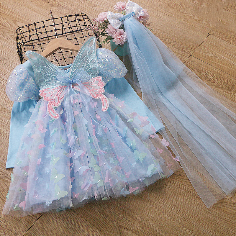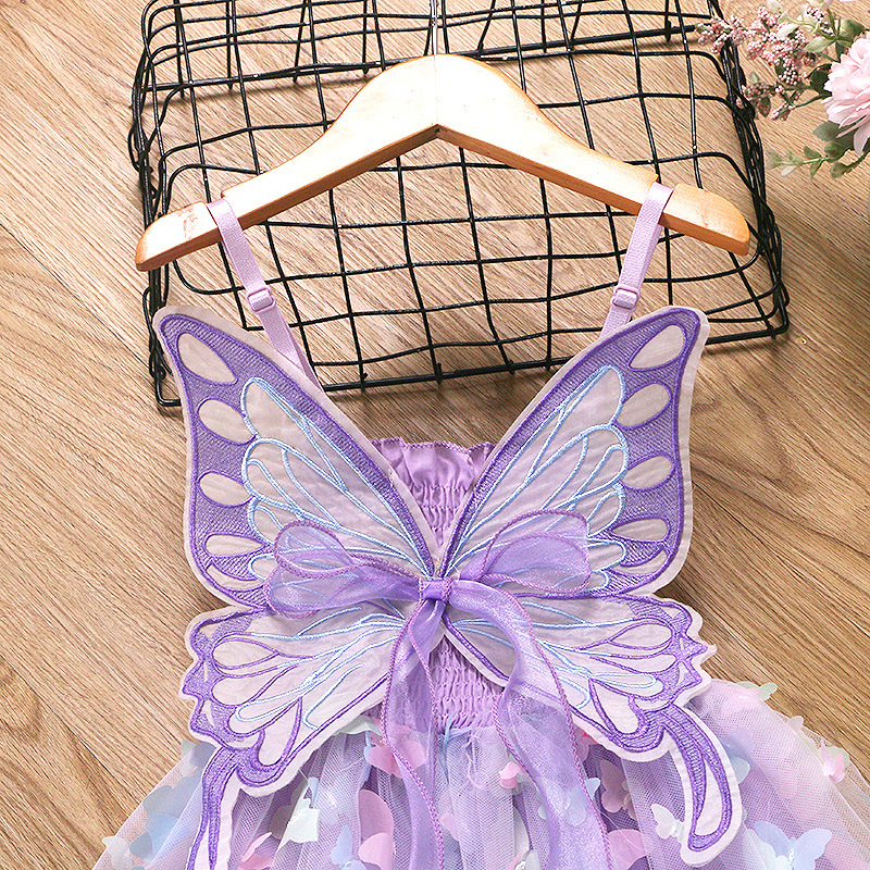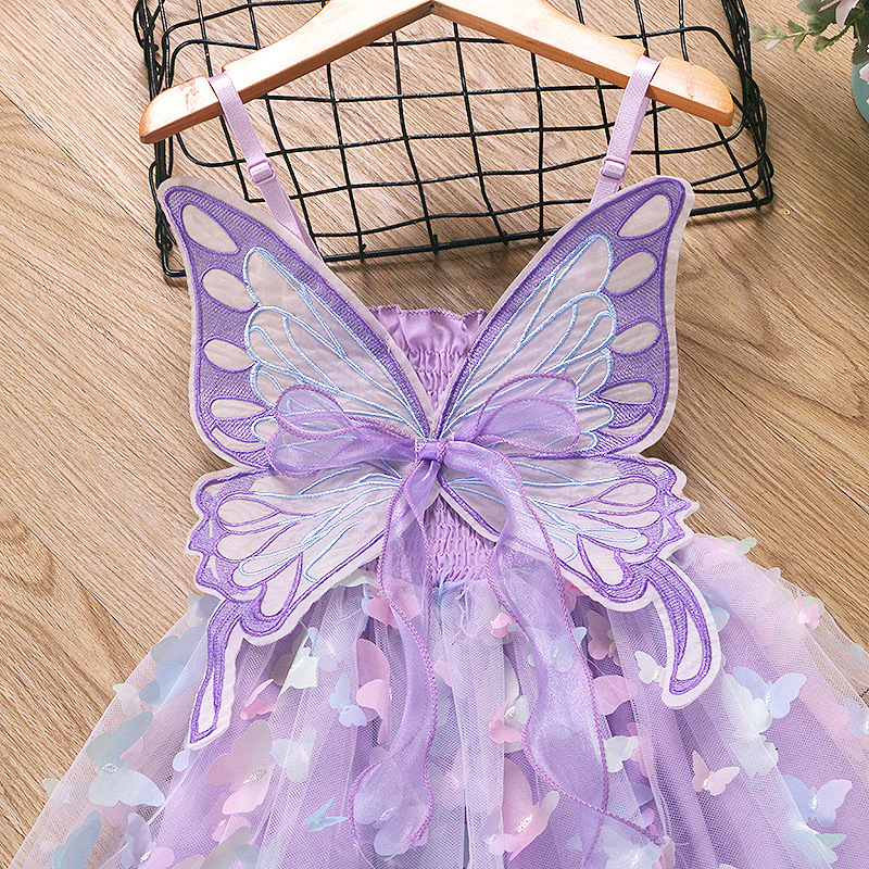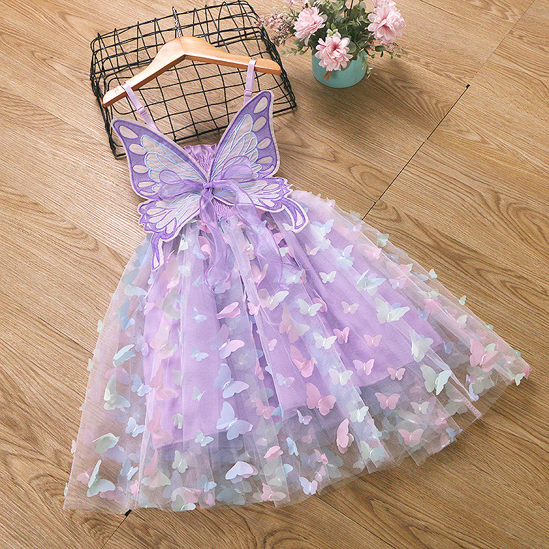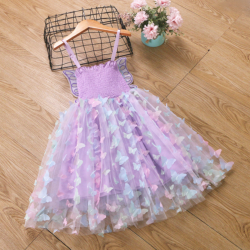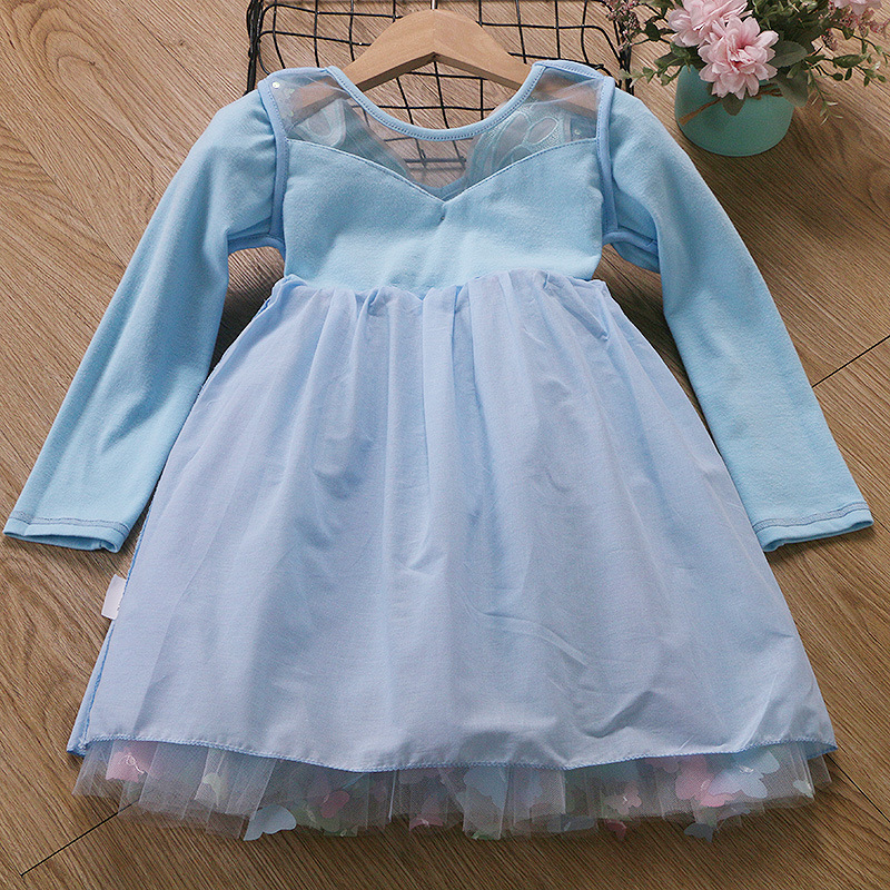 귀여운 크로스보더 순면 어린이 스커트, 나비 스트랩 망사 스커트, 여자아이 드레스, 컬러풀한 조명, 얼음과 눈의 공주 드레스스토어 가기