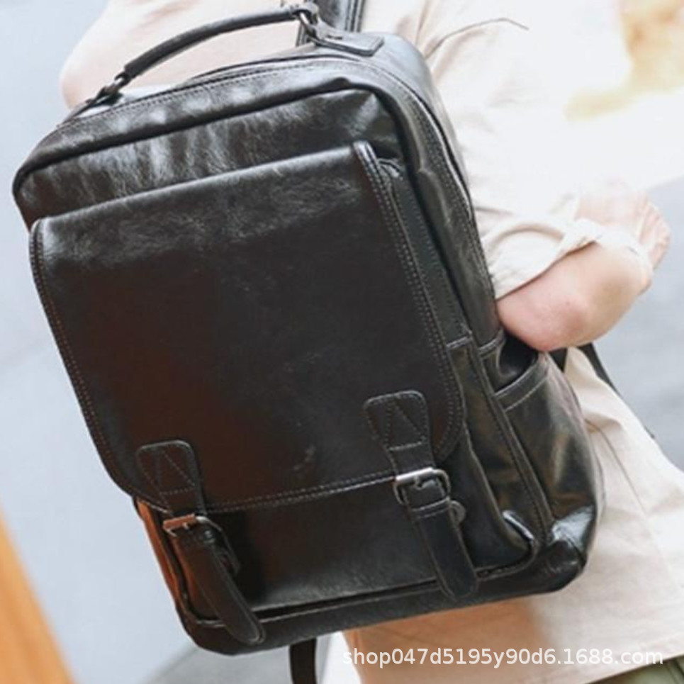 스팟 공장 직접 2024 새로운 한국 패션 남성 배낭 학생 여행 PU 가죽 가방 남성
