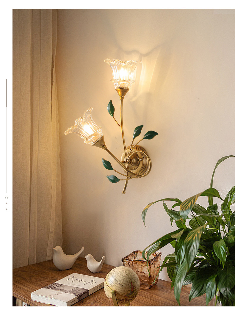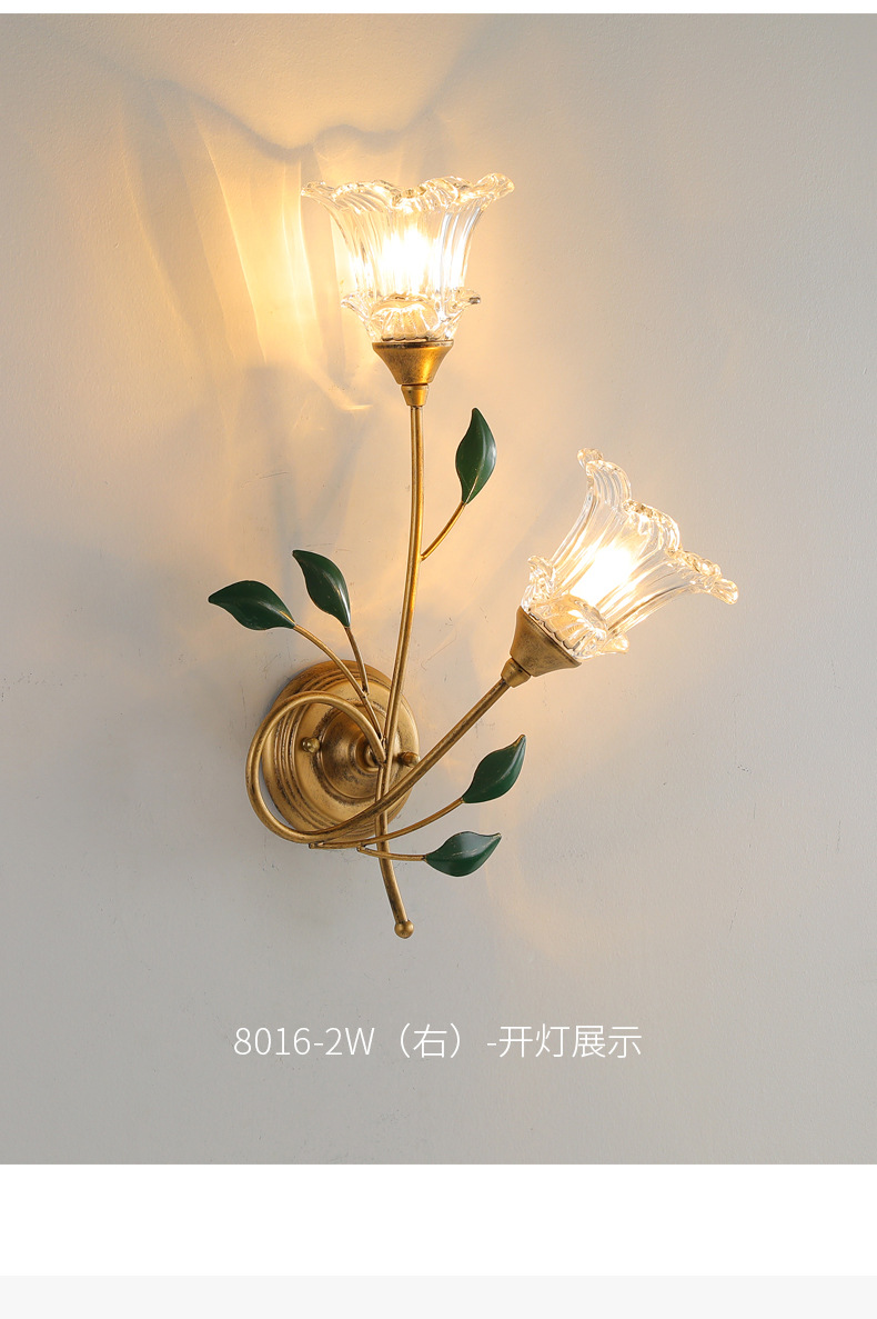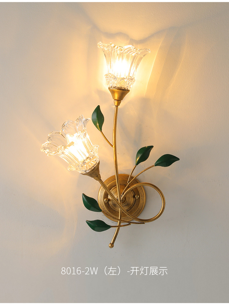 미국 스타일 벽 램프 현대 간단한 유럽 스타일 창조적 인 꽃 침실 침대 옆 램프 프랑스 목가적 인 거실 배경 벽 램프