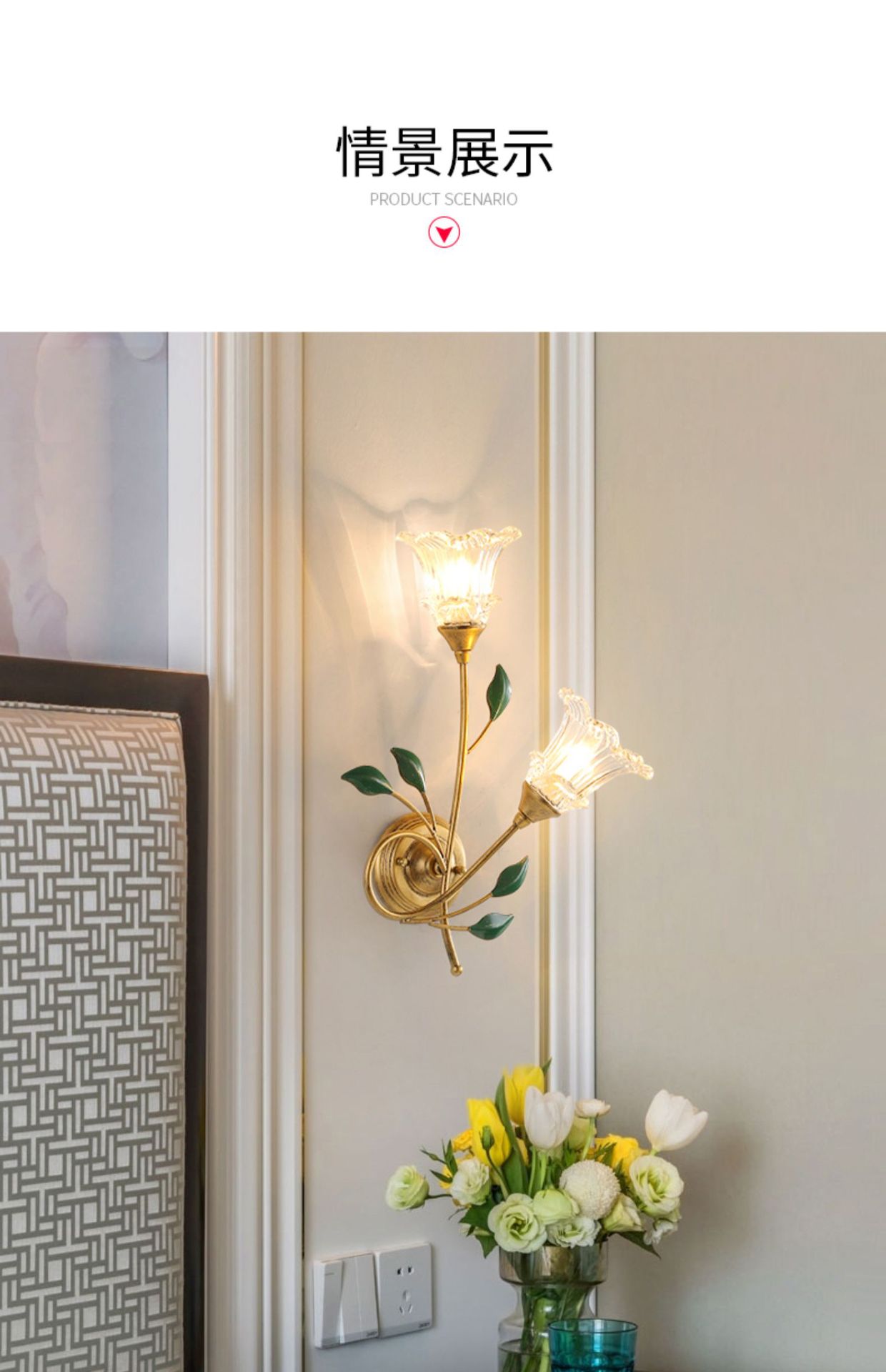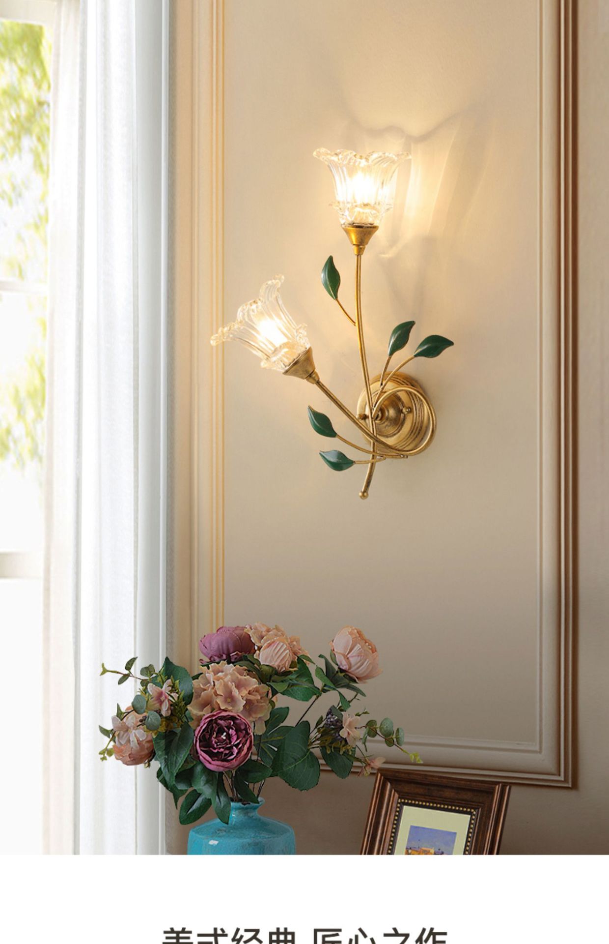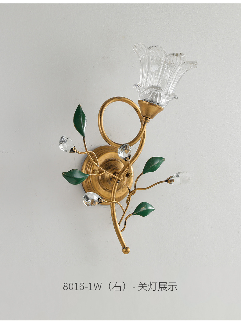 미국 스타일 벽 램프 현대 간단한 유럽 스타일 창조적 인 꽃 침실 침대 옆 램프 프랑스 목가적 인 거실 배경 벽 램프스토어 가기
