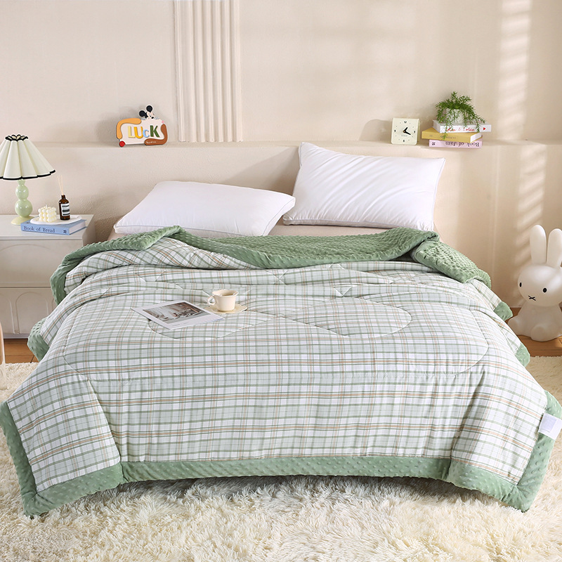 • 손으로 감싼 콩 이불 녹색 큰 격자 무늬