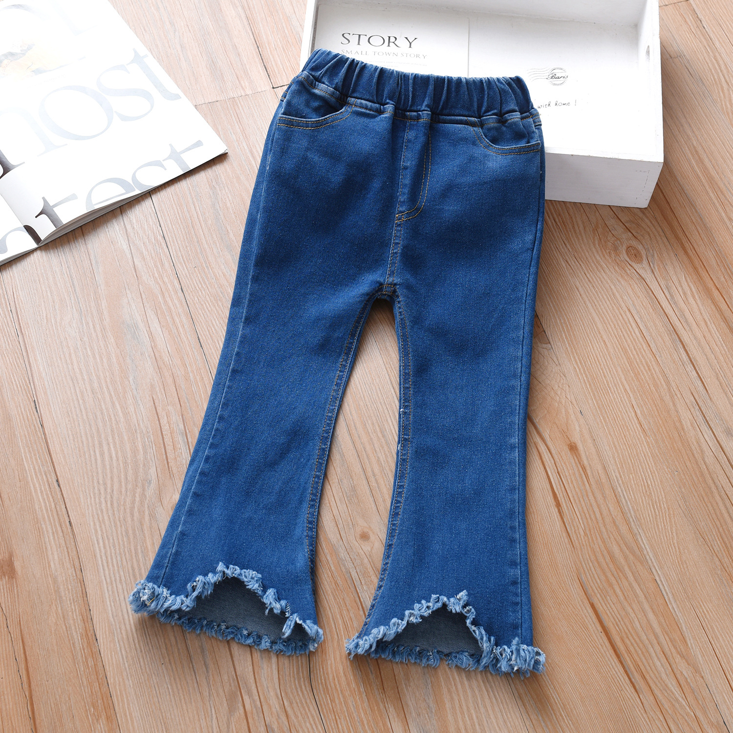 한국 아동복 여아 청바지 2023 봄 새 어린이 마이크로 혼 바지 패션 서양식 아기스토어 가기