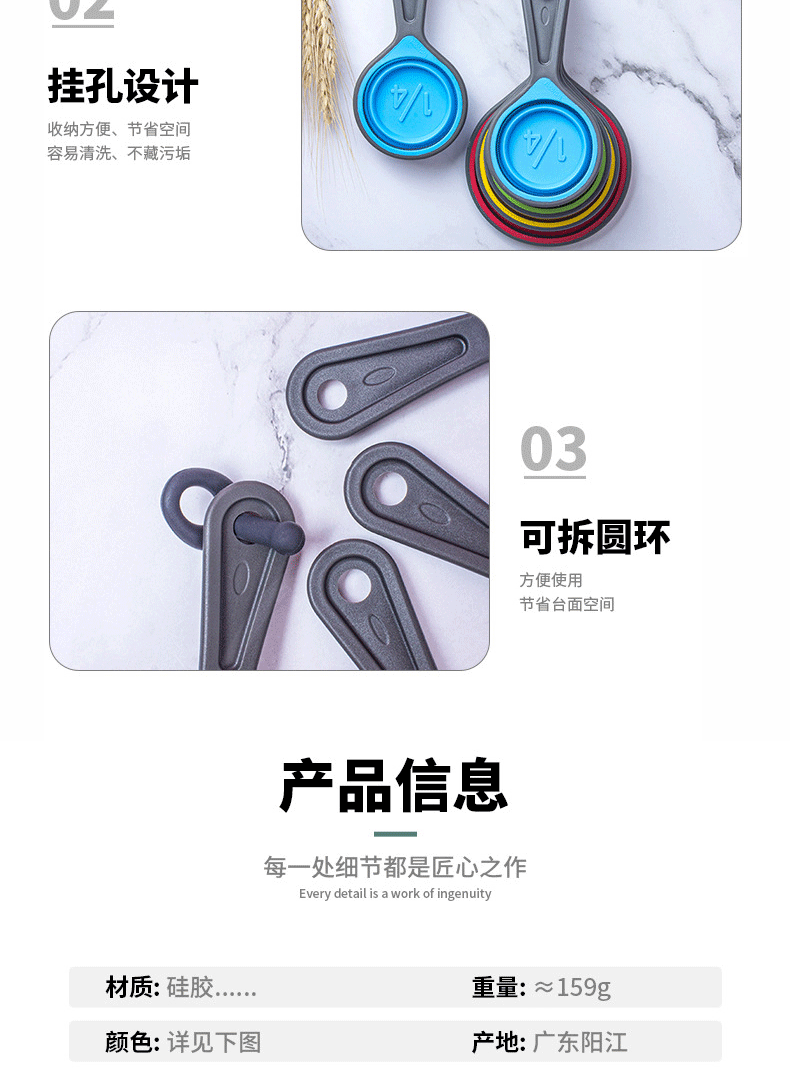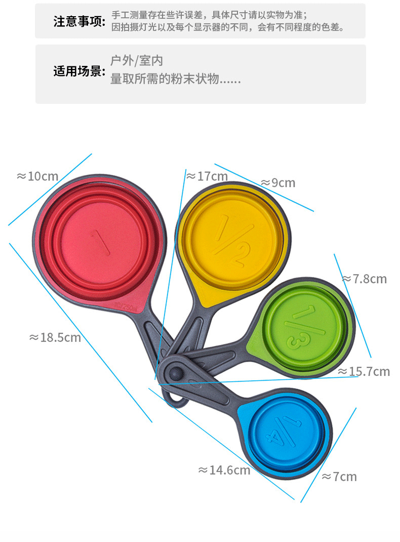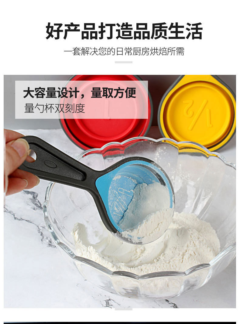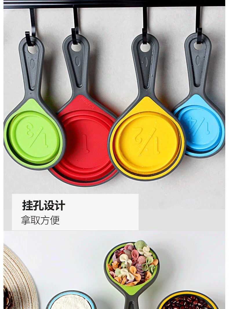 사용자 정의 아마존 핫 세일 주방 후크 텔레스코픽 접이식 실리콘 측정 스푼 베이킹 스푼 측정 스푼 스케일 스푼