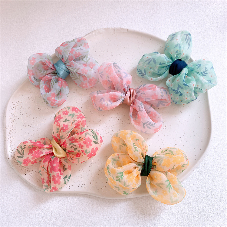 아기의 인쇄 된 활 머리핀 헤어밴드 모리 스타일 여아 Xianmei 머리핀 어린이 포니테일 고무 밴드 머리띠 헤어 액세서리