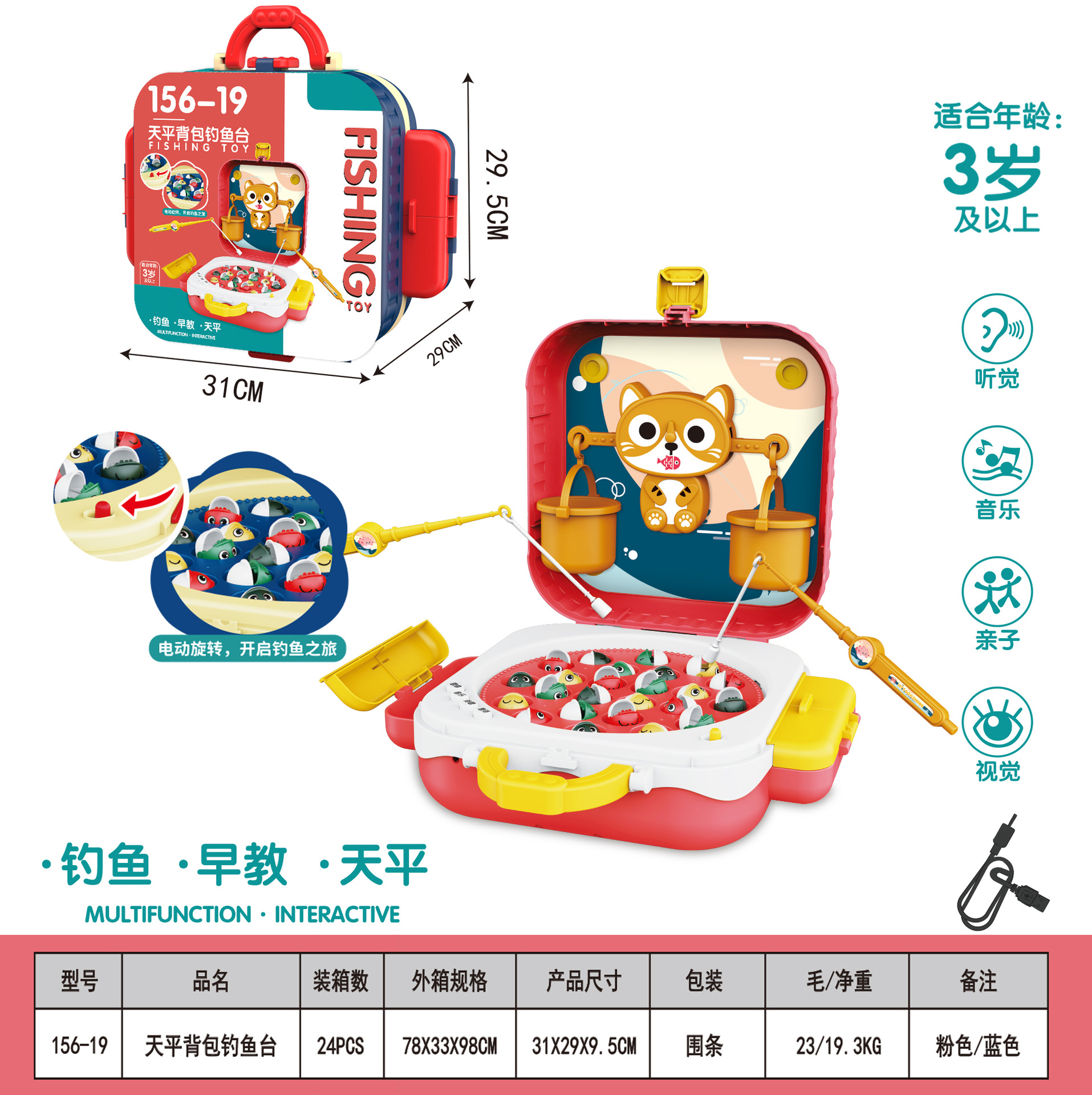 핸드백 새끼 고양이 자기 전기 낚시 장난감 아기 어린이 하마 균형 어린이 생일 선물 교육