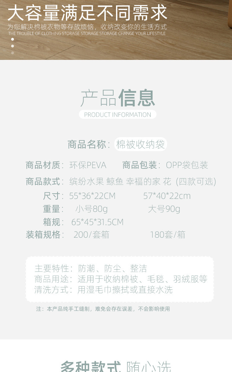 이불 보관 가방 만화 인쇄 의류 대용량 이불 가방 방진 및 방습 이동 포장 가방 대형