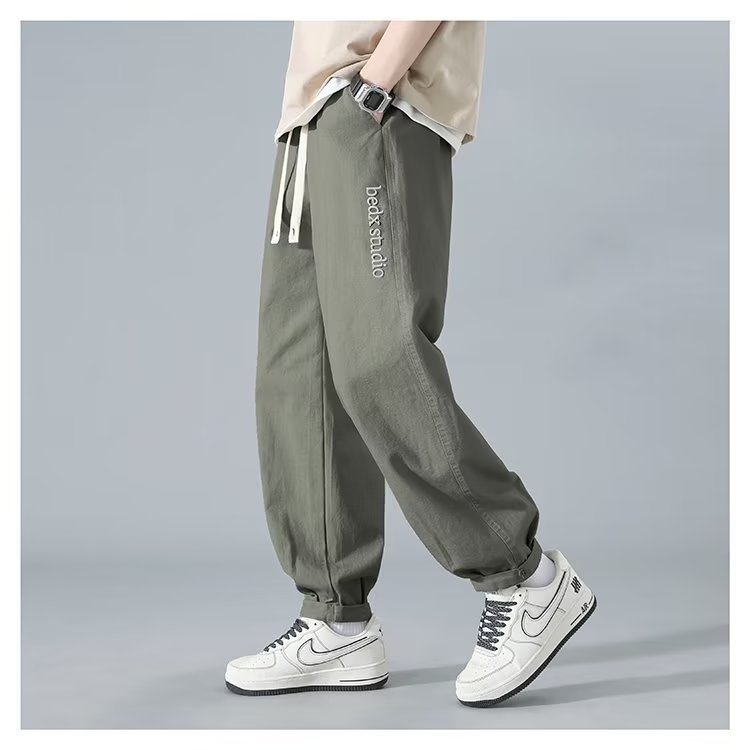 봄과 여름 새로운 2023 바지 남성용 트렌디 브랜드 자수 발 묶음 아메리칸 스포츠 느슨한 캐주얼 바지 남성용 카고 바지