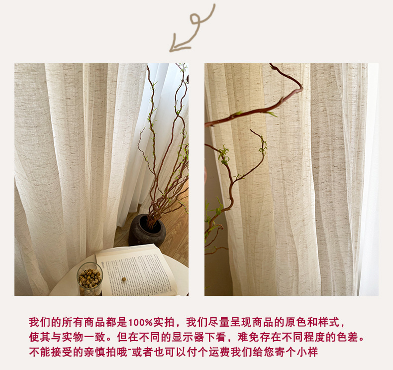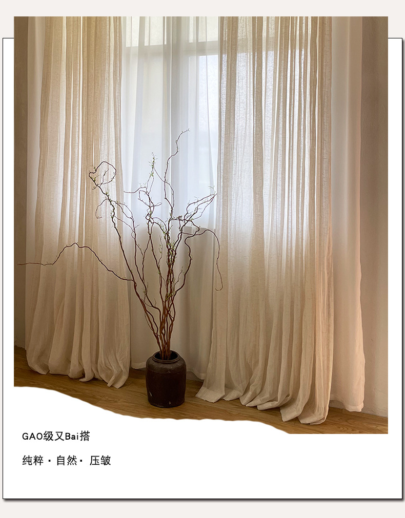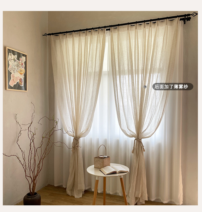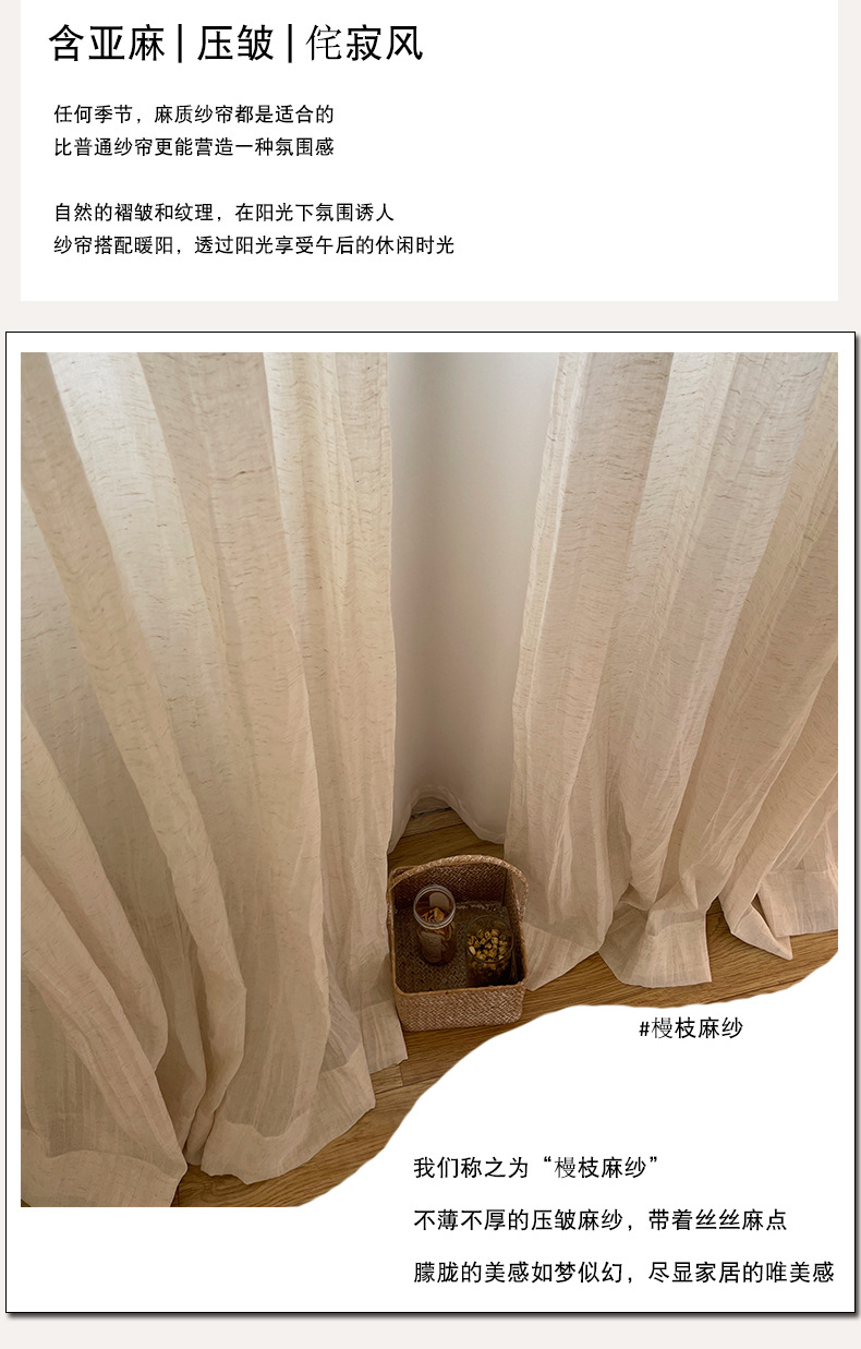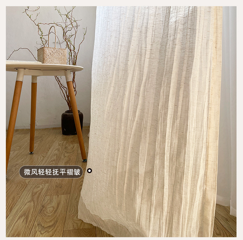 새로운 일본식 홈스테이 바람 침묵하는 바람 틈새 구겨진 면과 린넨 커튼 린넨 거즈 커튼 투명 빛-투과성스토어 가기