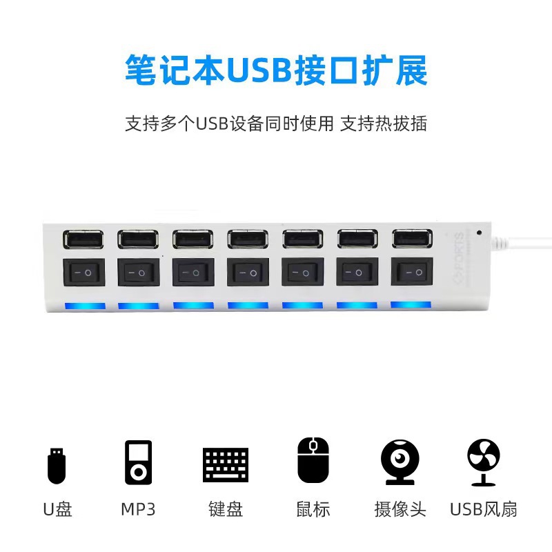 4 포트 독립 스위치 HUB2.0 허브 4 포트 7 포트 컴퓨터 usb 스플리터 7 포트 HUB 1 드래그 4 드래그