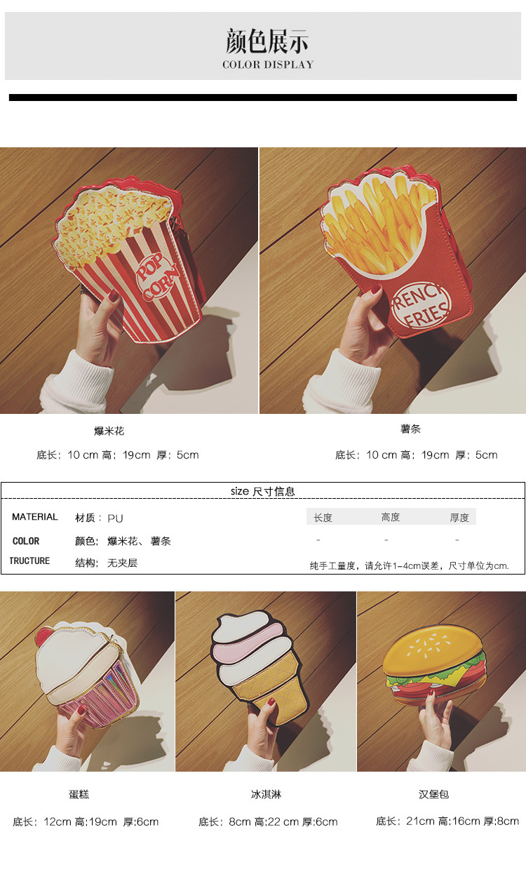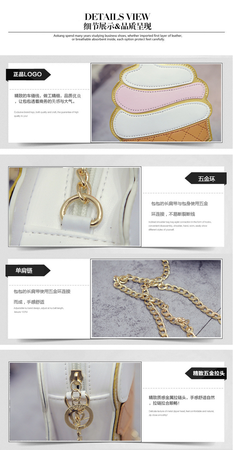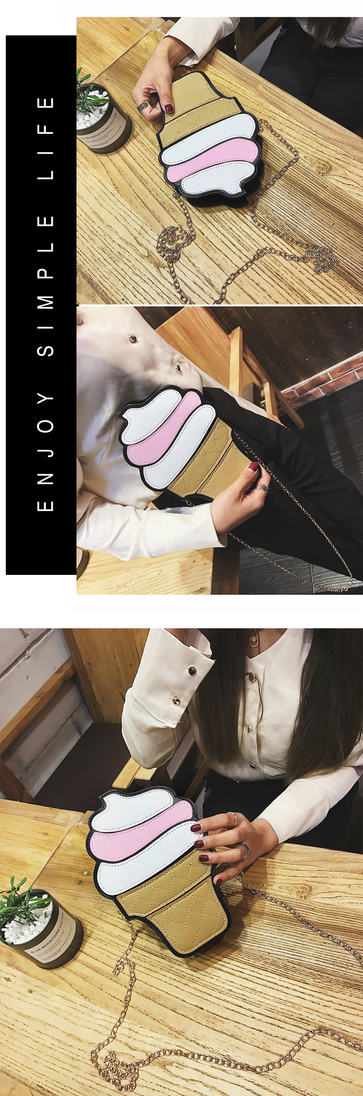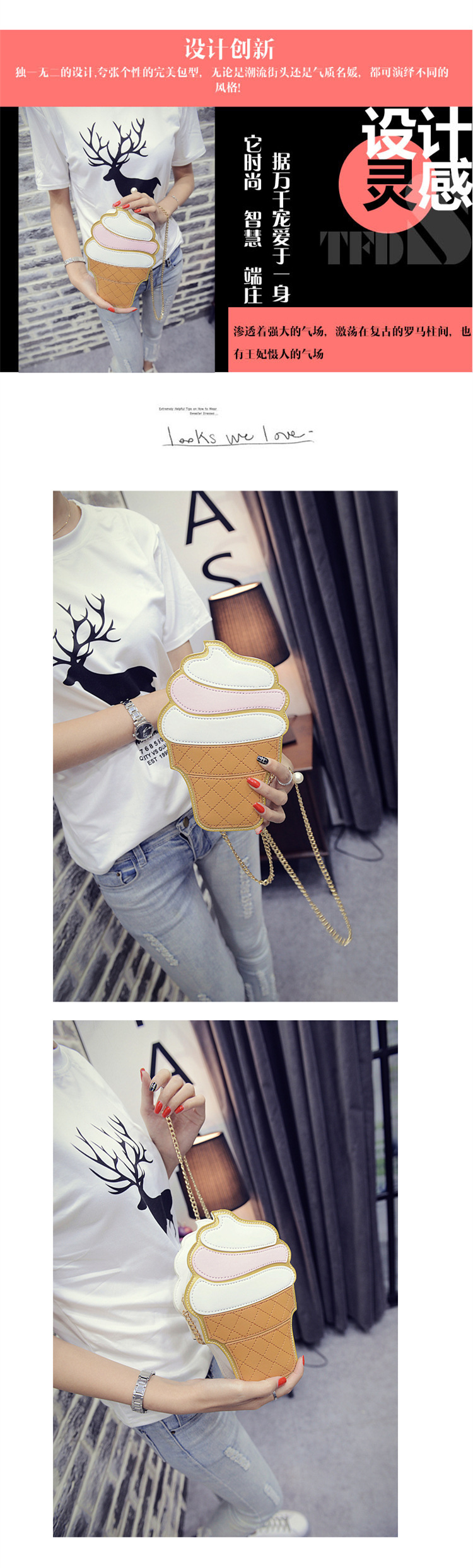 새로운 스타일 개인화 된 크리에이티브 백 여성용 체인 숄더 백 휴대 전화 가방 귀여운 아이스크림 함부르크 핸드백 가방 도매