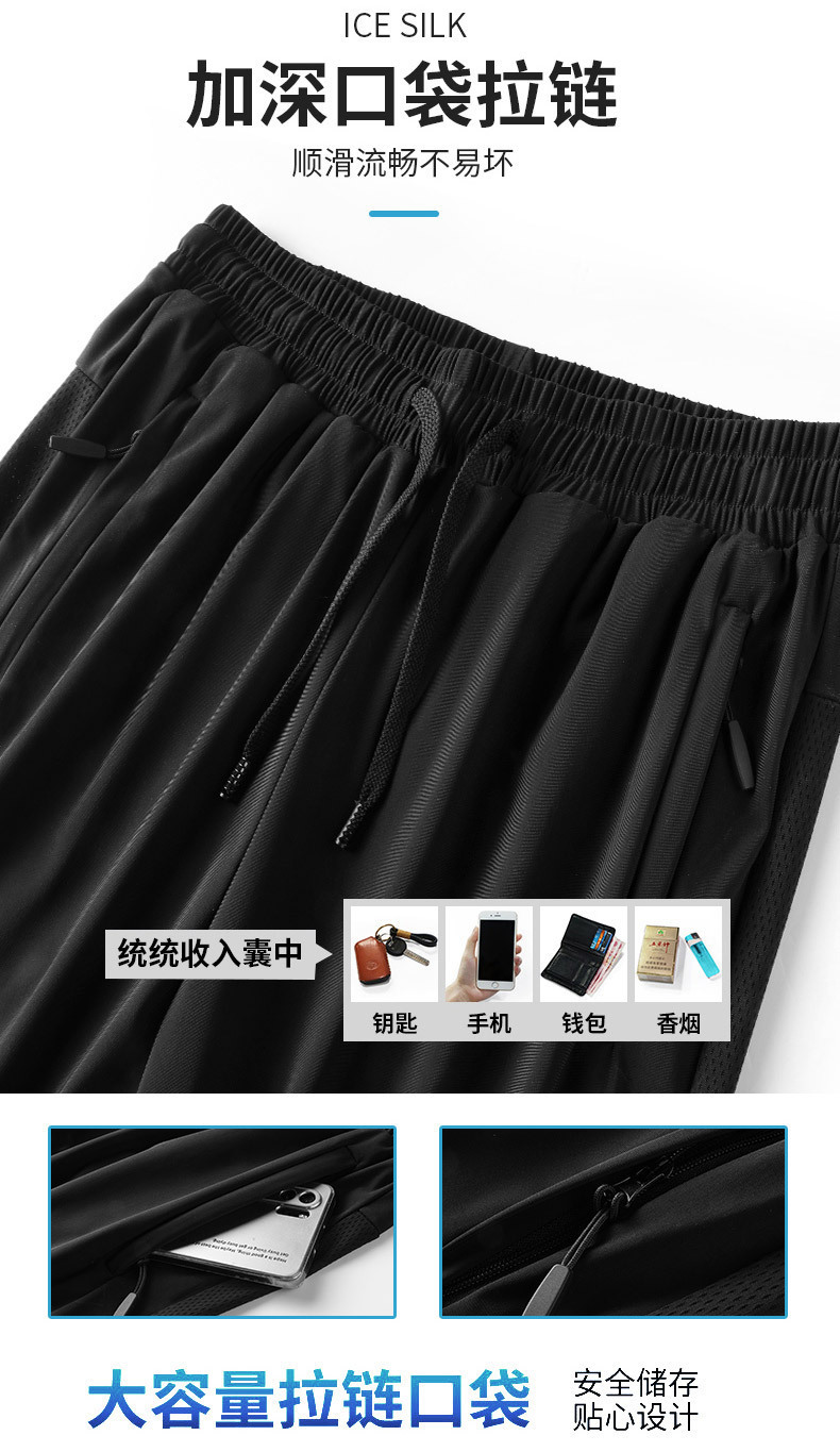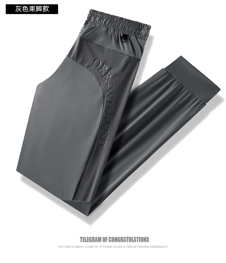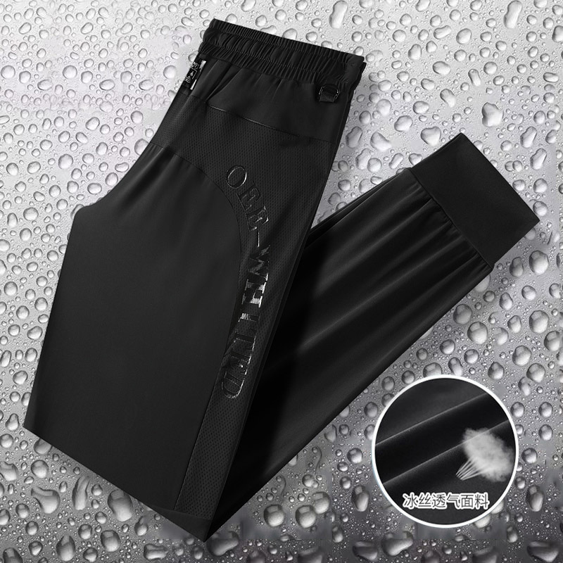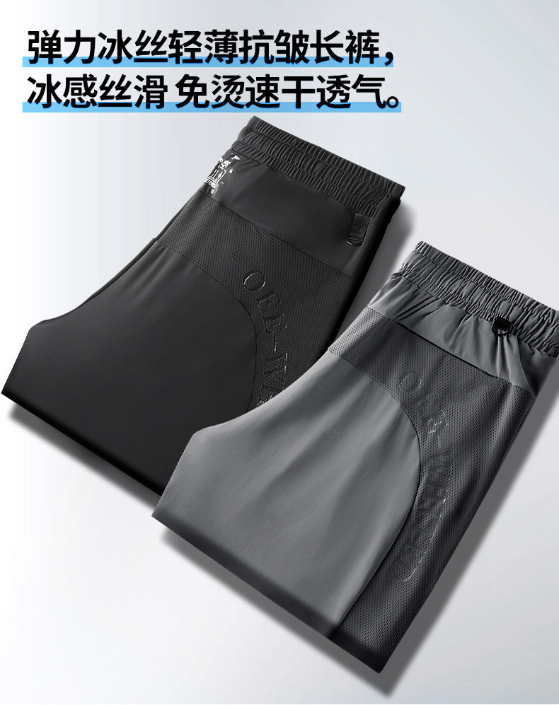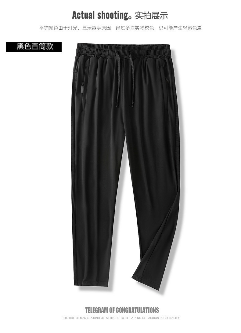 남성용 아이스 실크 스트레치 캐주얼 바지 봄과 여름 얇은 스트레이트 롱 팬츠 다리 속건 스포츠 느슨한 에어컨 바지