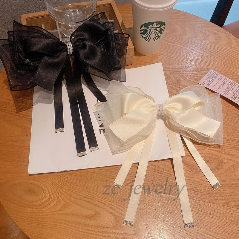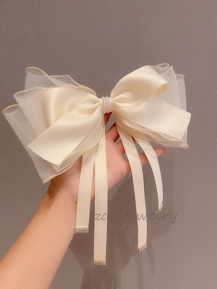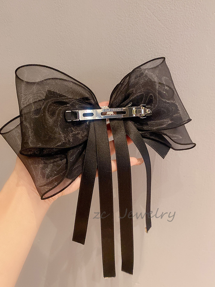 한국 새로운 멀티 레이어 대형 활 머리핀 고급 긴 리본 큰 공주 탑 클립 여성을위한 우아한 머리핀