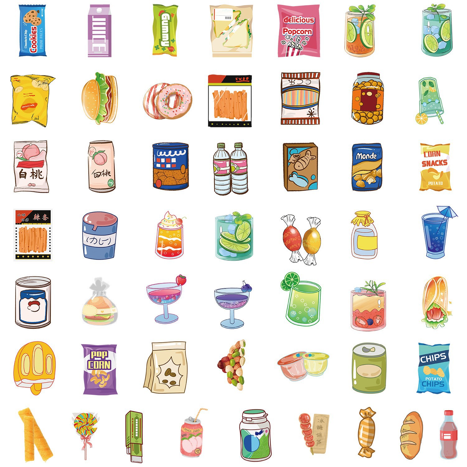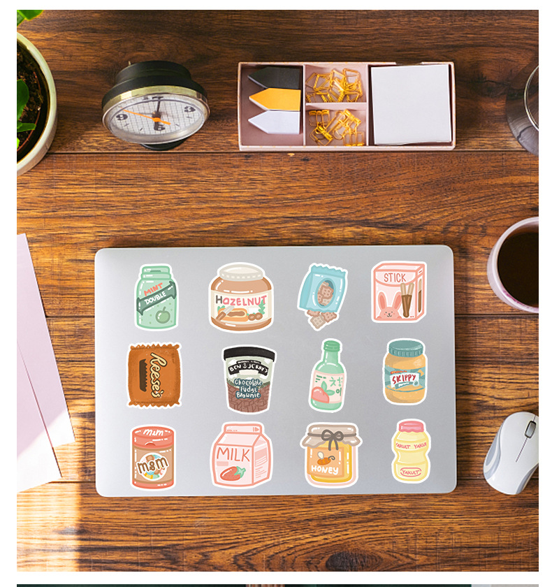 50개의 예쁜 간식 그래피티 스티커 자동차 휴대폰 물컵 컴퓨터 장식 스티커 방수 창의적 문구 도매