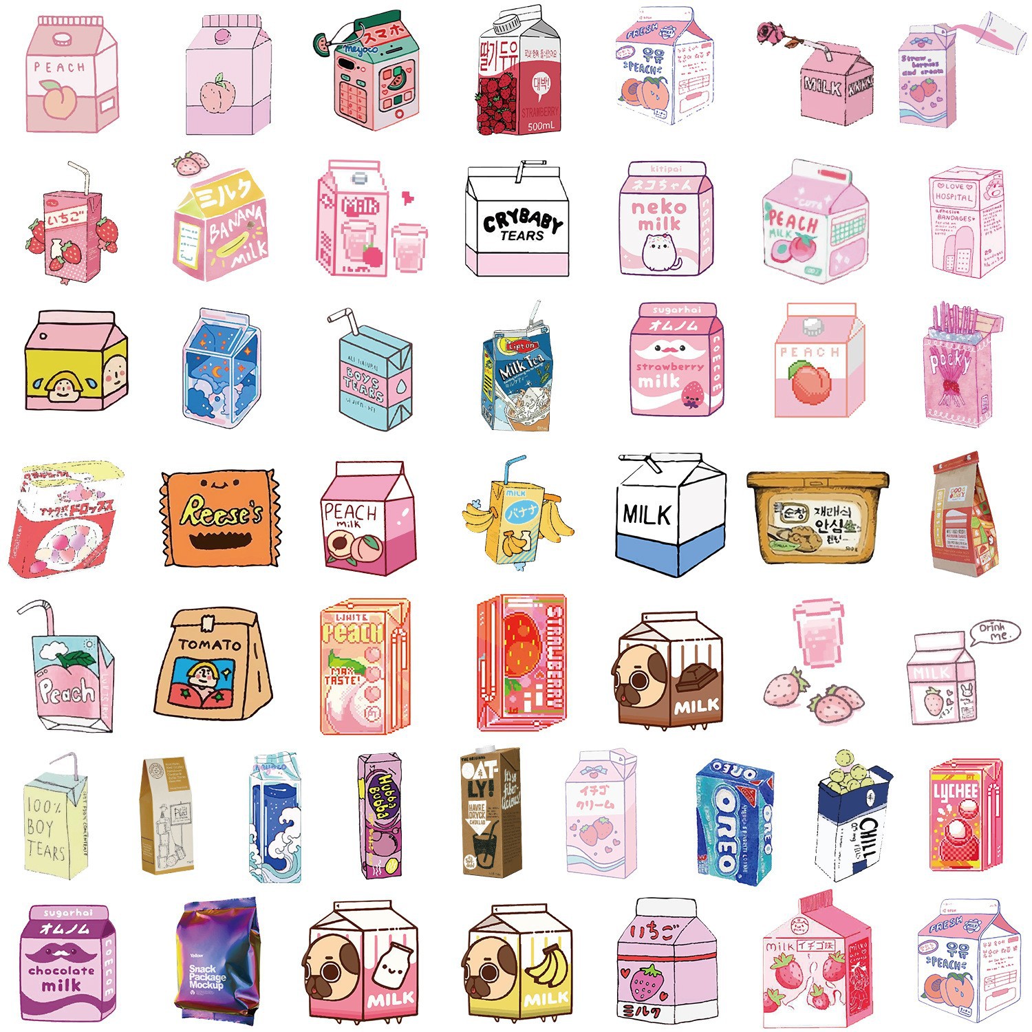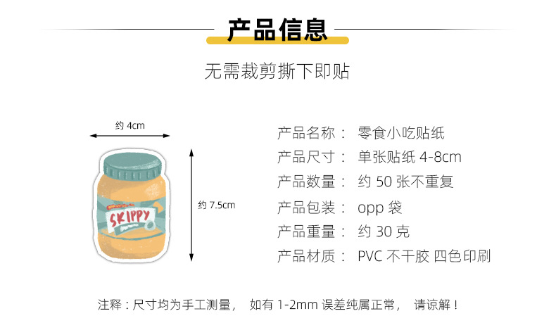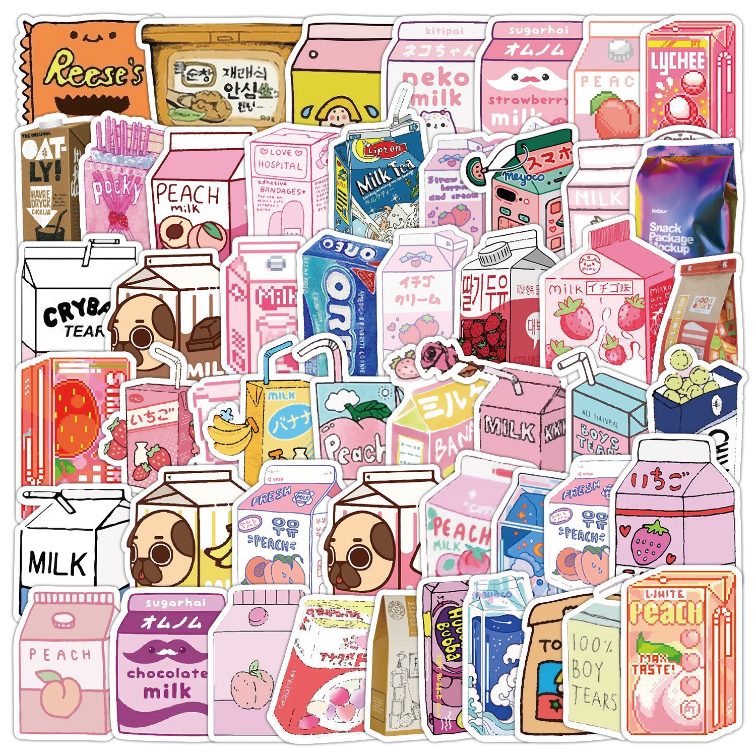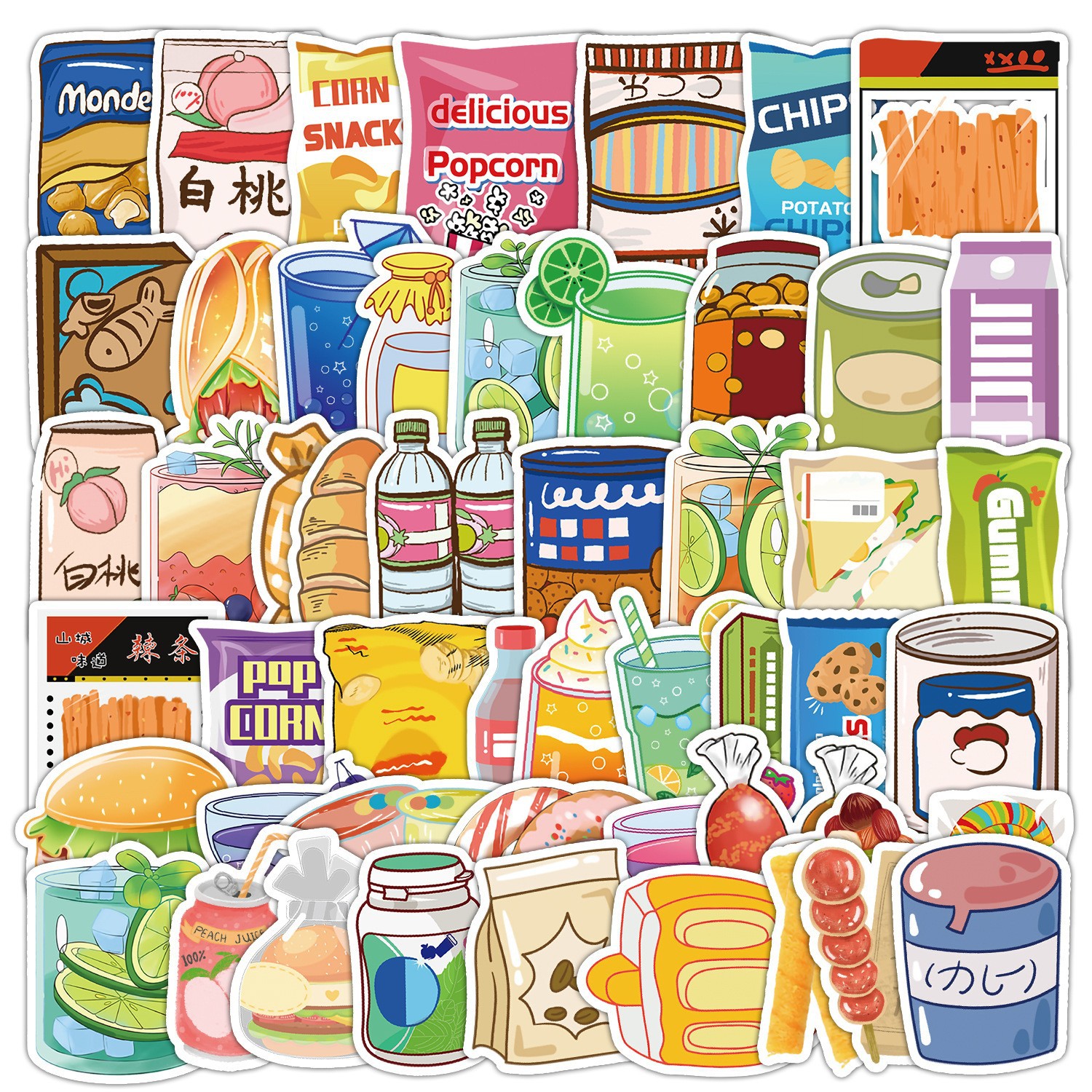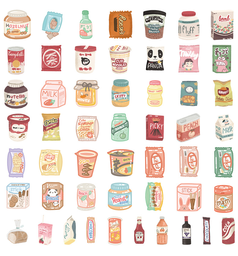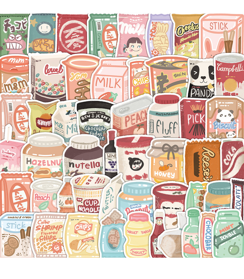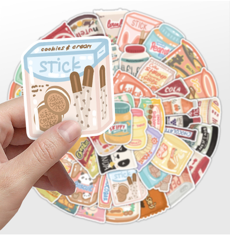 50개의 예쁜 간식 그래피티 스티커 자동차 휴대폰 물컵 컴퓨터 장식 스티커 방수 창의적 문구 도매스토어 가기