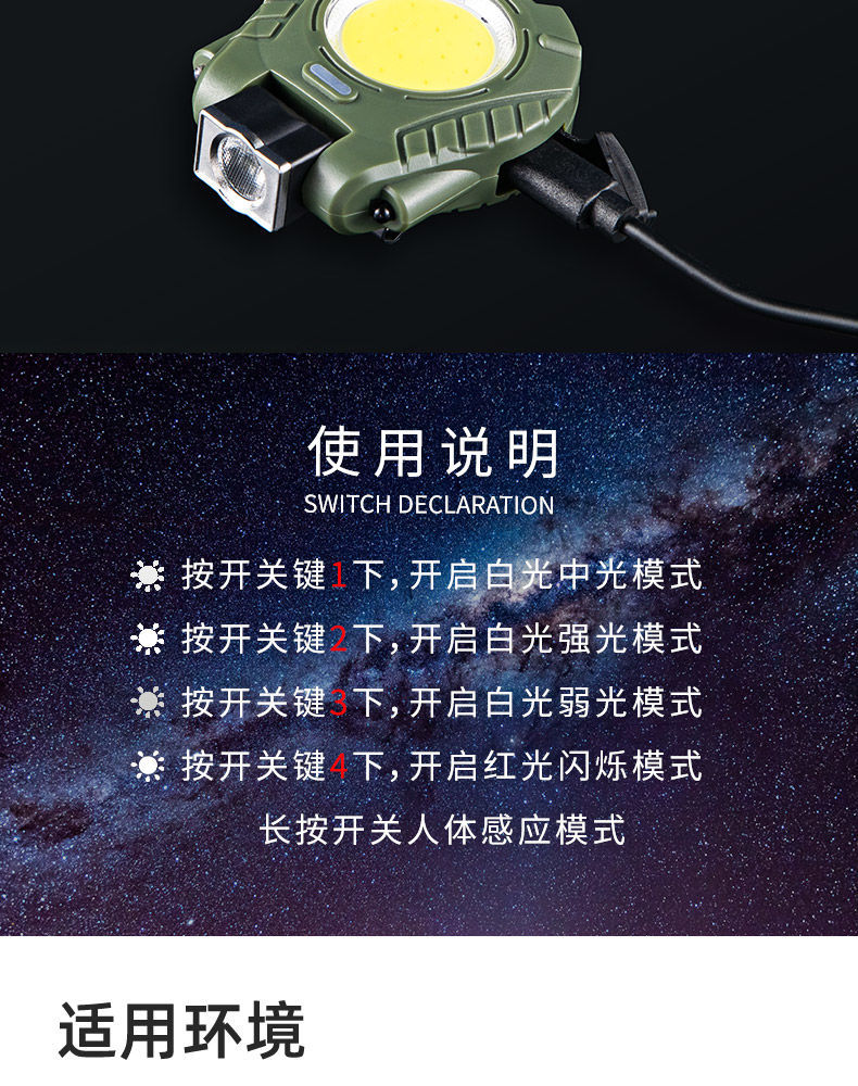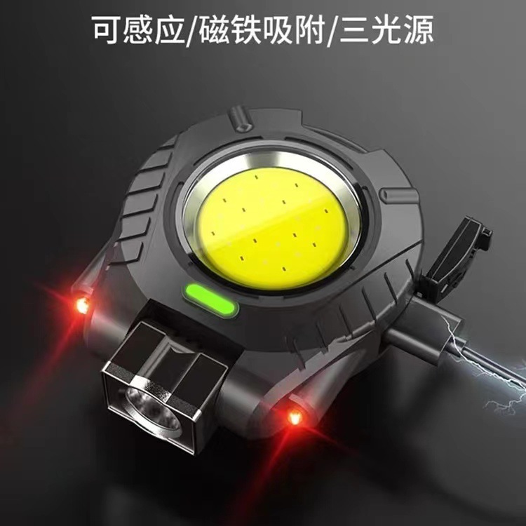 헤드라이트 유도 캡 클립 라이트 COB + LED 다기능 미니 손전등 휴대용 작업등 강력 충전 슈퍼 브라이트
