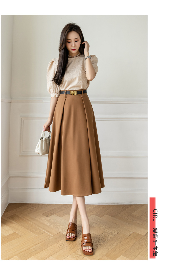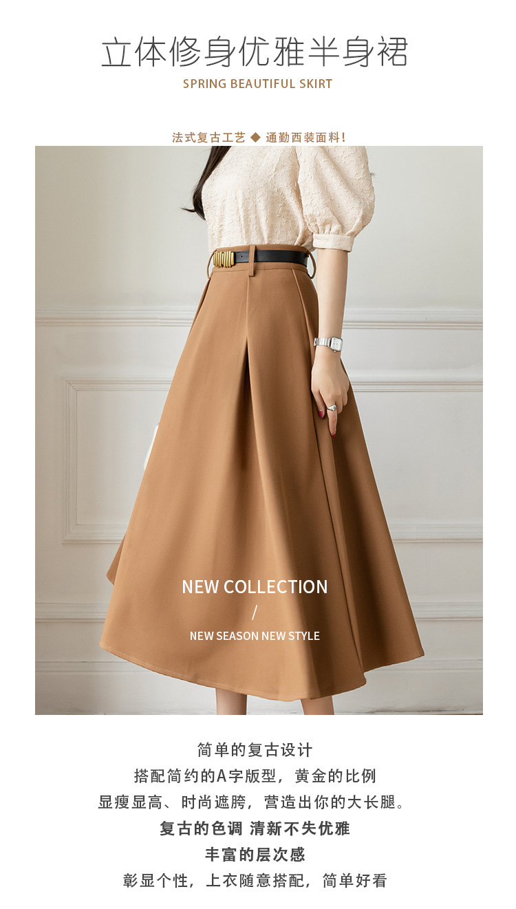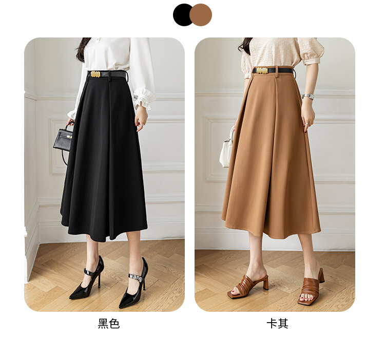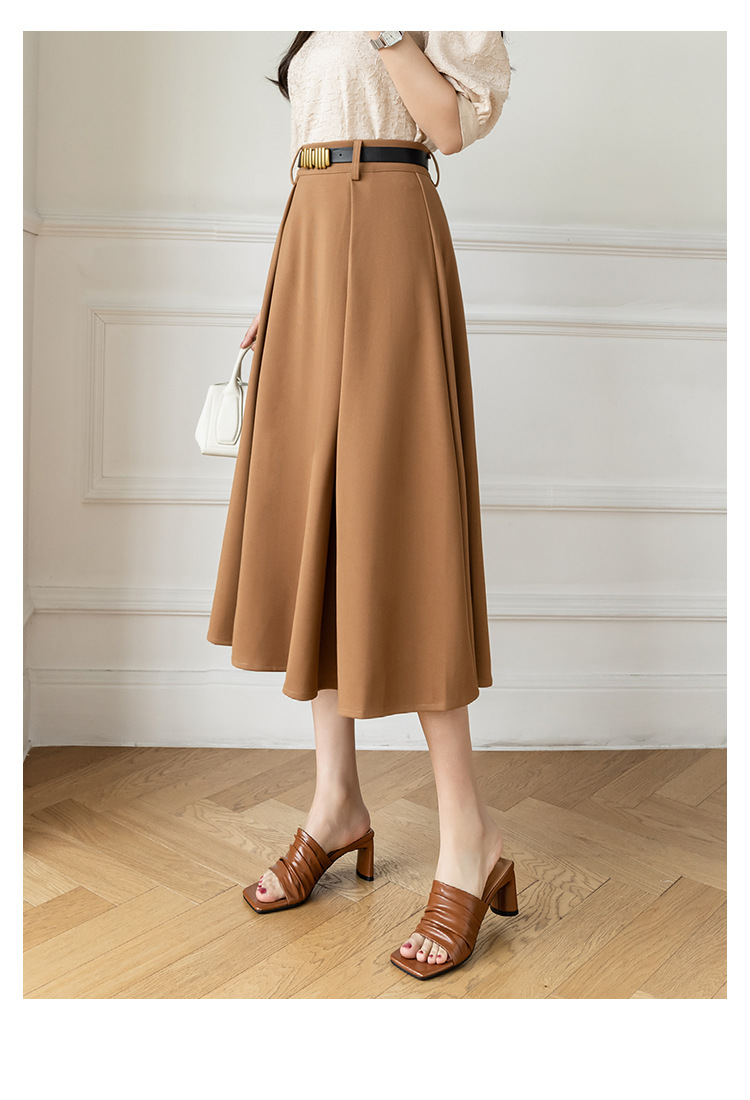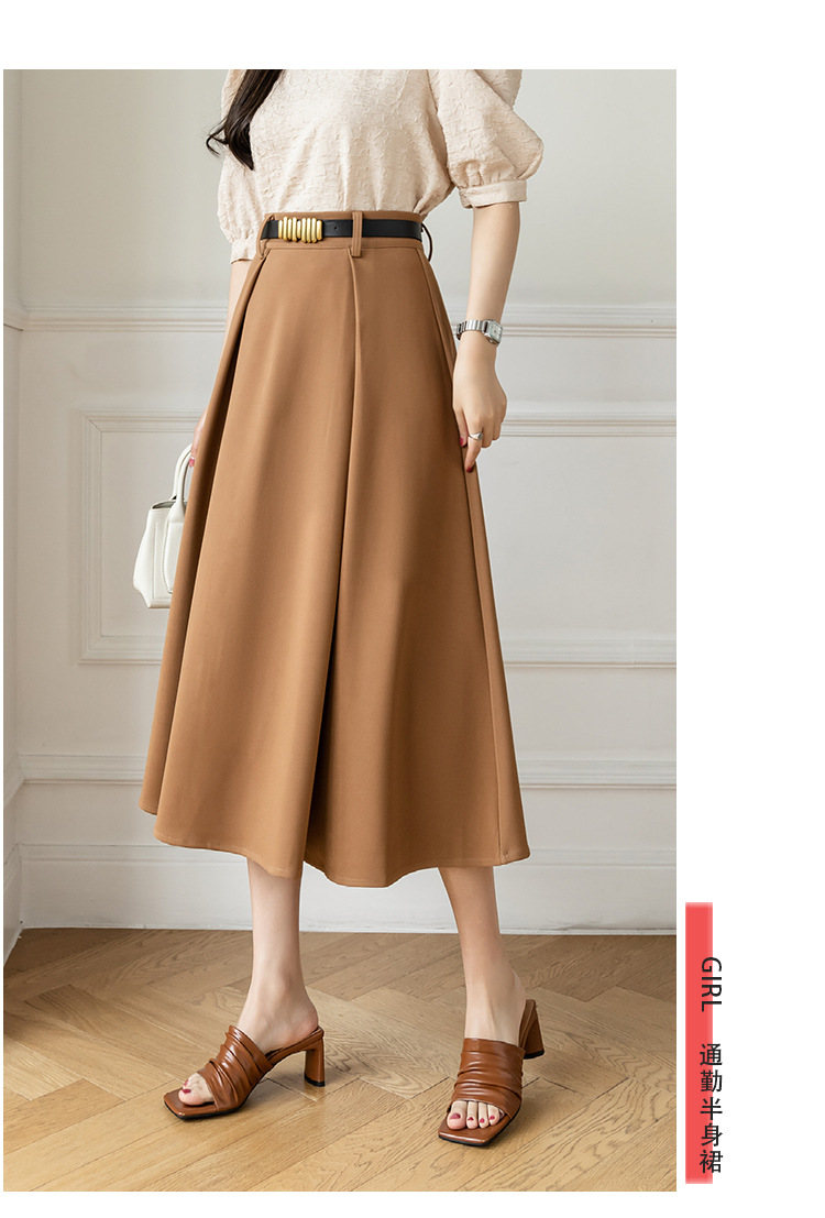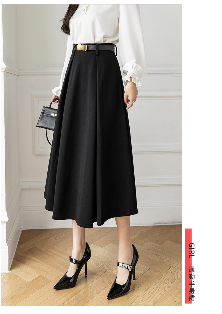 2025 가을 겨울 스커트 실사, OL 출퇴근용 A라인 스커트, 하이웨이스트 힙커버 중간 길이 우아한 오피스룩 스커트, 벨트 포함스토어 가기