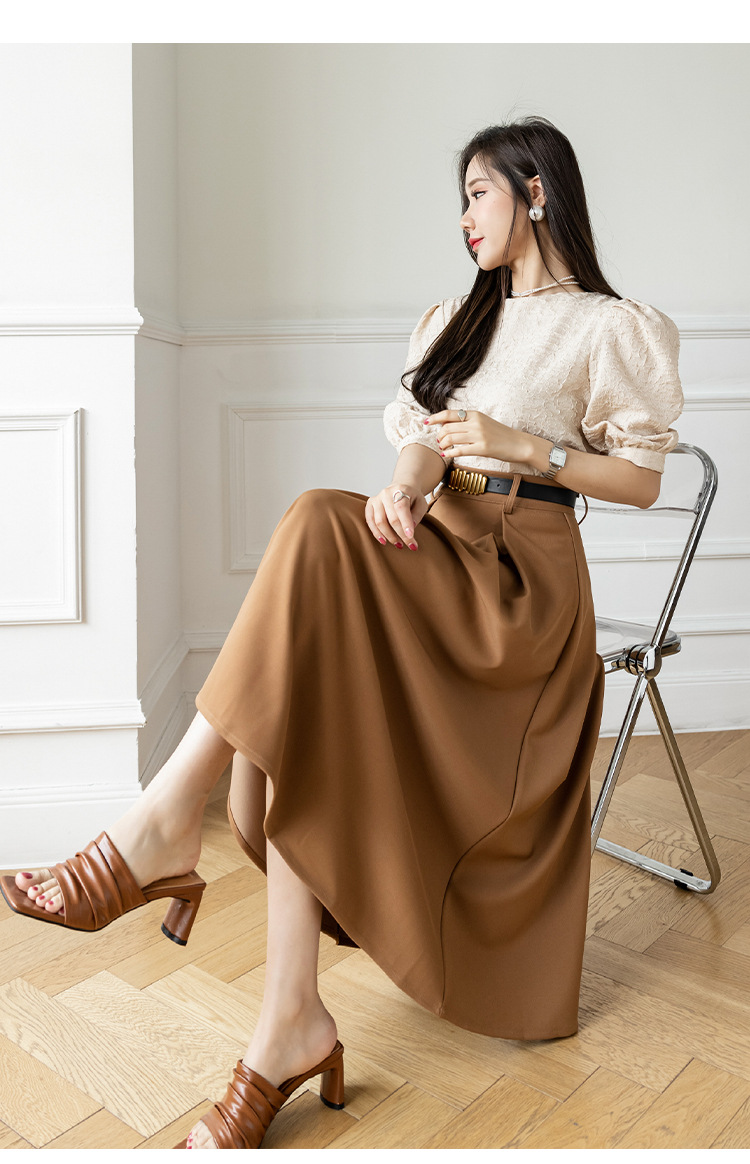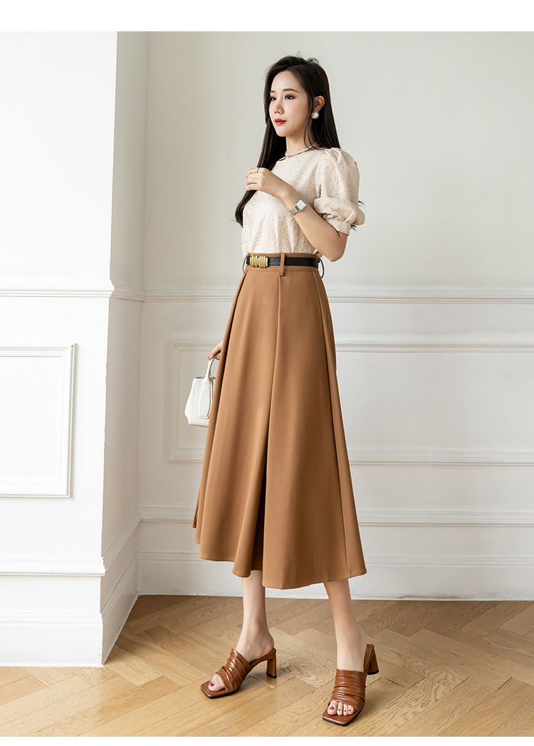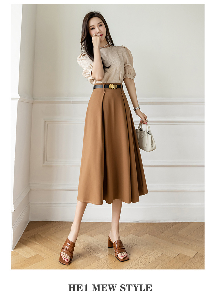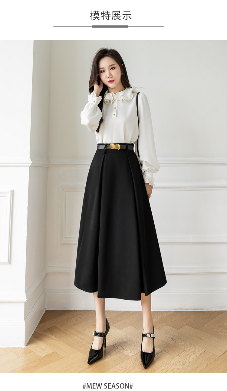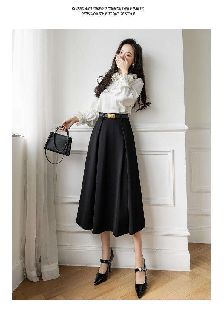 2025 가을 겨울 스커트 실사, OL 출퇴근용 A라인 스커트, 하이웨이스트 힙커버 중간 길이 우아한 오피스룩 스커트, 벨트 포함스토어 가기