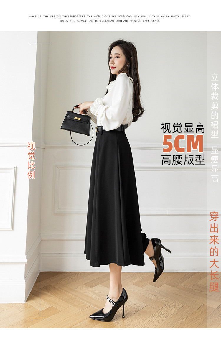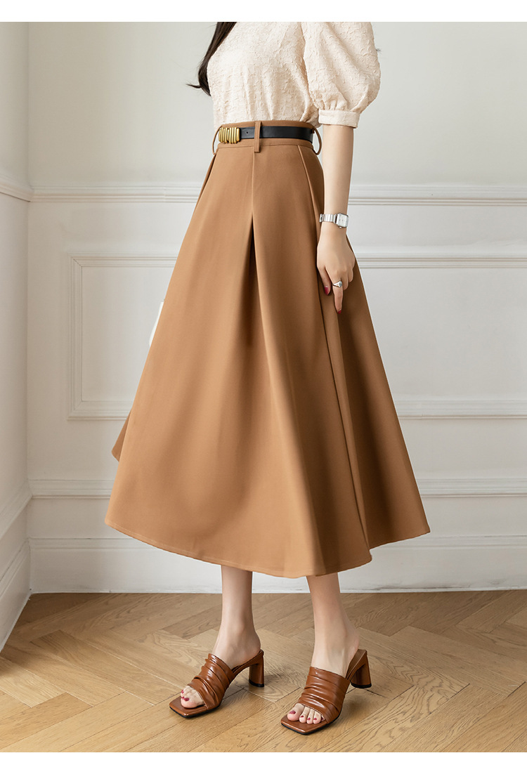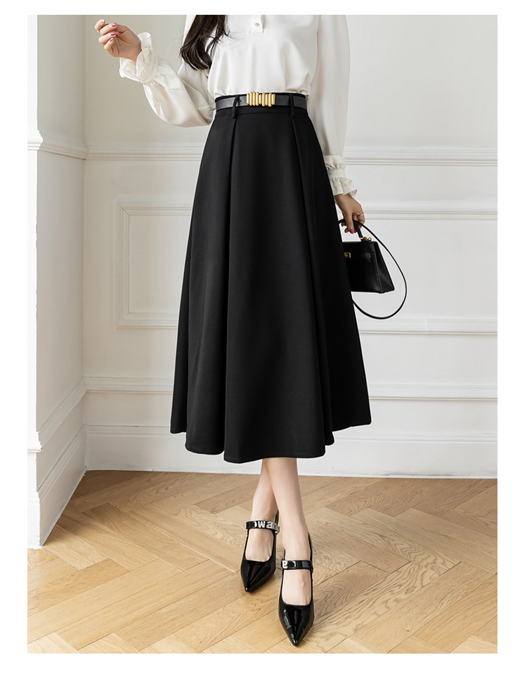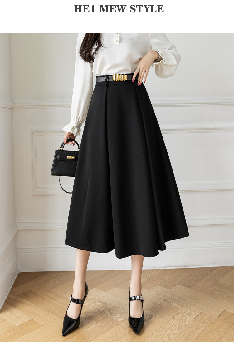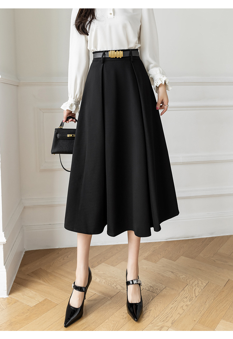 2025 가을 겨울 스커트 실사, OL 출퇴근용 A라인 스커트, 하이웨이스트 힙커버 중간 길이 우아한 오피스룩 스커트, 벨트 포함
