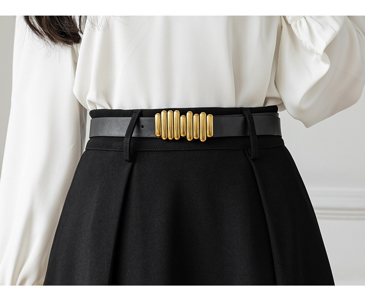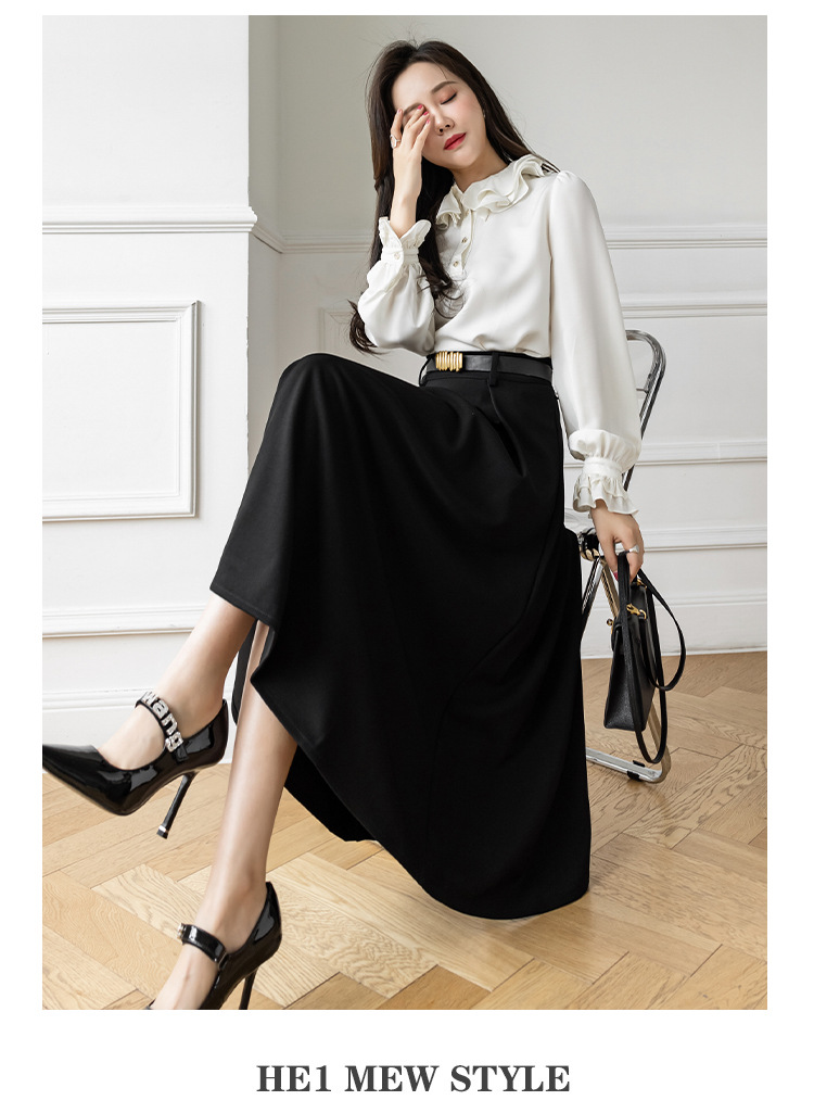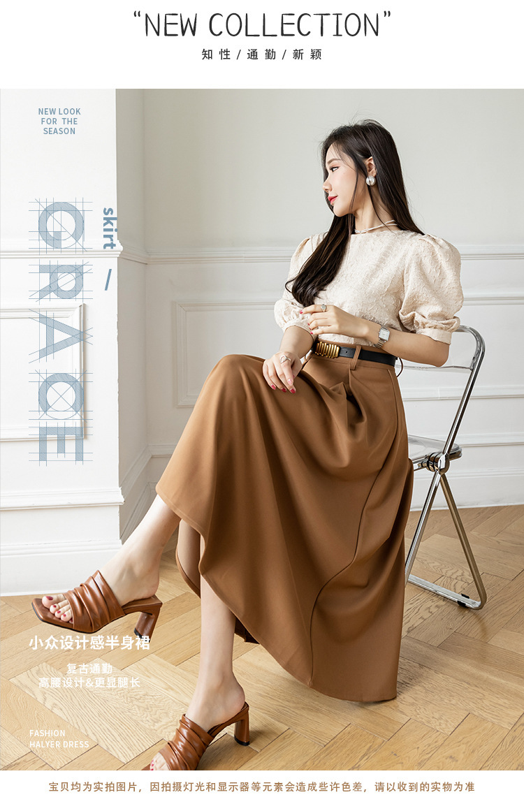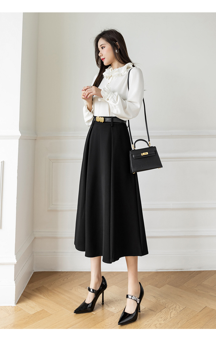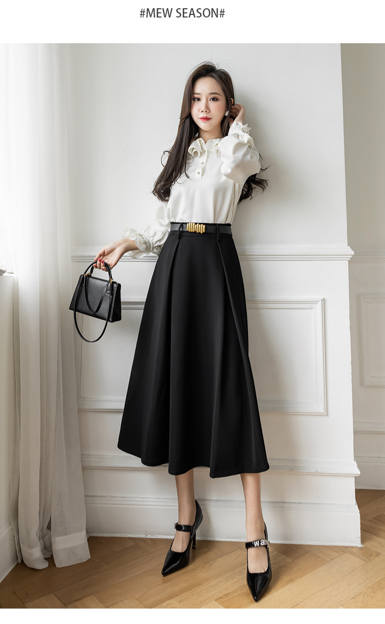 2025 가을 겨울 스커트 실사, OL 출퇴근용 A라인 스커트, 하이웨이스트 힙커버 중간 길이 우아한 오피스룩 스커트, 벨트 포함