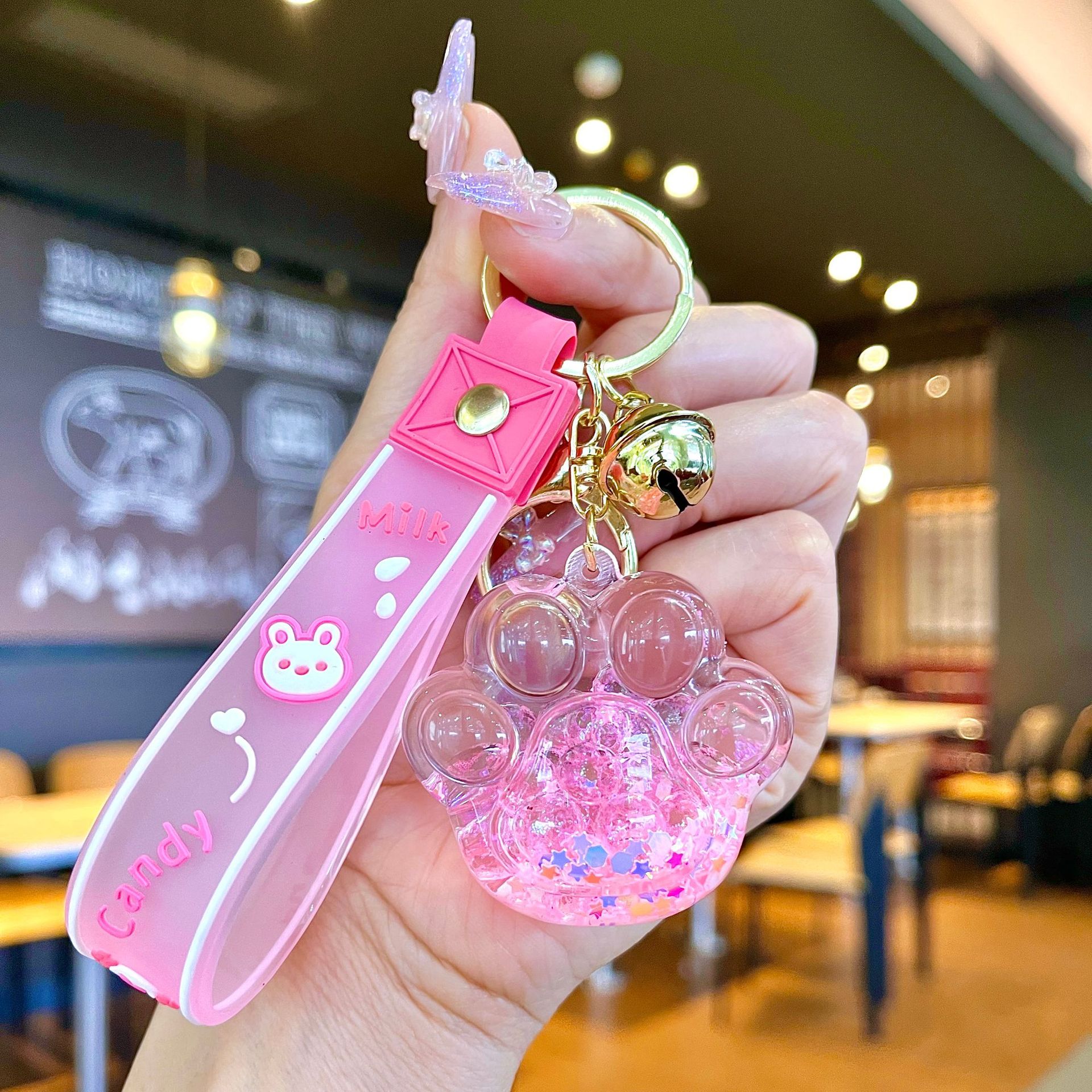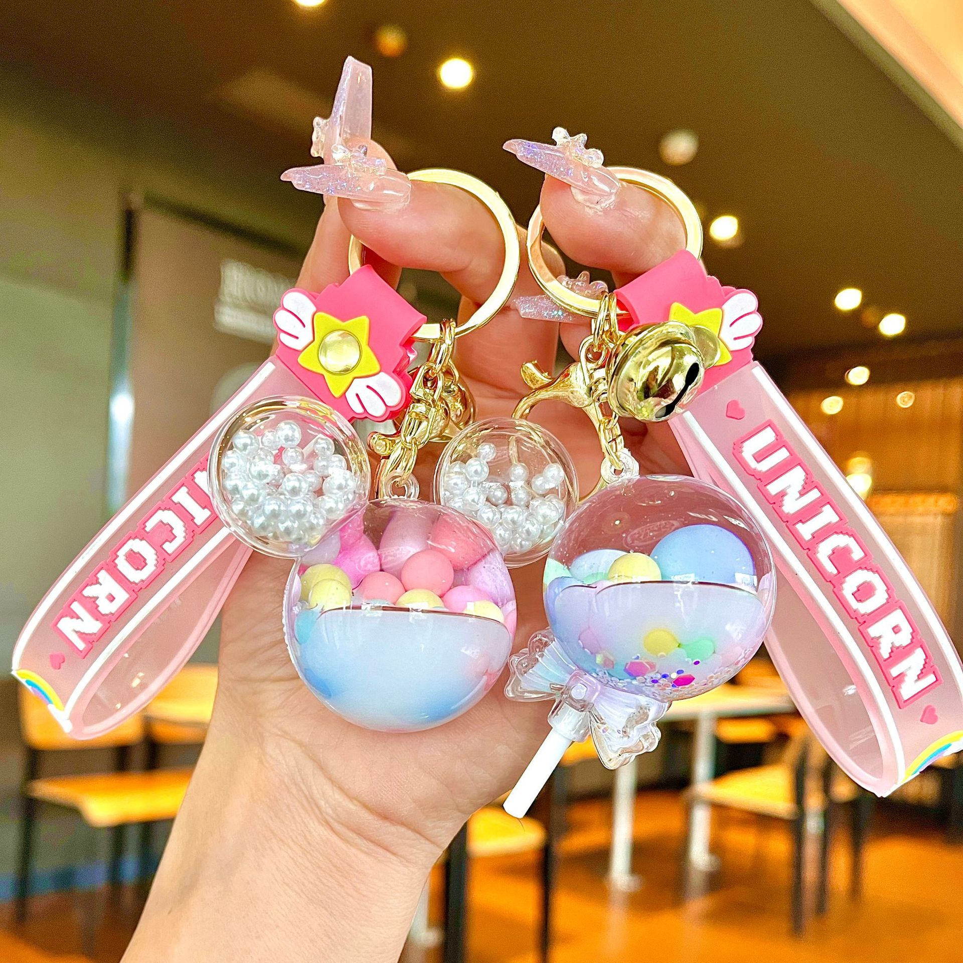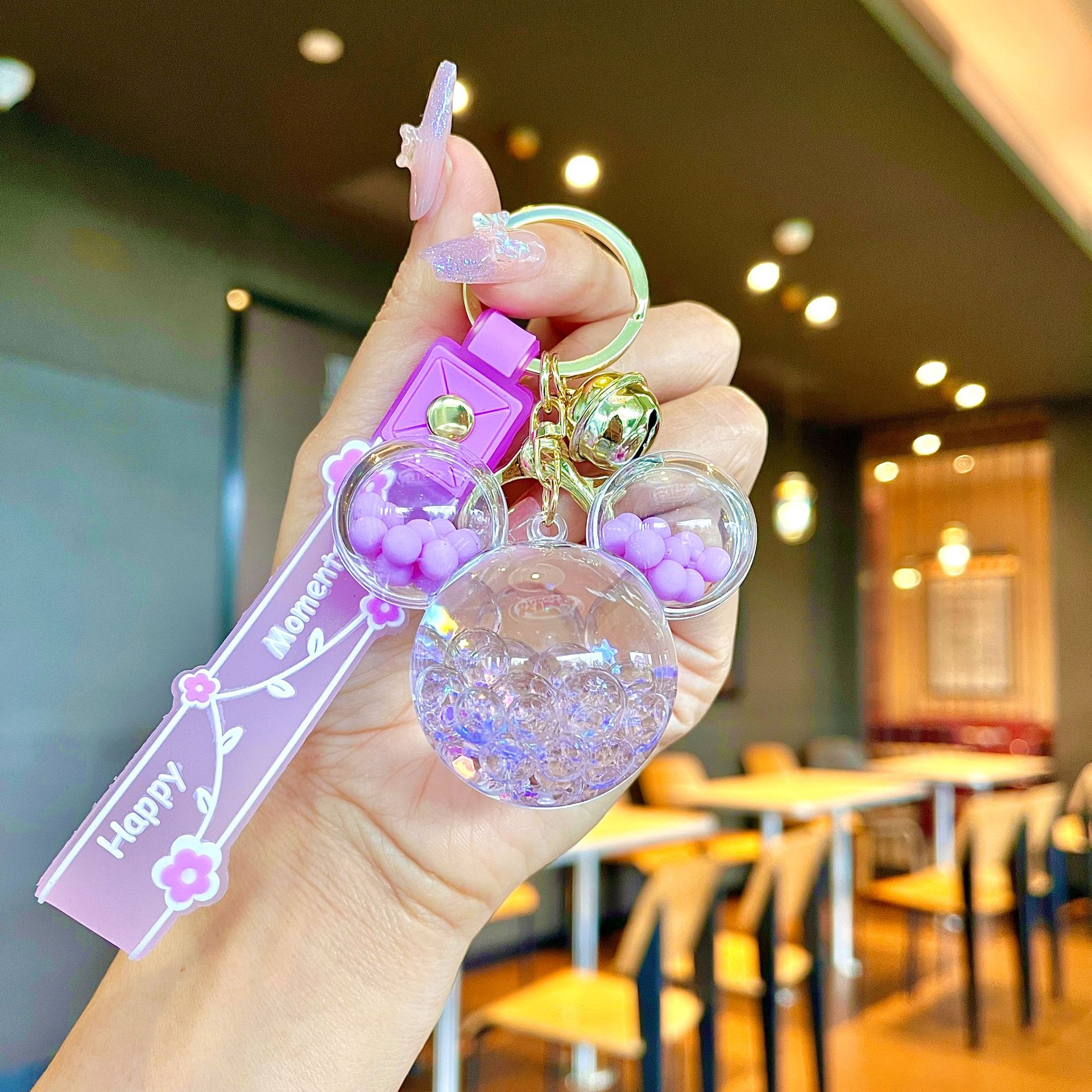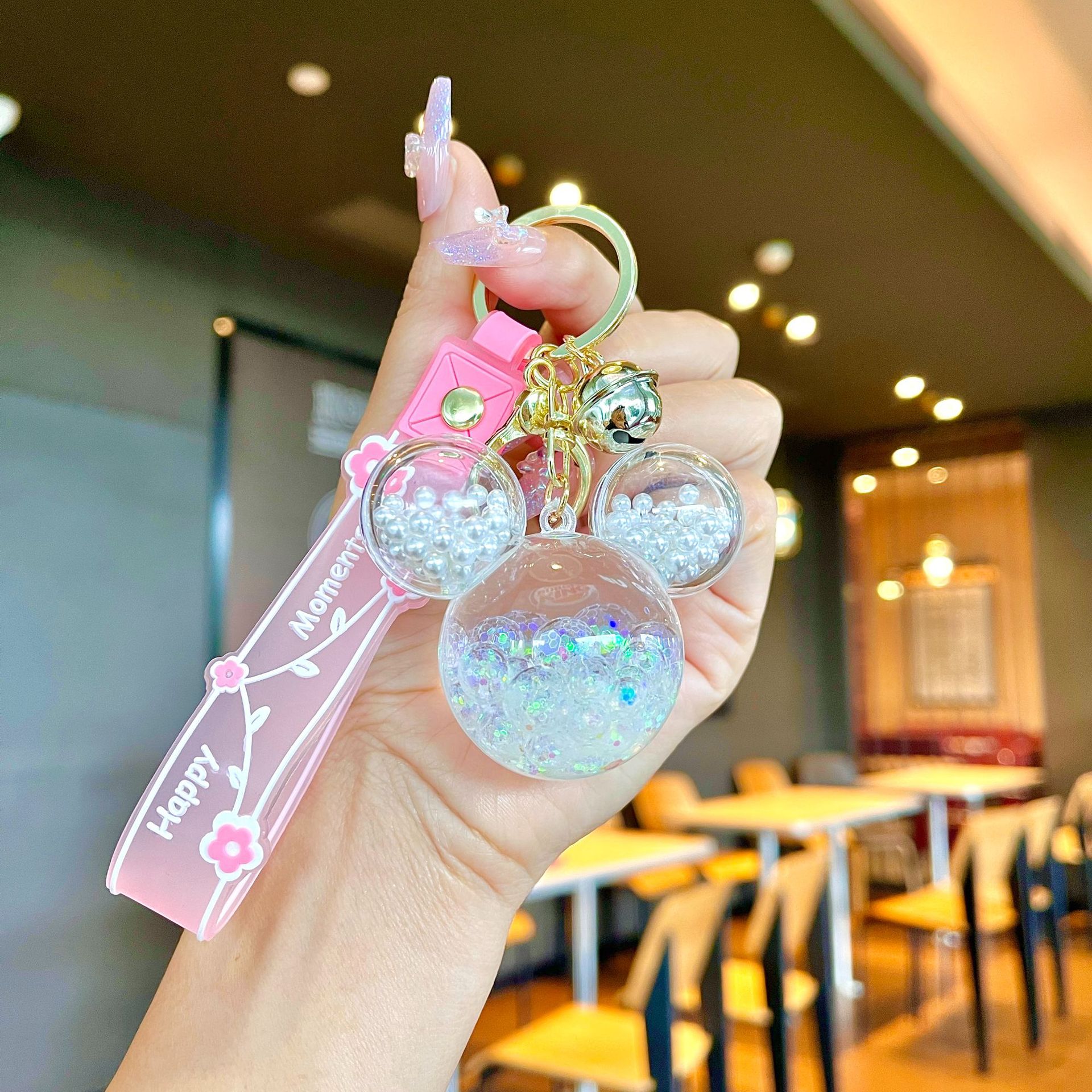 퀵 샌드 병 키 체인에 크리에이 티브 아크릴 오일 빛나는 우유 흰색 미키 헤드 롤리팝 아크릴 펜던트 도매스토어 가기