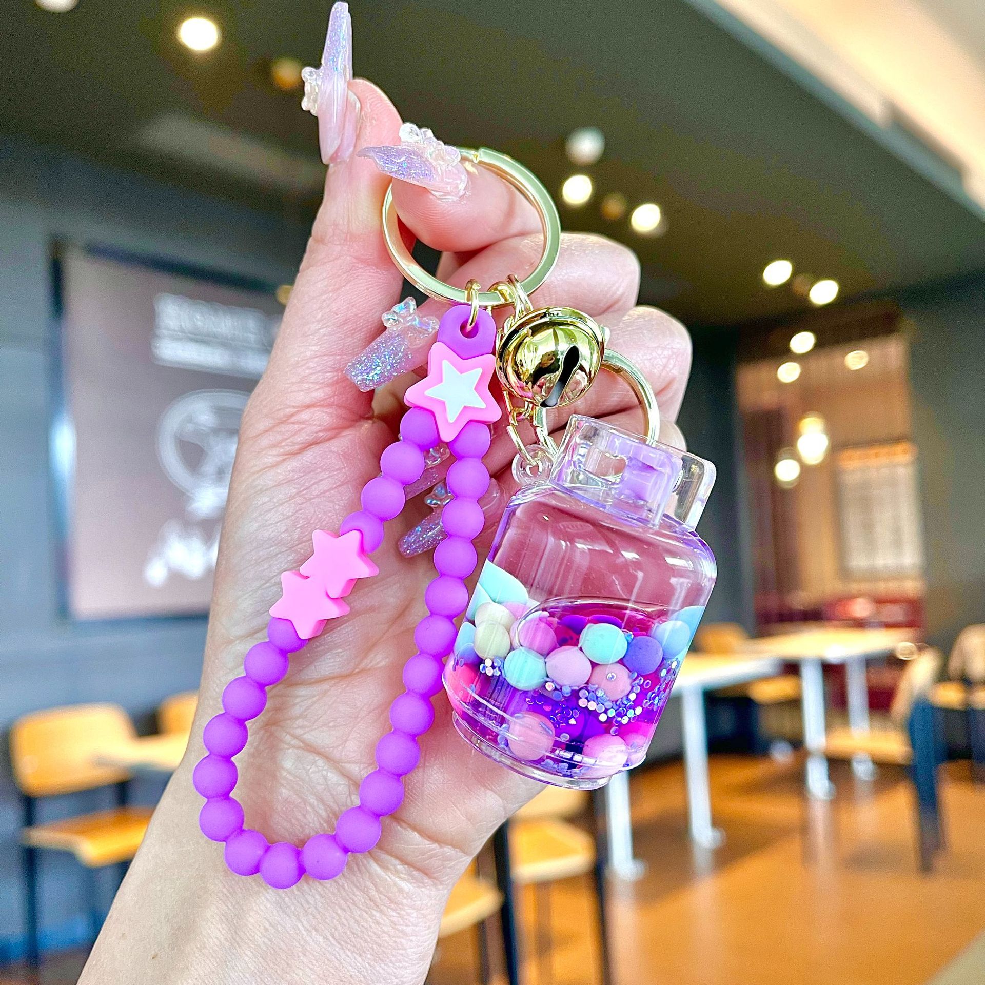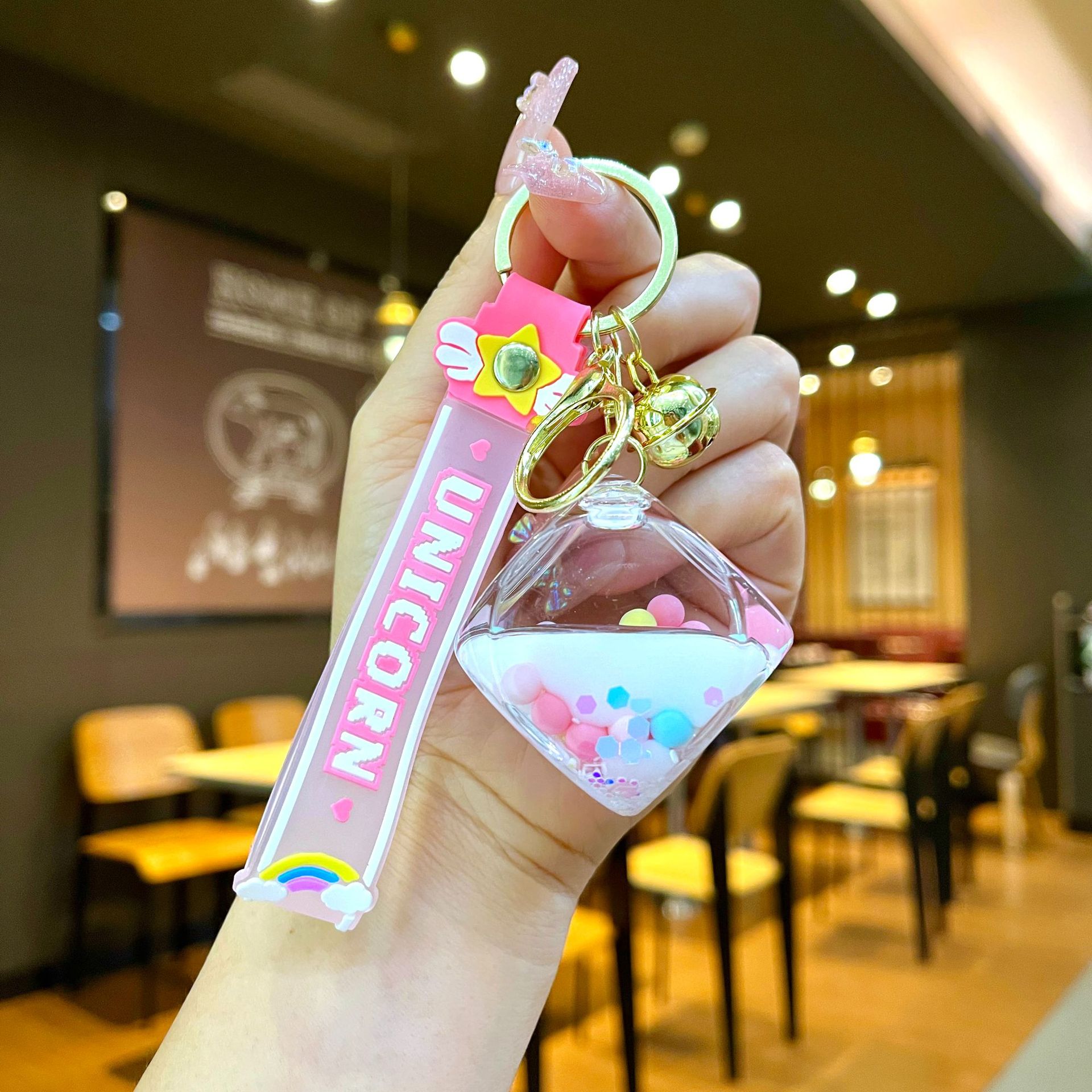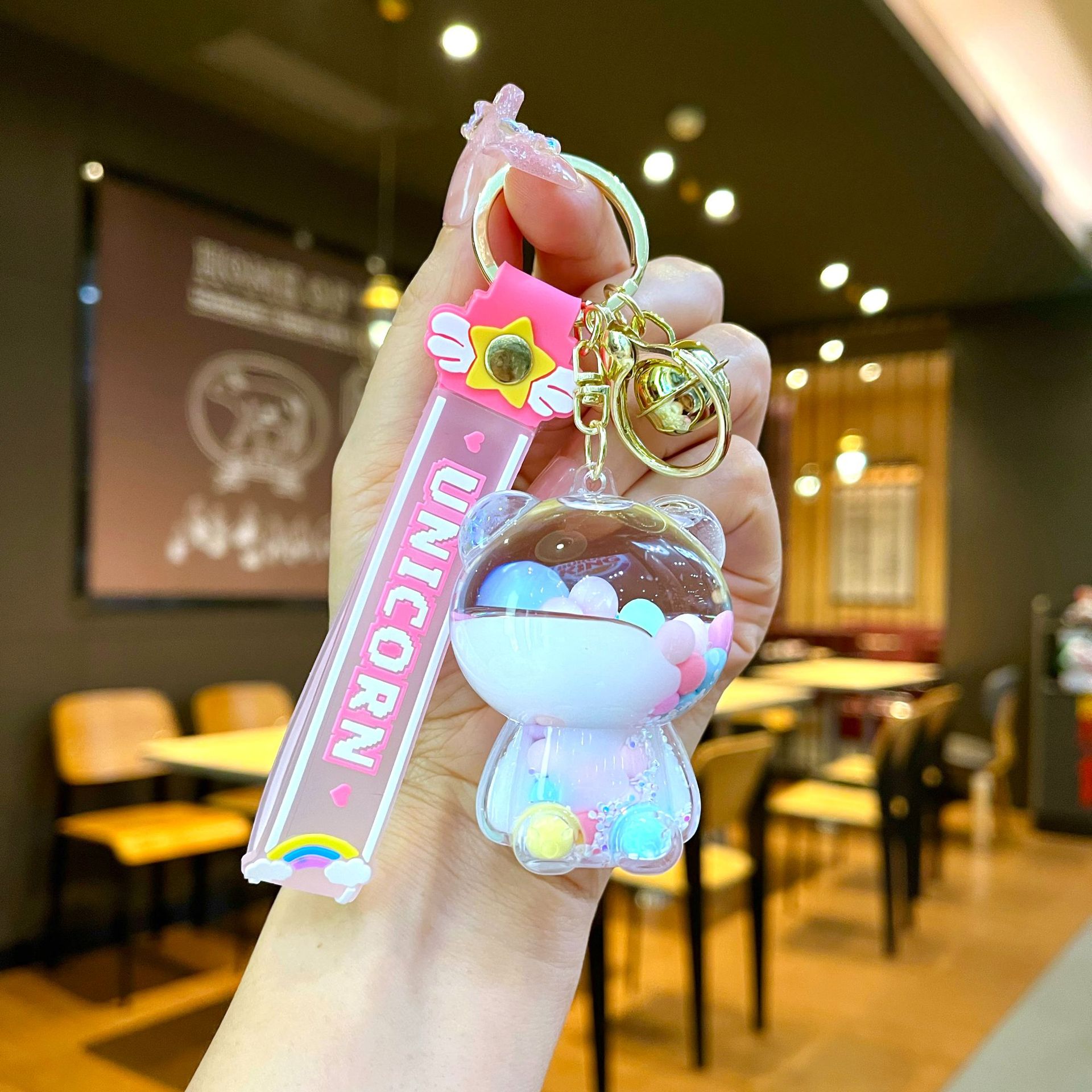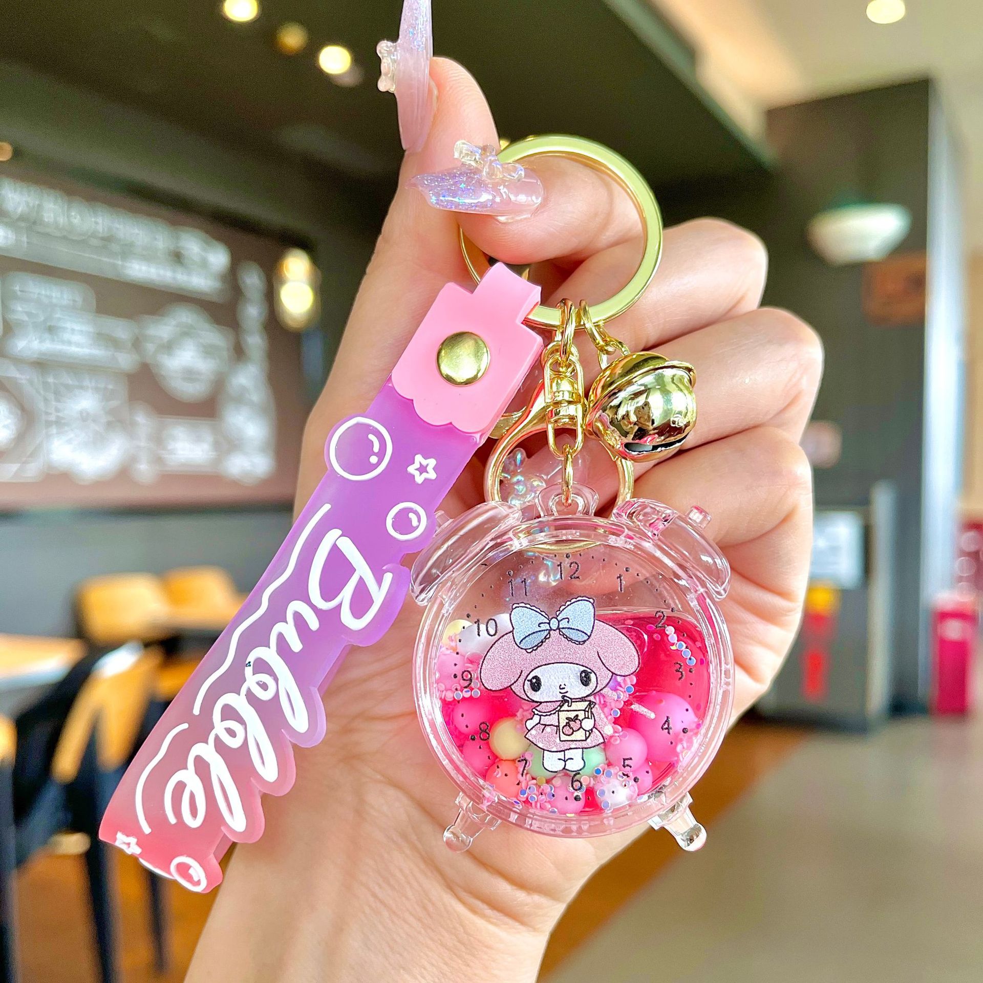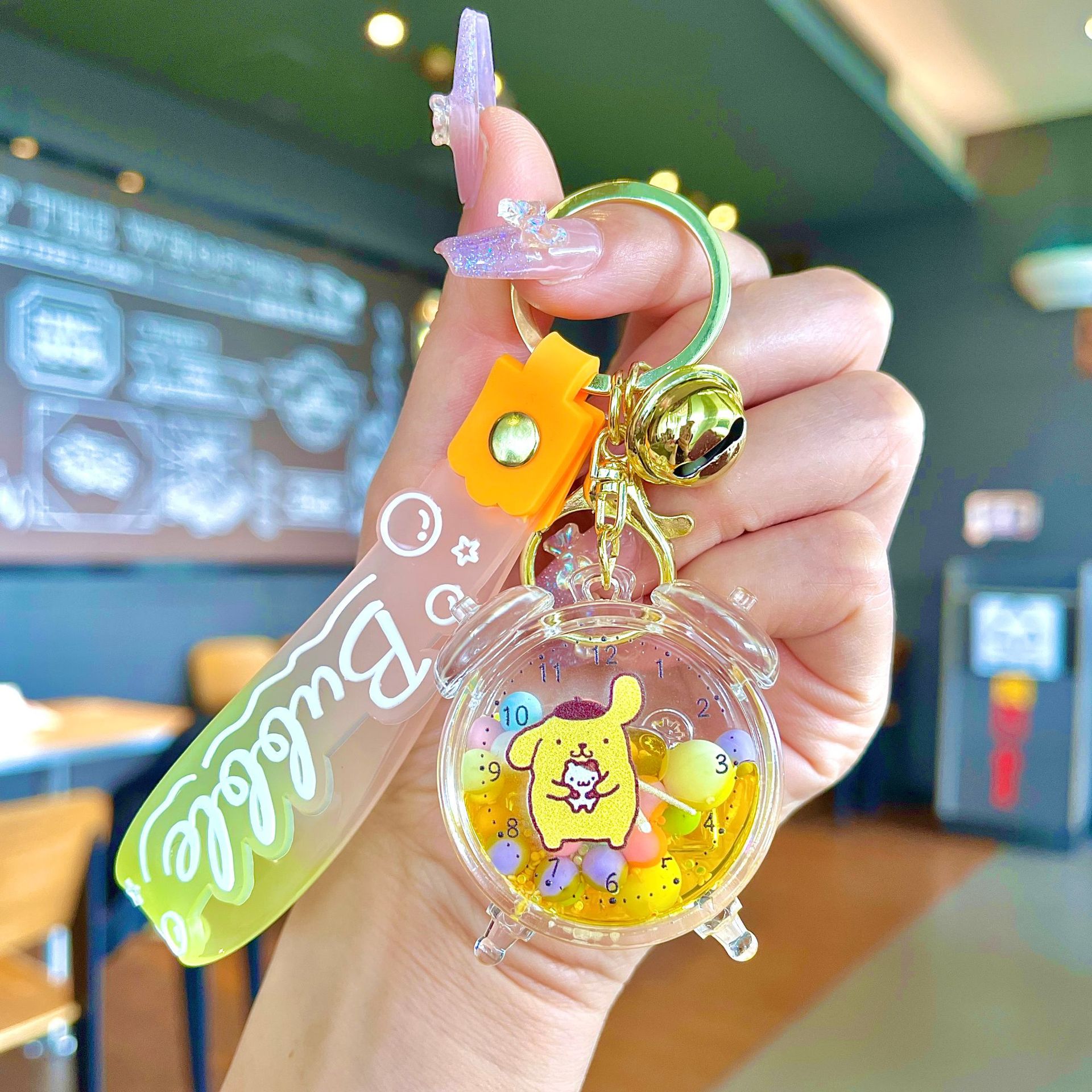 퀵 샌드 병 키 체인에 크리에이 티브 아크릴 오일 빛나는 우유 흰색 미키 헤드 롤리팝 아크릴 펜던트 도매스토어 가기