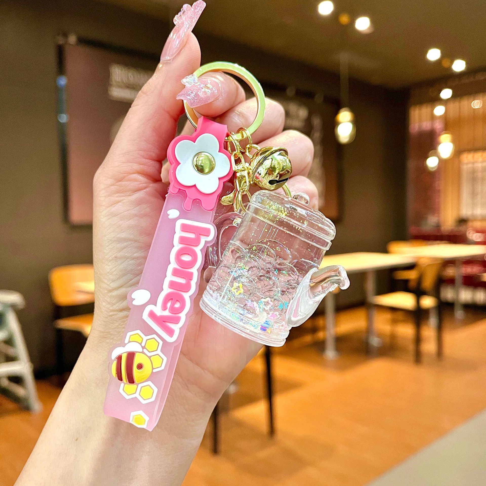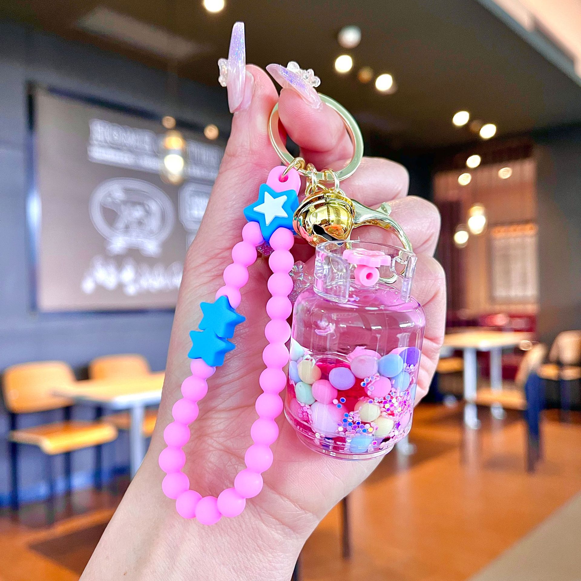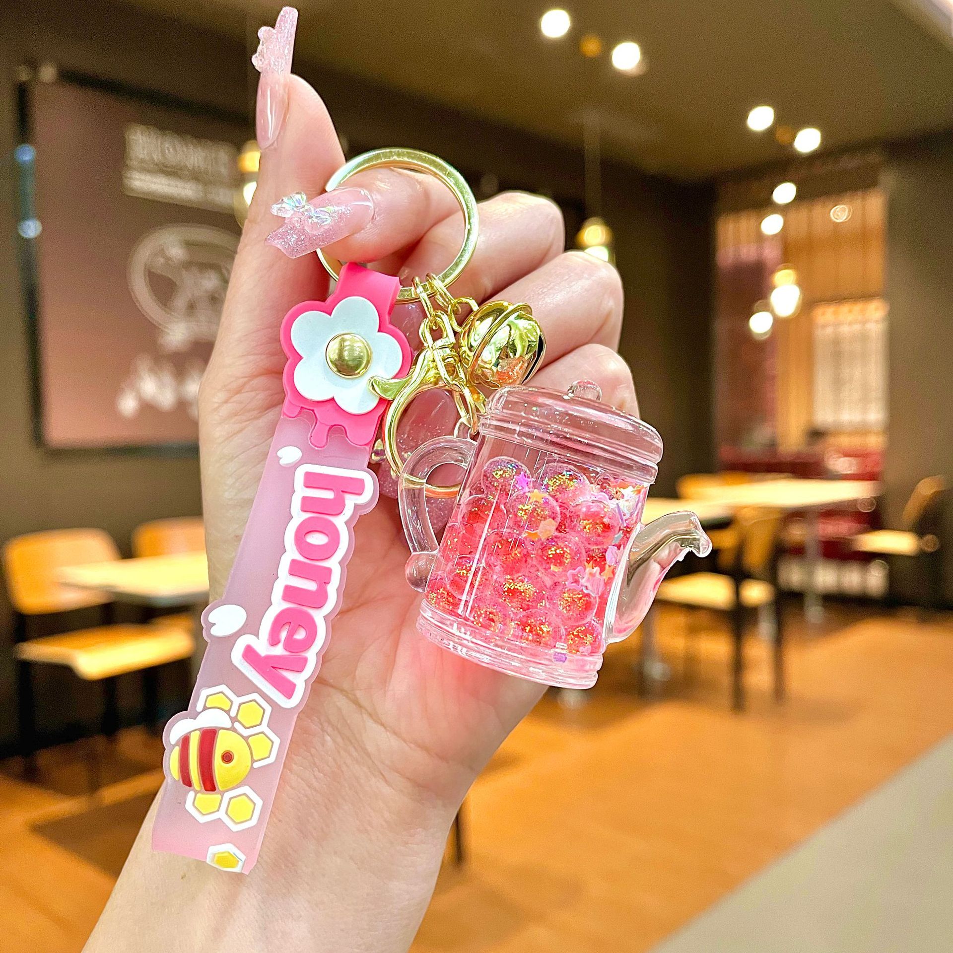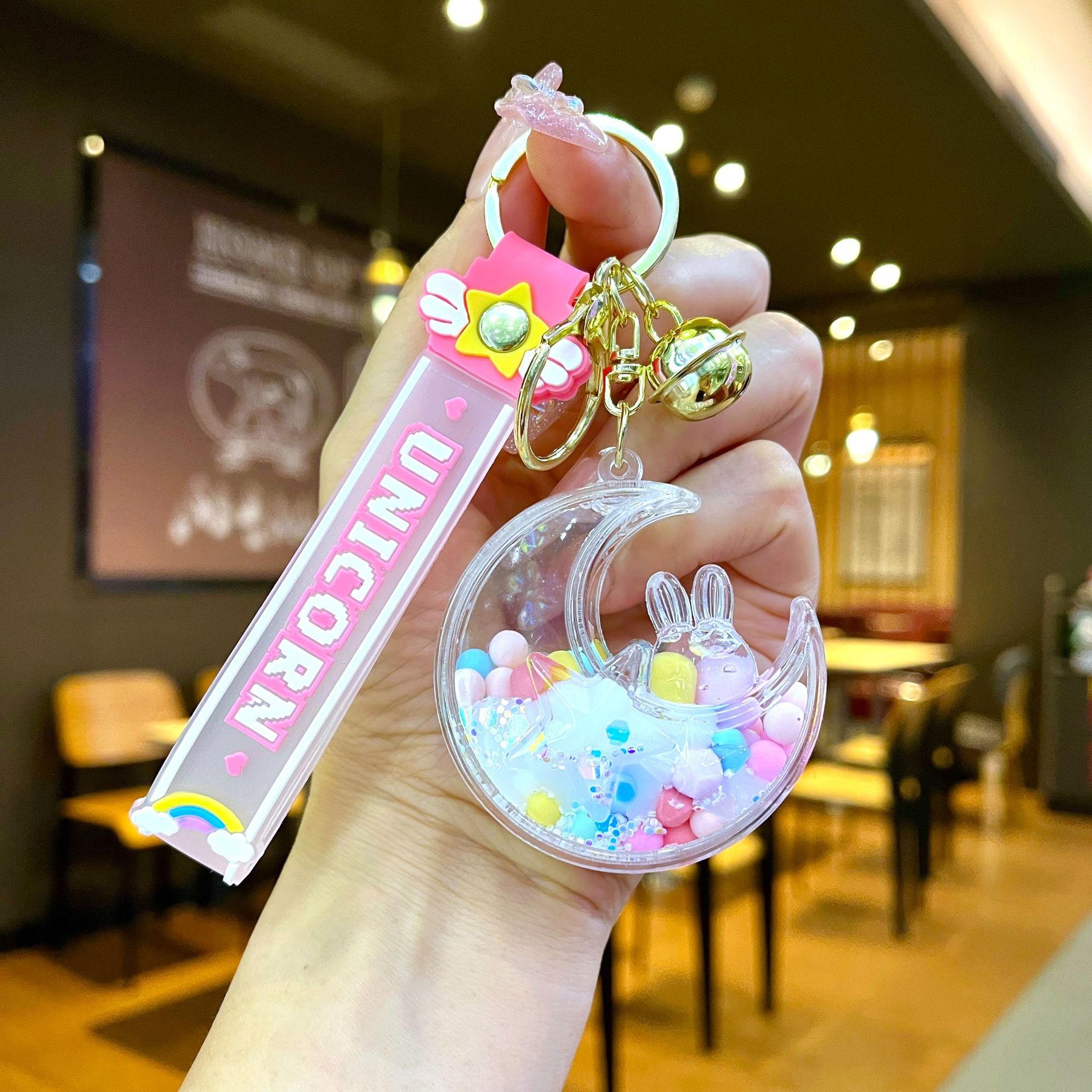 퀵 샌드 병 키 체인에 크리에이 티브 아크릴 오일 빛나는 우유 흰색 미키 헤드 롤리팝 아크릴 펜던트 도매스토어 가기