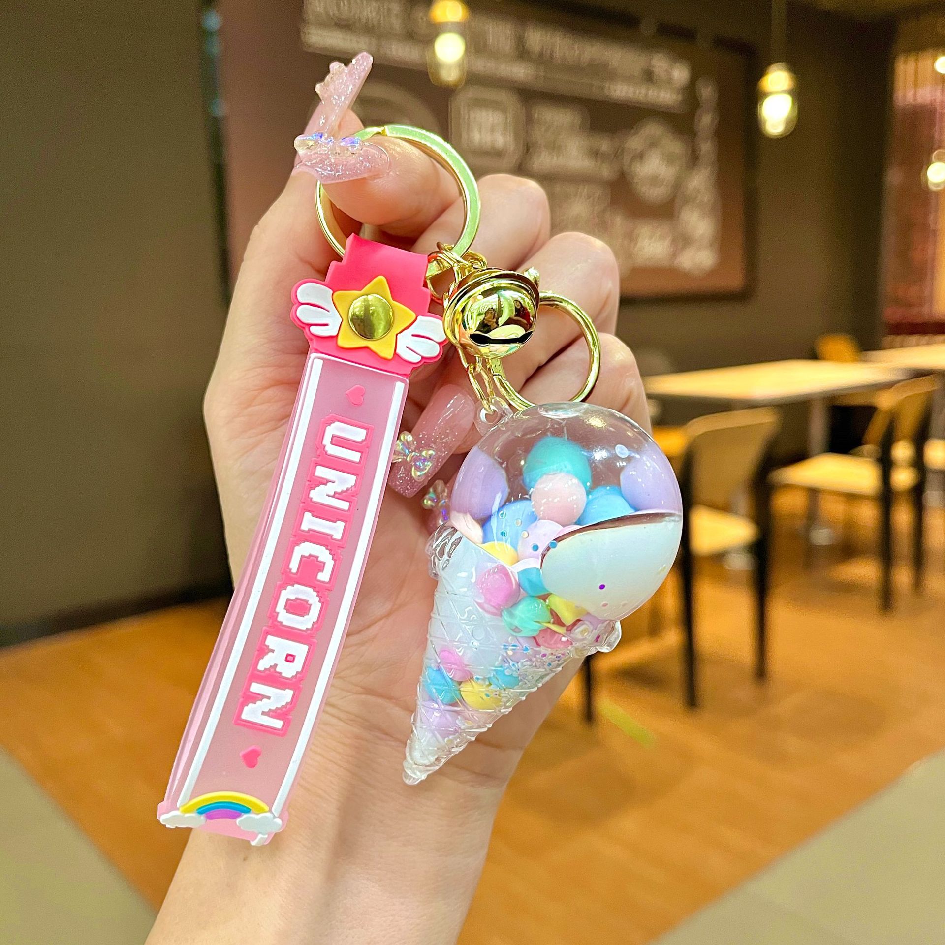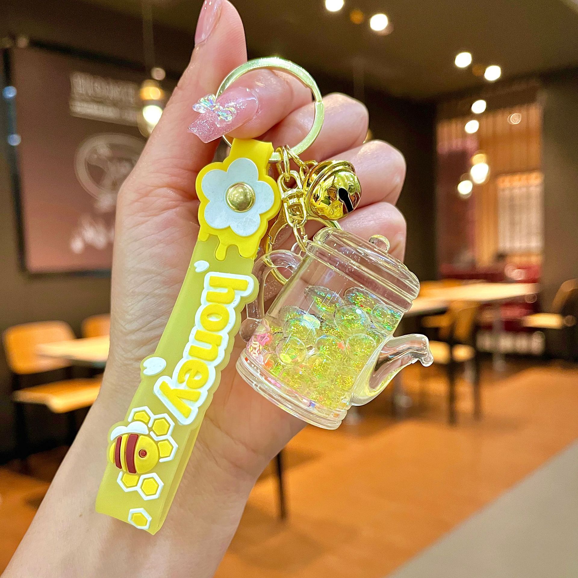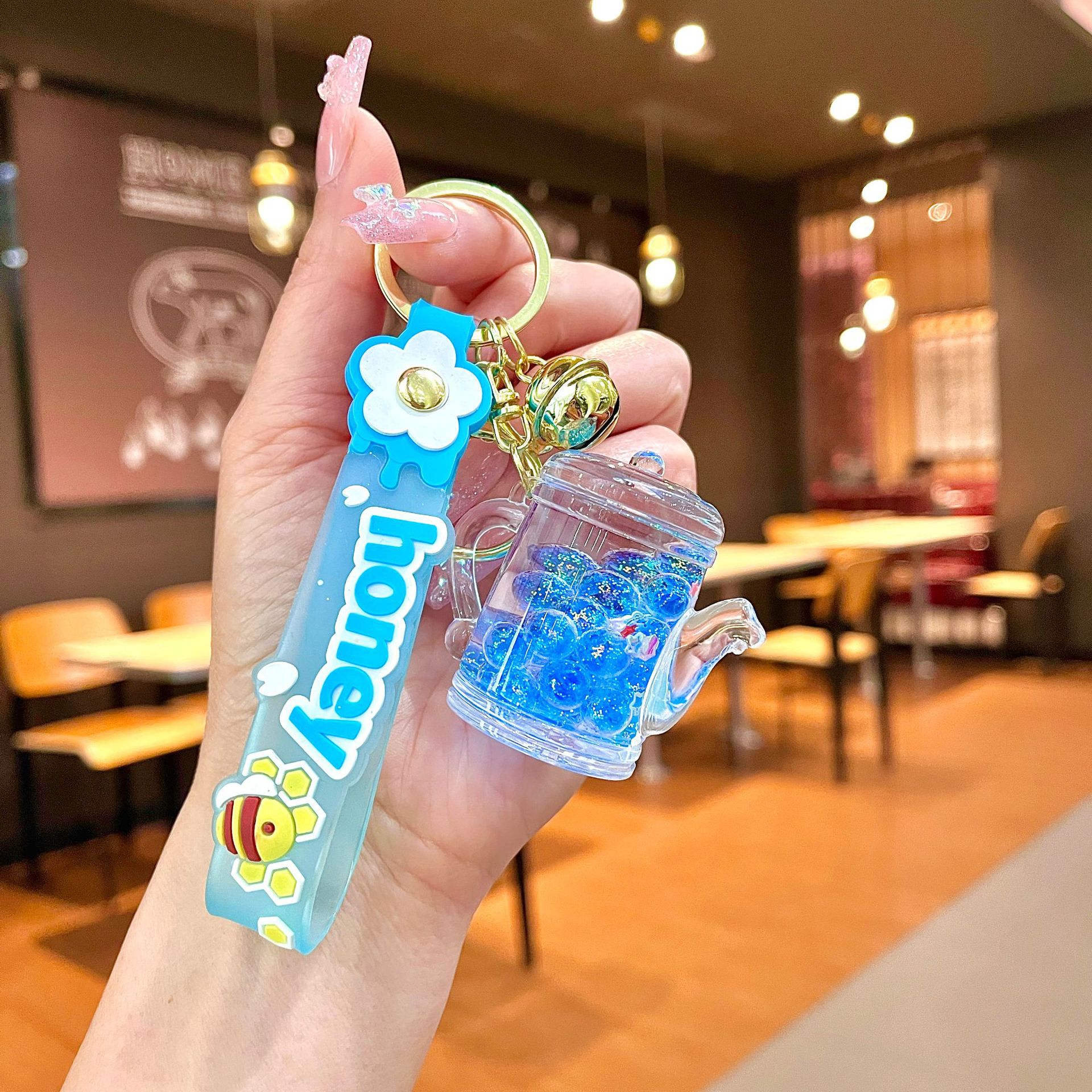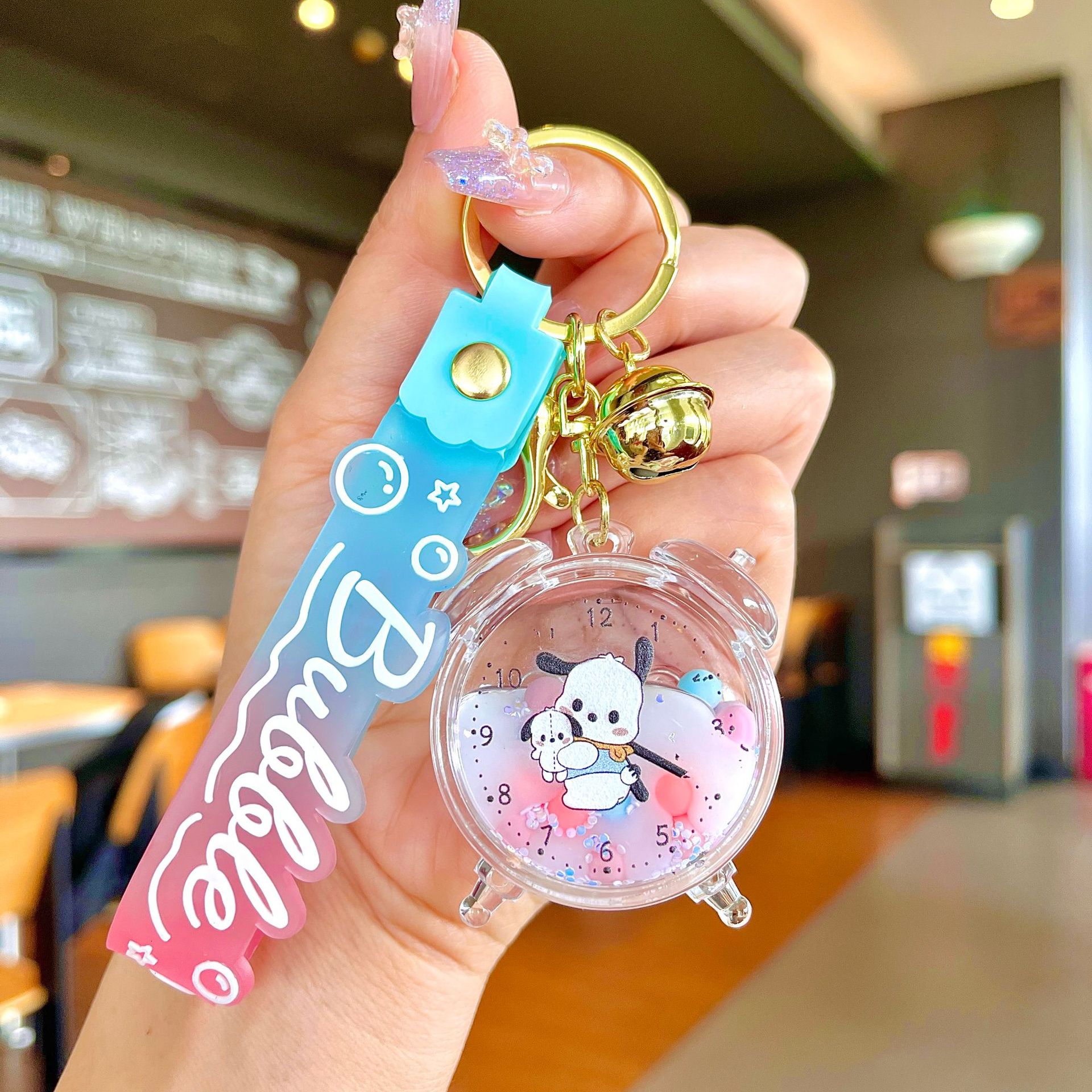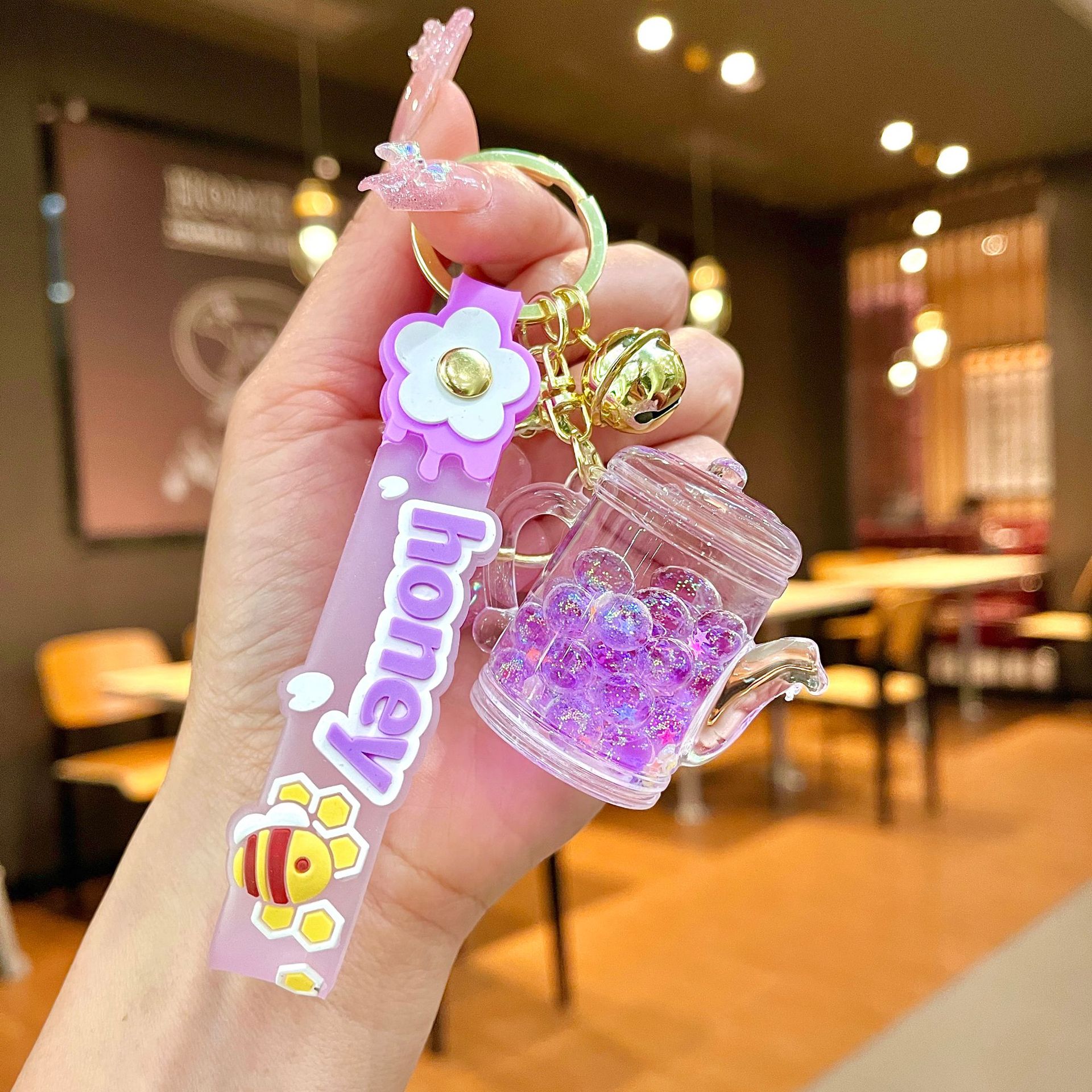 퀵 샌드 병 키 체인에 크리에이 티브 아크릴 오일 빛나는 우유 흰색 미키 헤드 롤리팝 아크릴 펜던트 도매스토어 가기