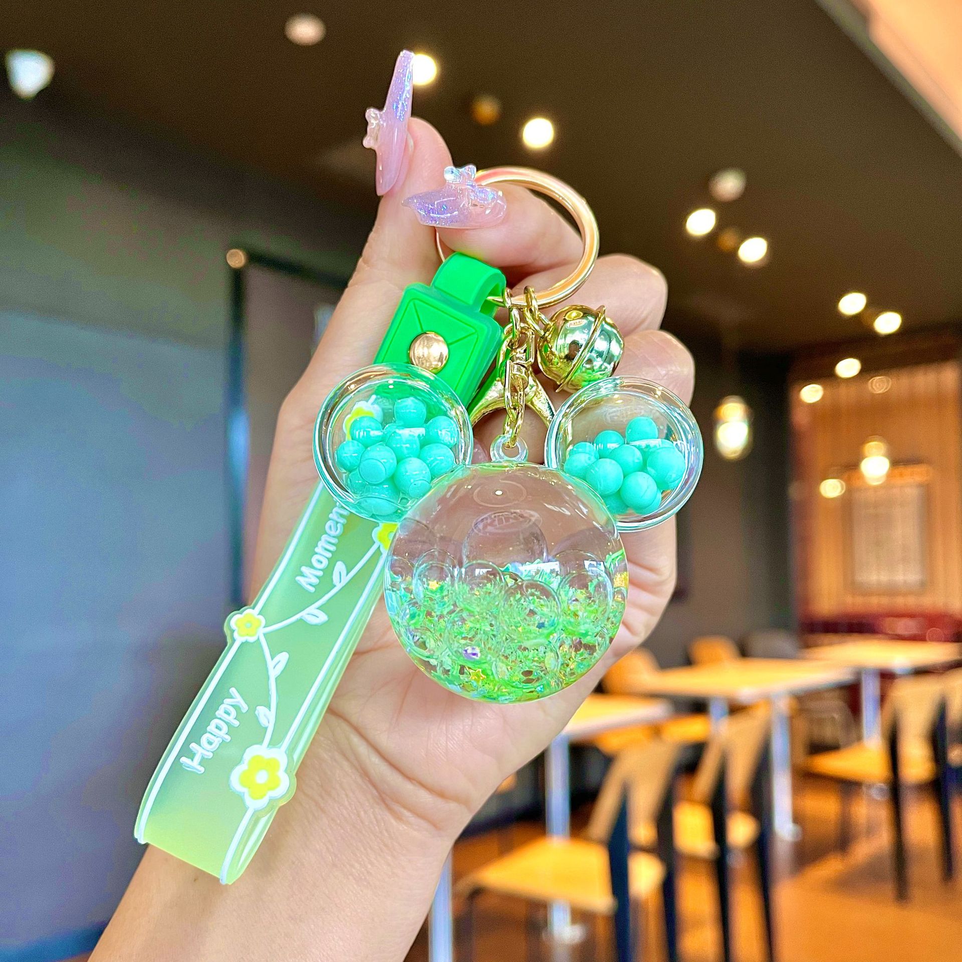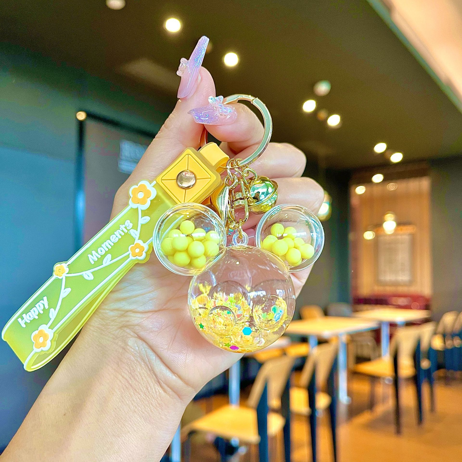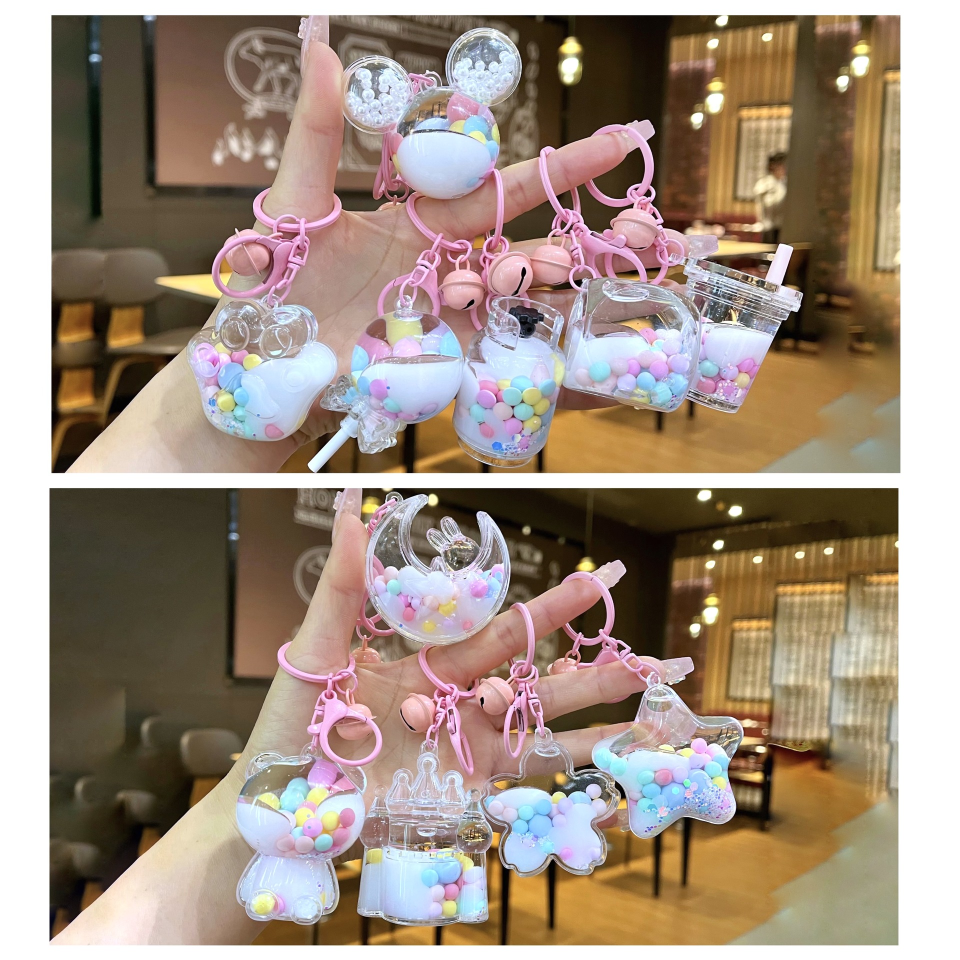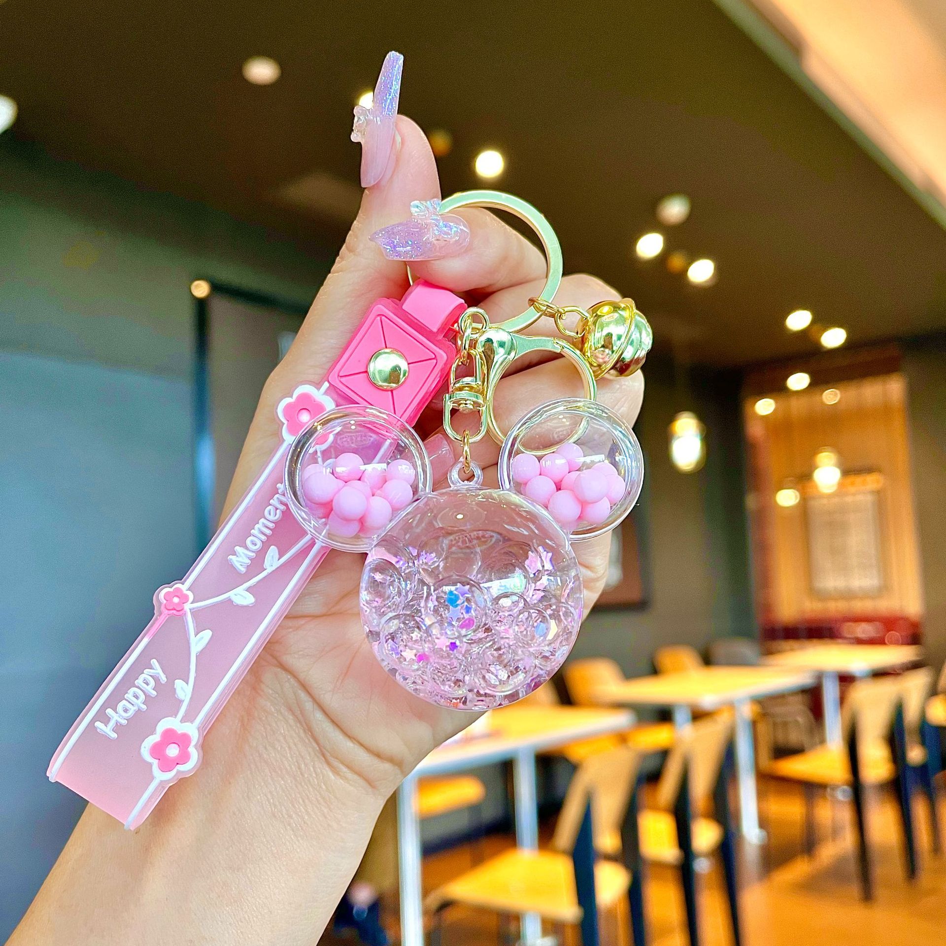 퀵 샌드 병 키 체인에 크리에이 티브 아크릴 오일 빛나는 우유 흰색 미키 헤드 롤리팝 아크릴 펜던트 도매