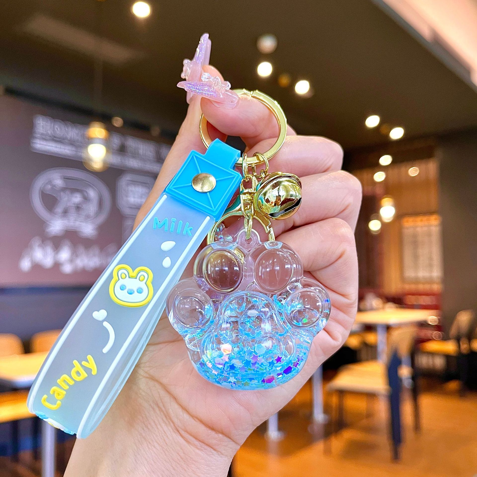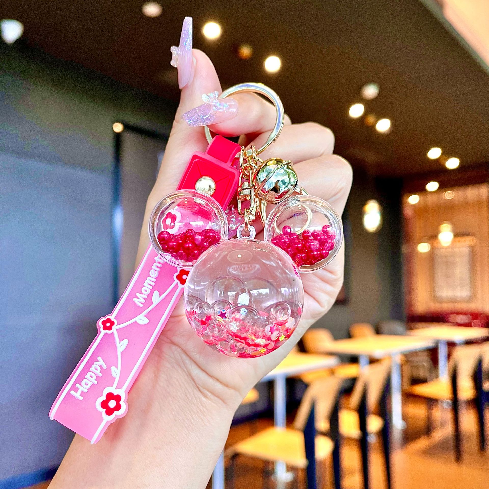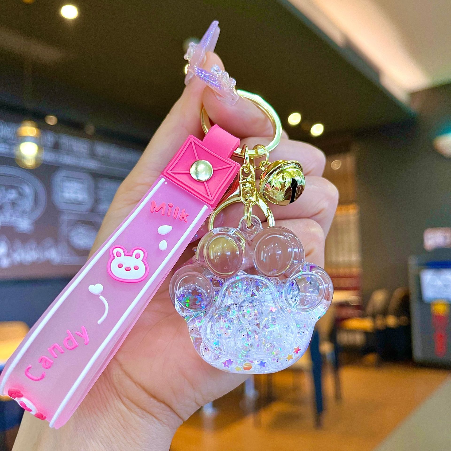 퀵 샌드 병 키 체인에 크리에이 티브 아크릴 오일 빛나는 우유 흰색 미키 헤드 롤리팝 아크릴 펜던트 도매