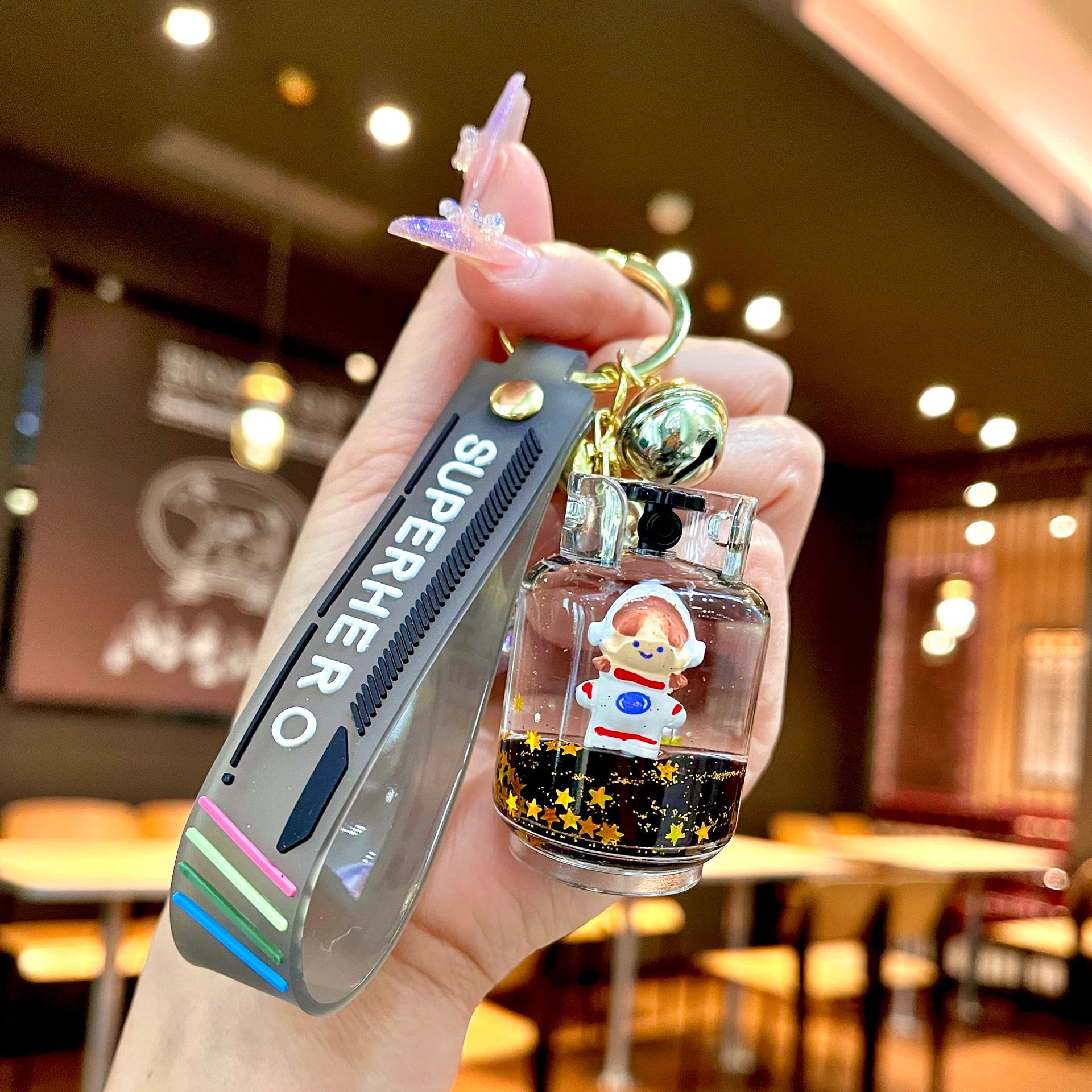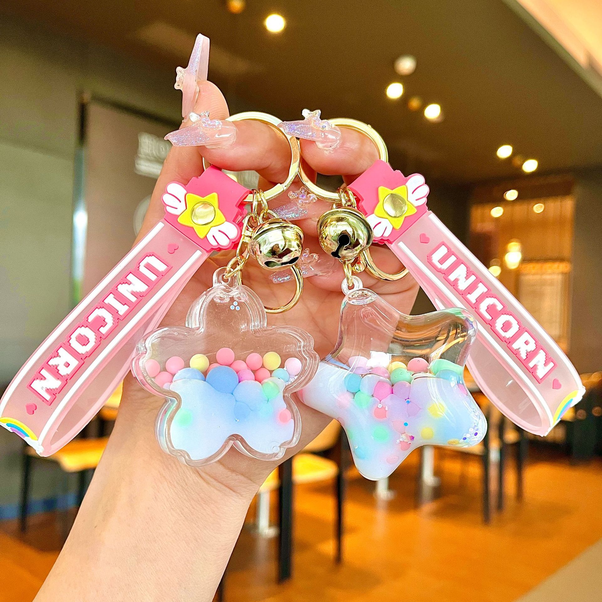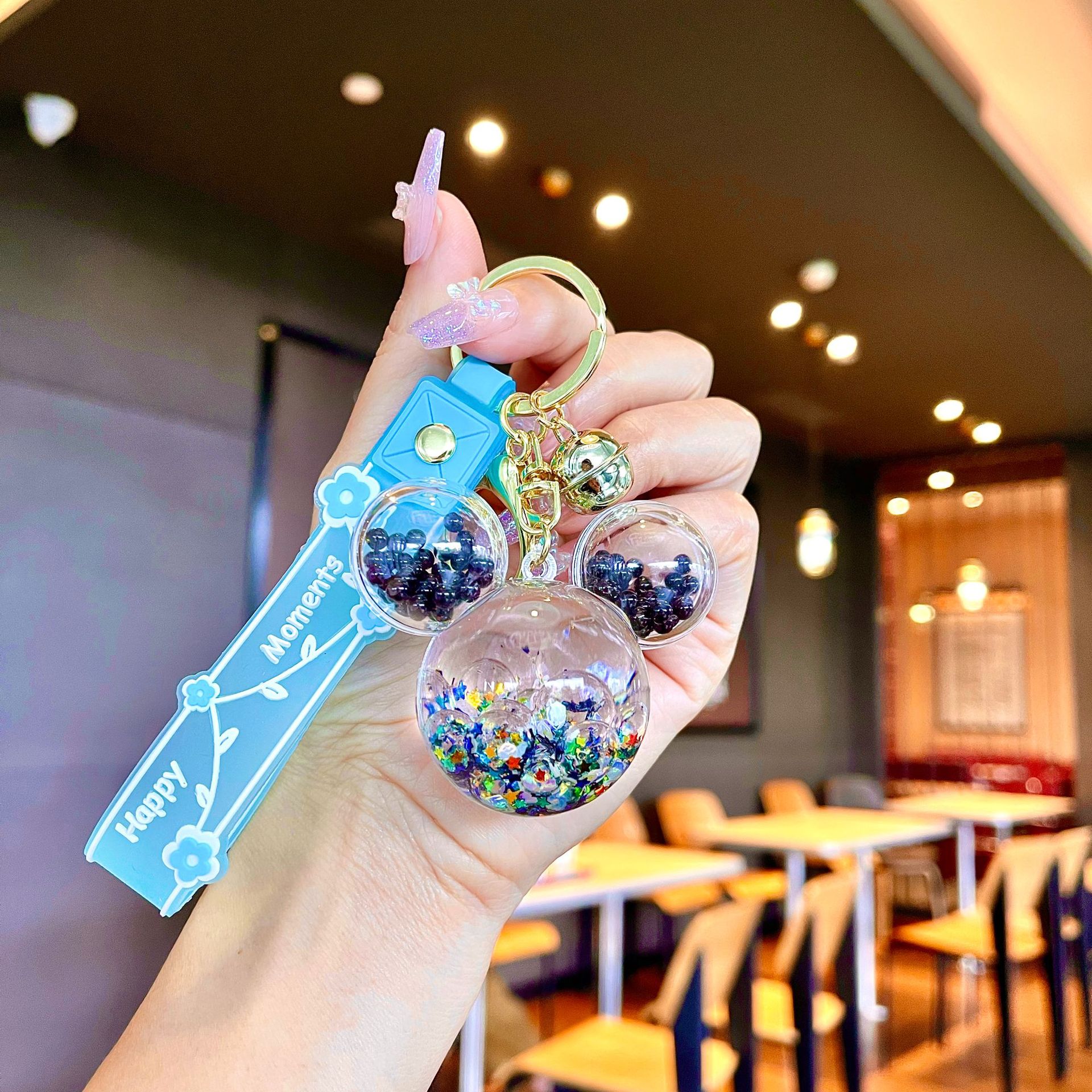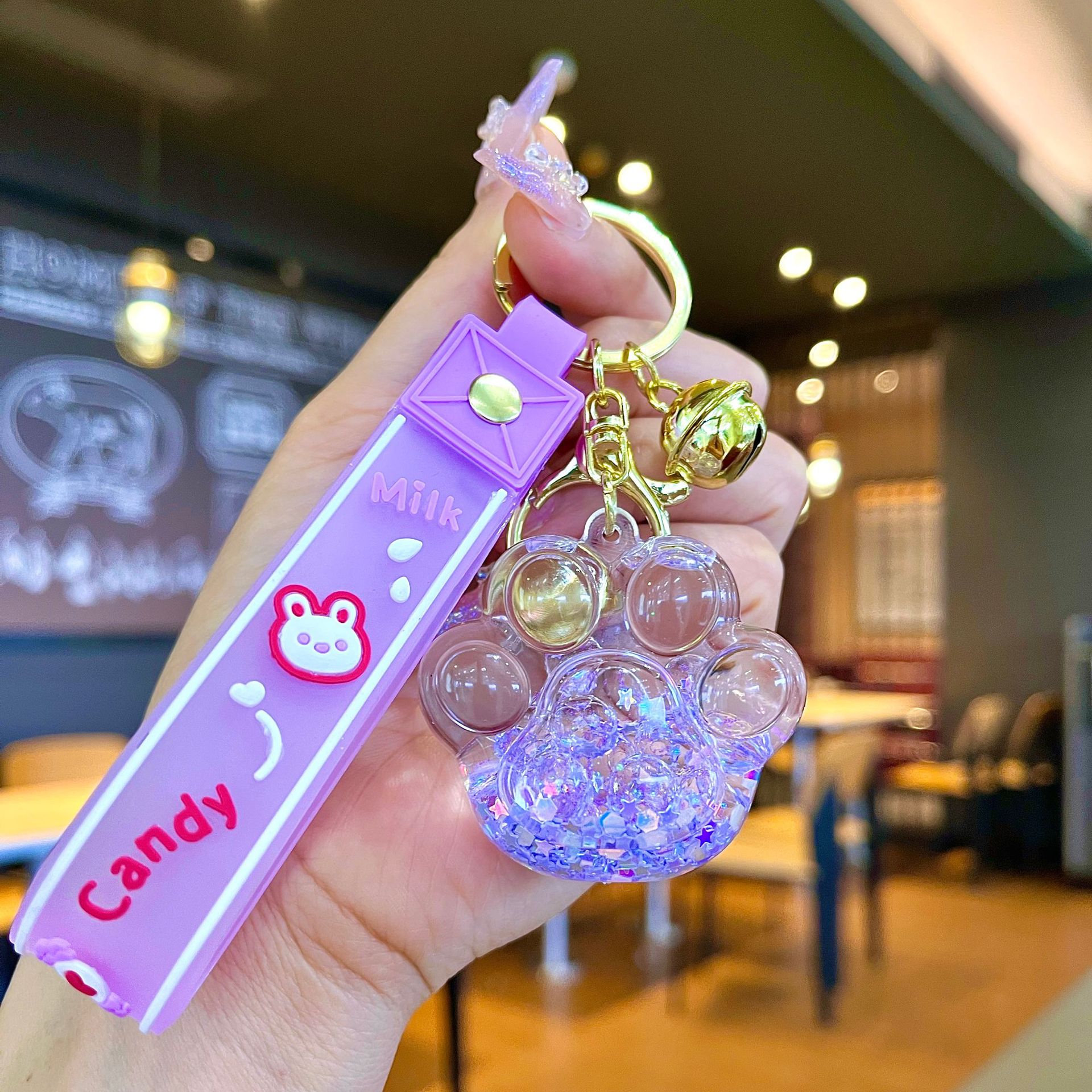 퀵 샌드 병 키 체인에 크리에이 티브 아크릴 오일 빛나는 우유 흰색 미키 헤드 롤리팝 아크릴 펜던트 도매