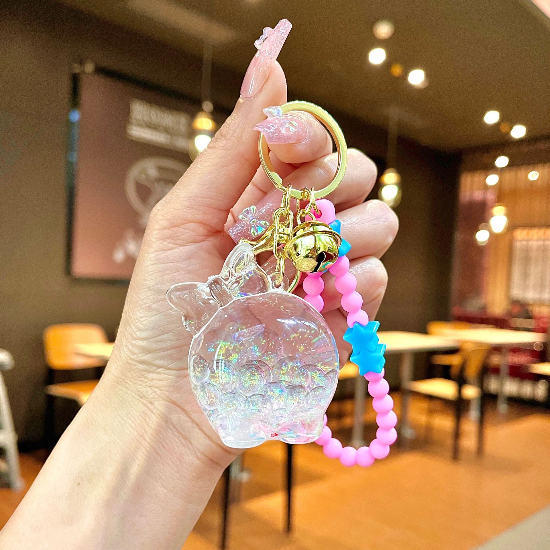 • [핑크] 빛나는 거품 구슬 행운의 고양이