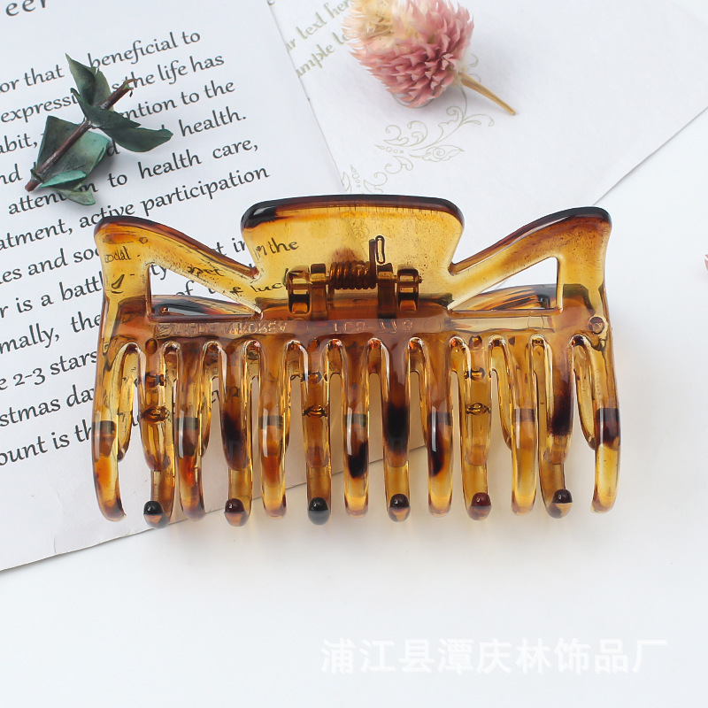 한국 여성 심플 앰버 투명 컬러 헤어 클립 더블 이빨 클립 백 헤드 디스크 헤어 포니테일 클립 헤어 액세서리 도매