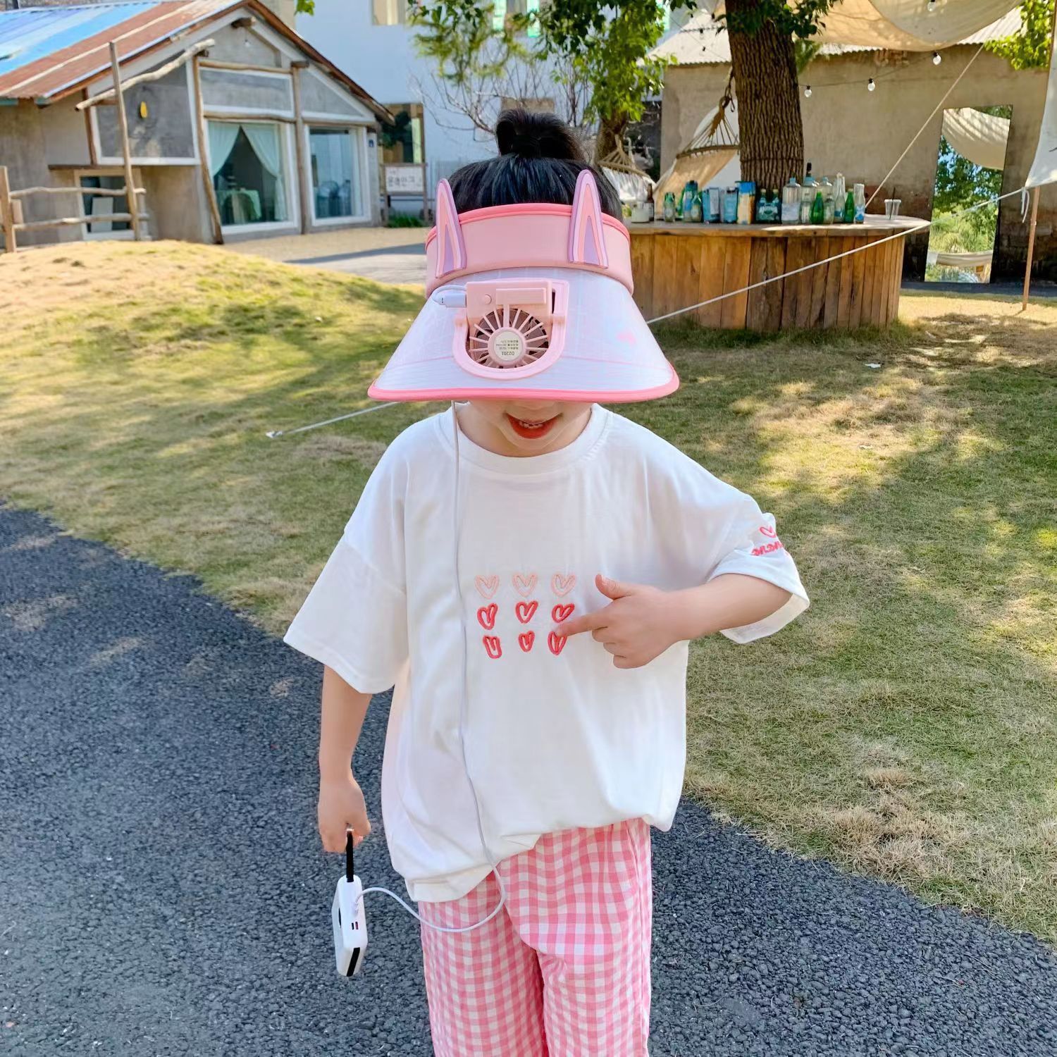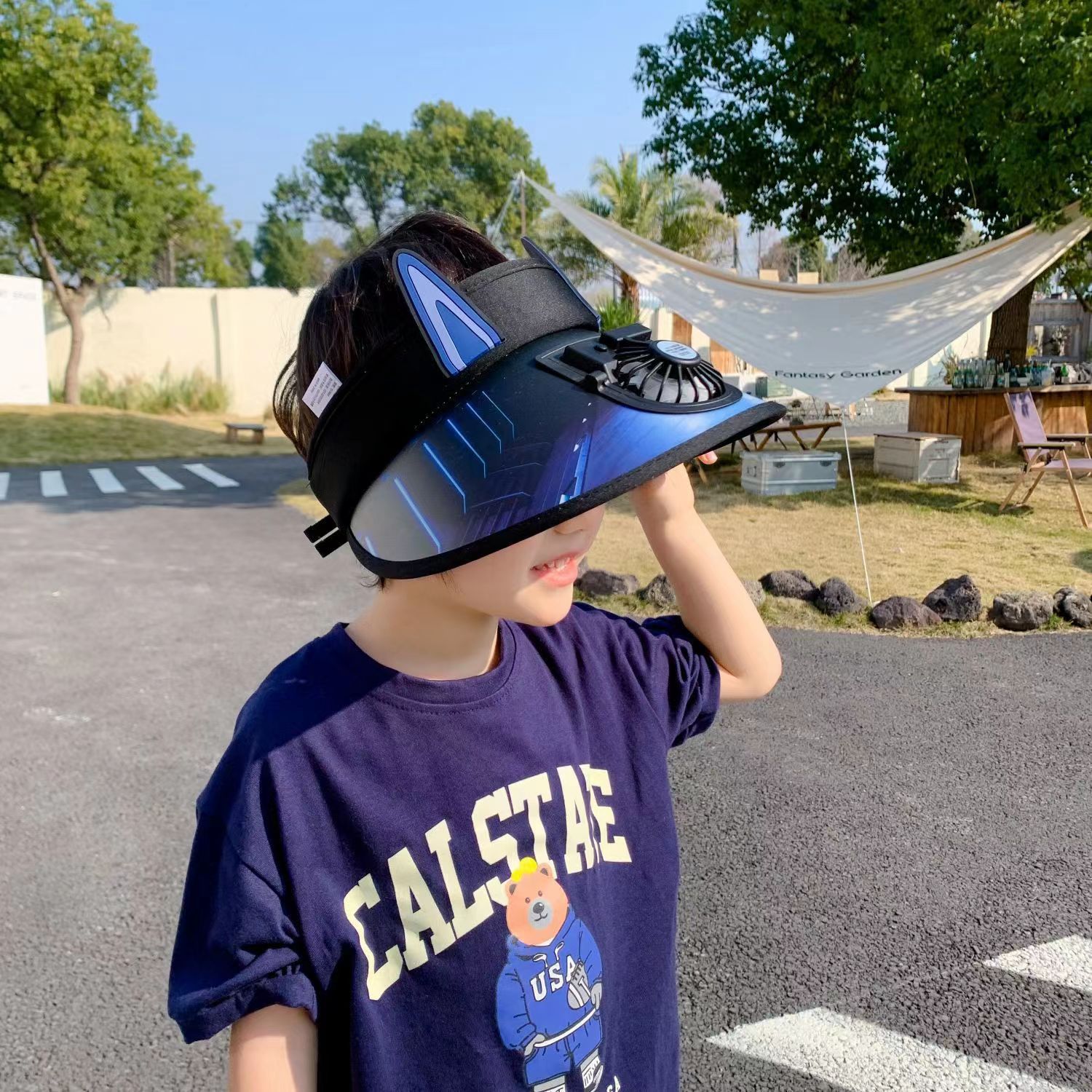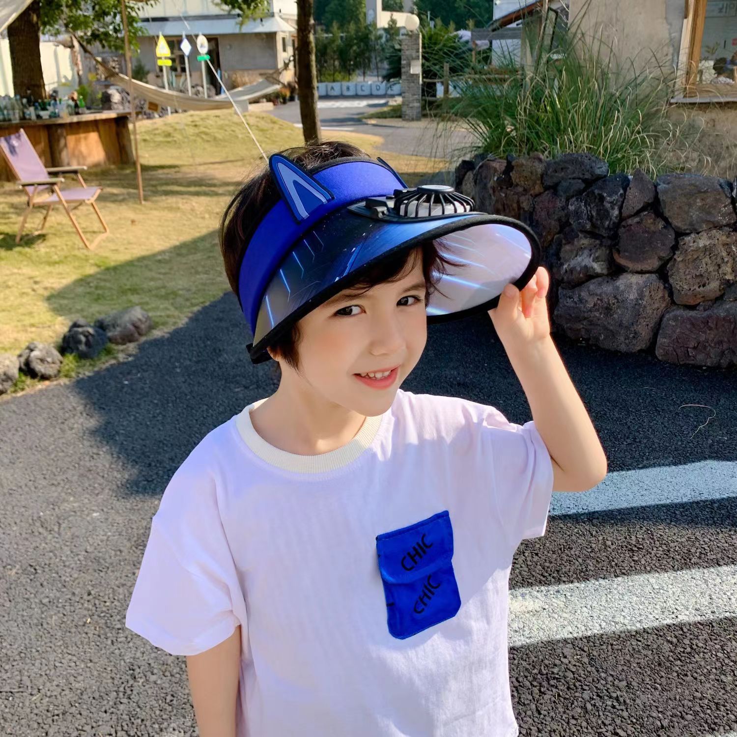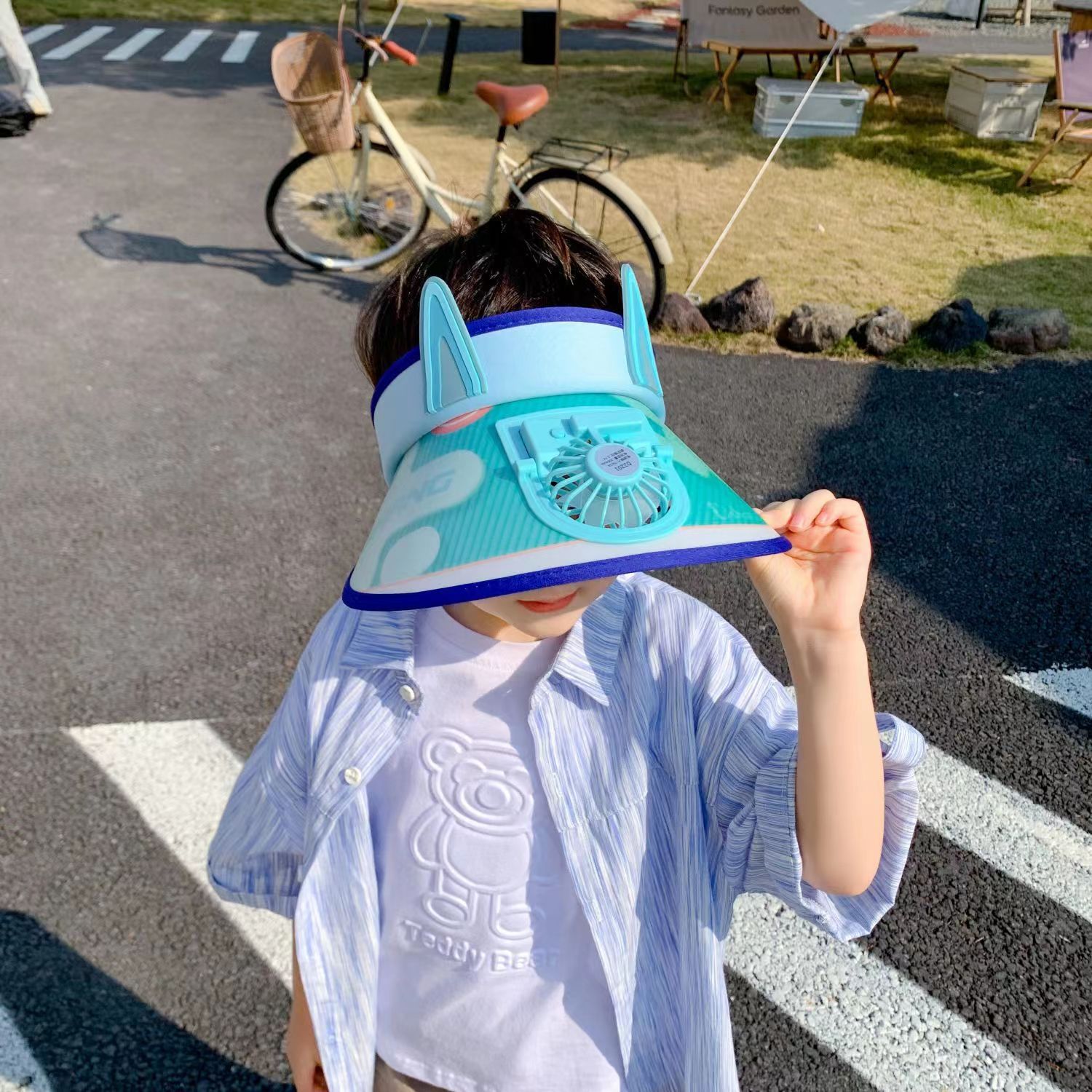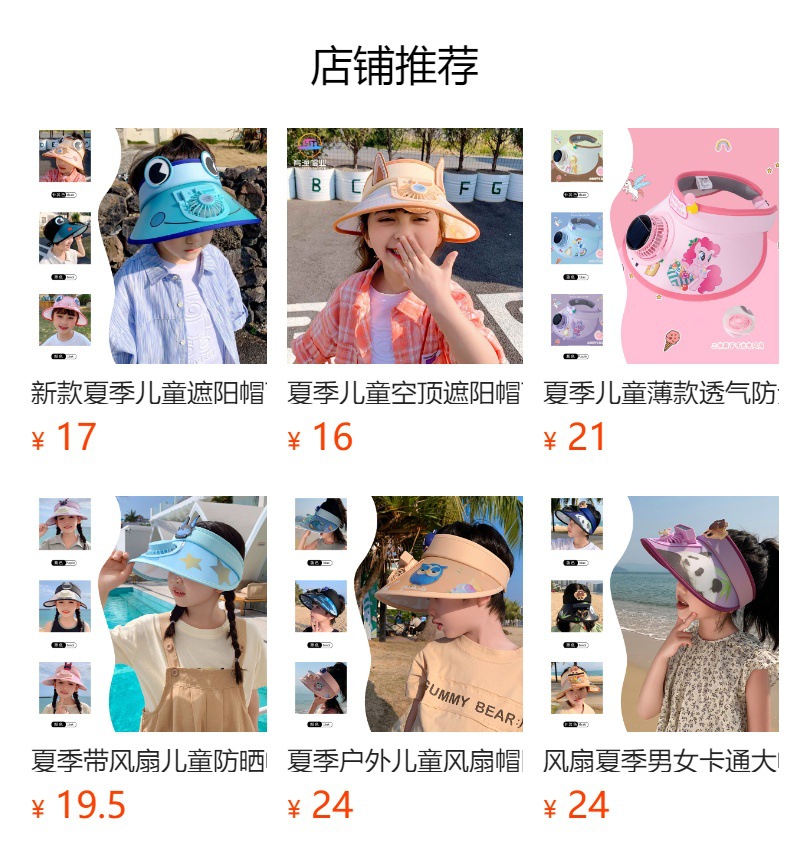 여름 어린이 빈 상단 태양 모자 팬으로 충전식 만화 큰 챙 태양 보호 통기성 패션 소년스토어 가기