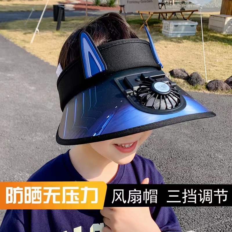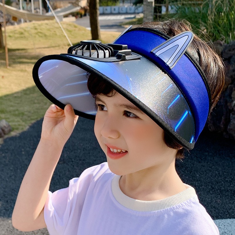 여름 어린이 빈 상단 태양 모자 팬으로 충전식 만화 큰 챙 태양 보호 통기성 패션 소년