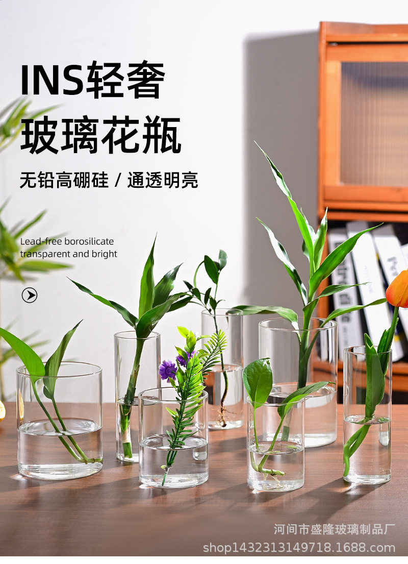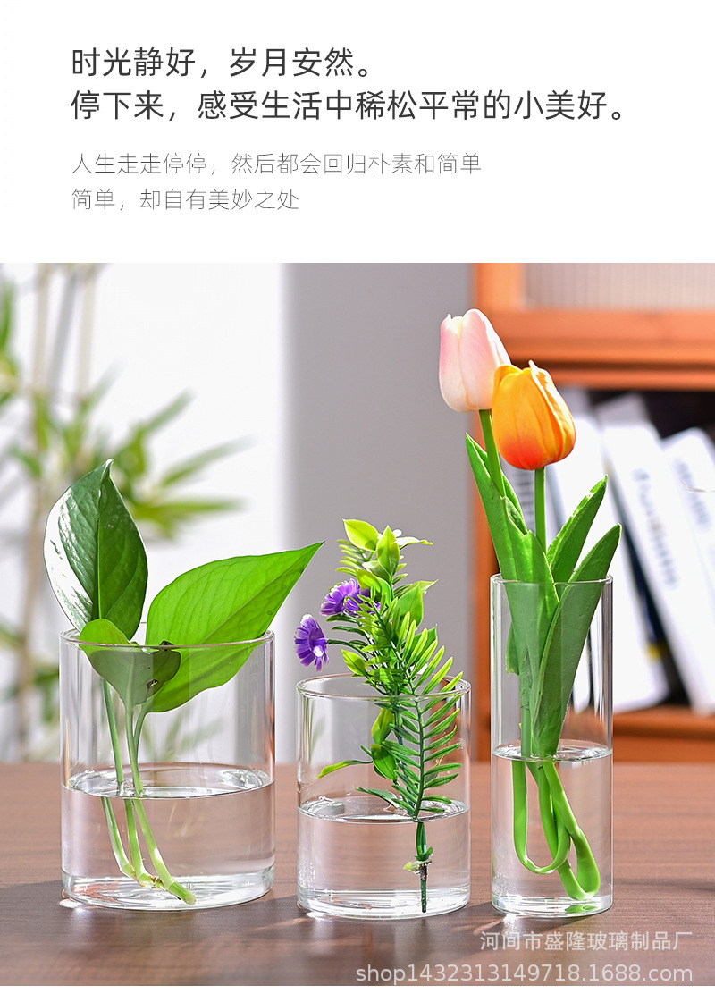 고붕규산직선형 유리 꽃병 수경재배 식물 꽃꽂이용 창의적인 수족관 풍경 화분 녹색 덩굴 작은 어항스토어 가기