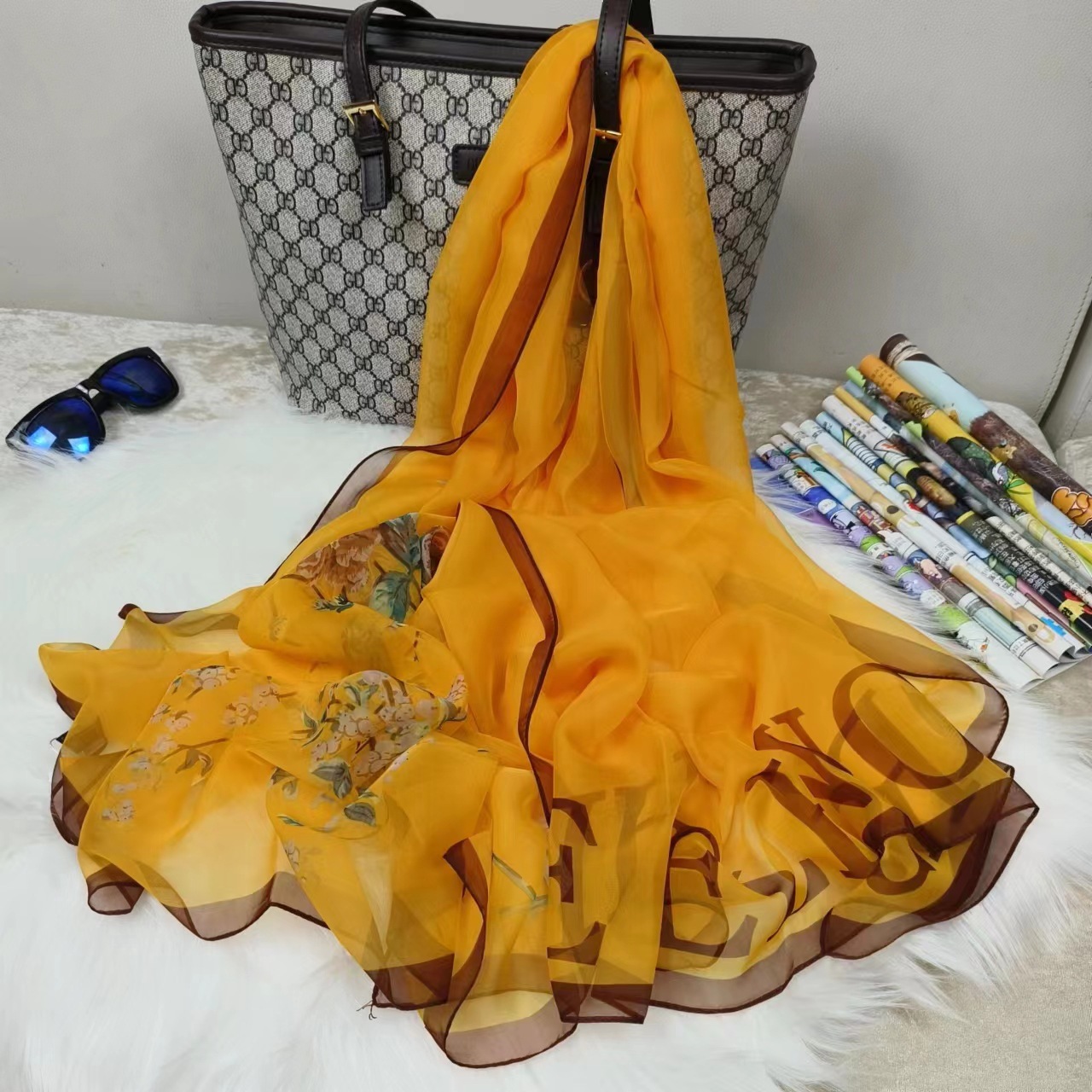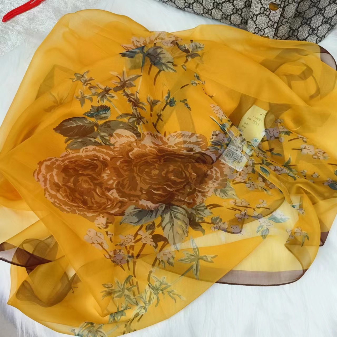새로운 Yourou 원사 실크 스카프 골드 리프 프린트 비치 타올 여행 휴일 자외선 차단제 숄 모든 매치 스카프 도매 여성스토어 가기