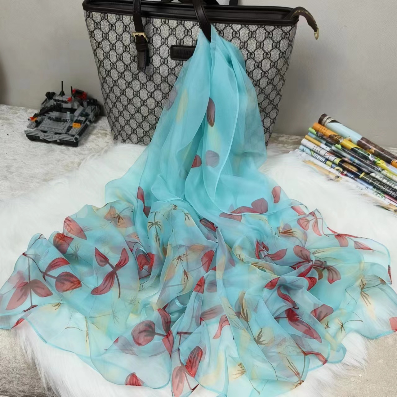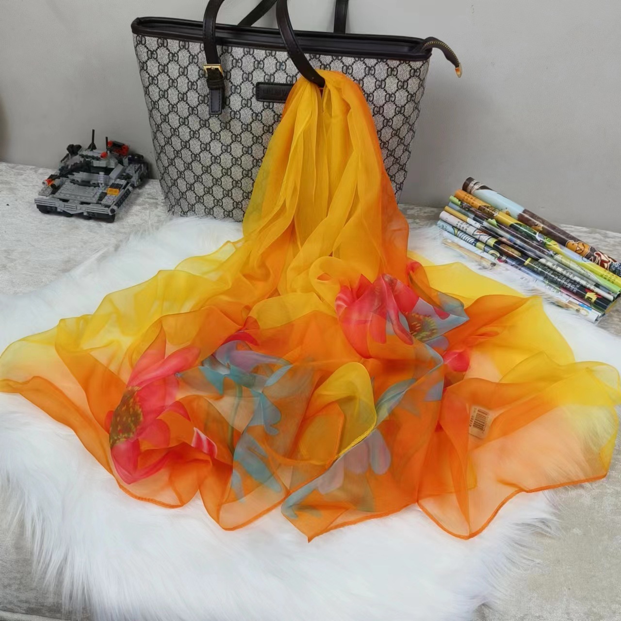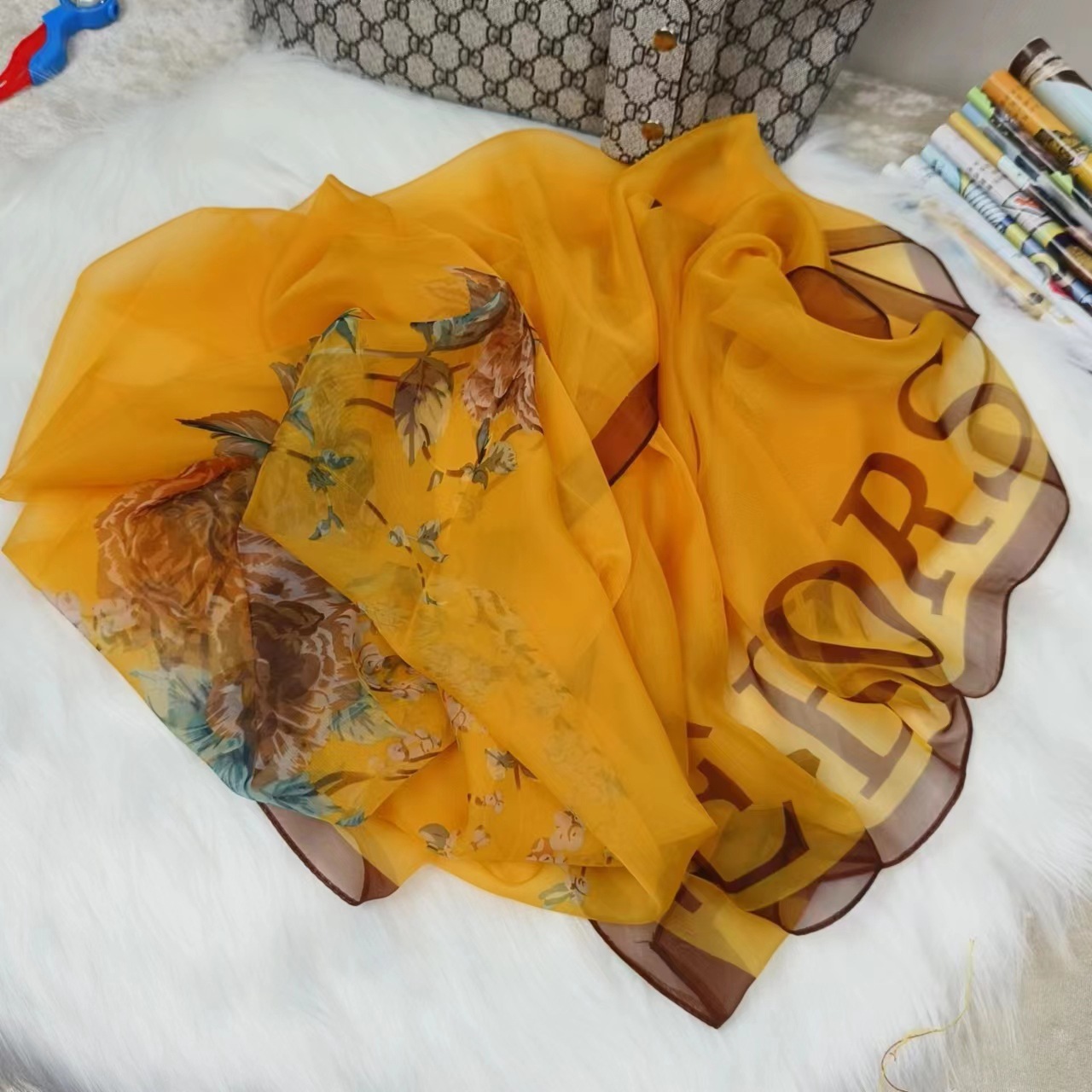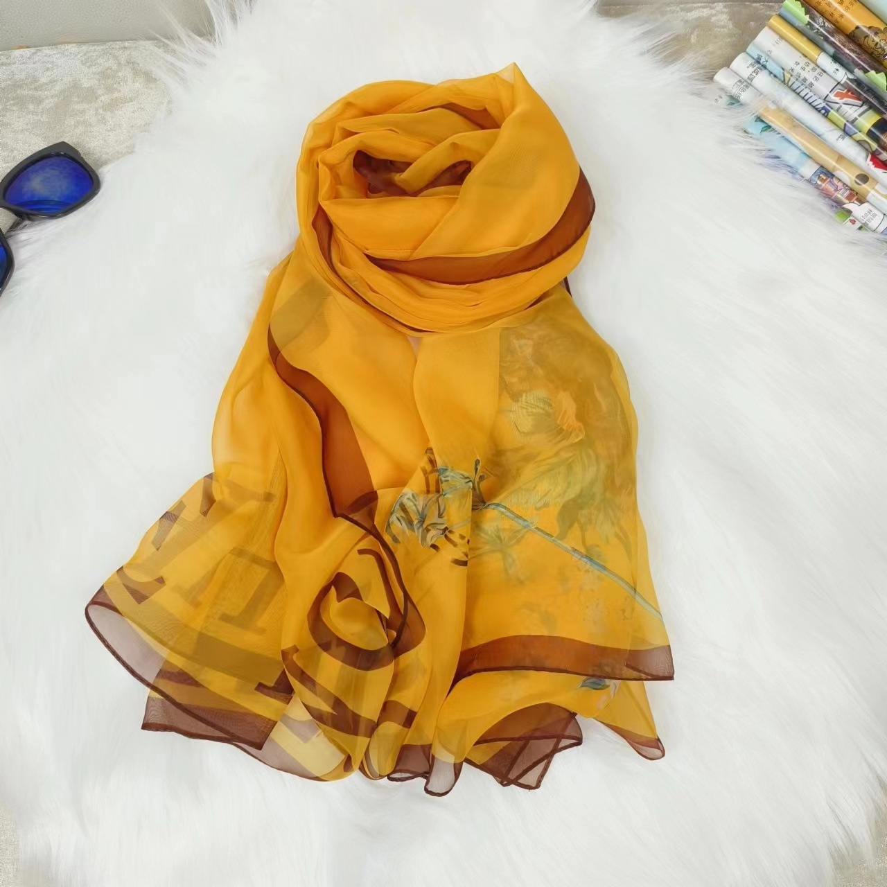 새로운 Yourou 원사 실크 스카프 골드 리프 프린트 비치 타올 여행 휴일 자외선 차단제 숄 모든 매치 스카프 도매 여성