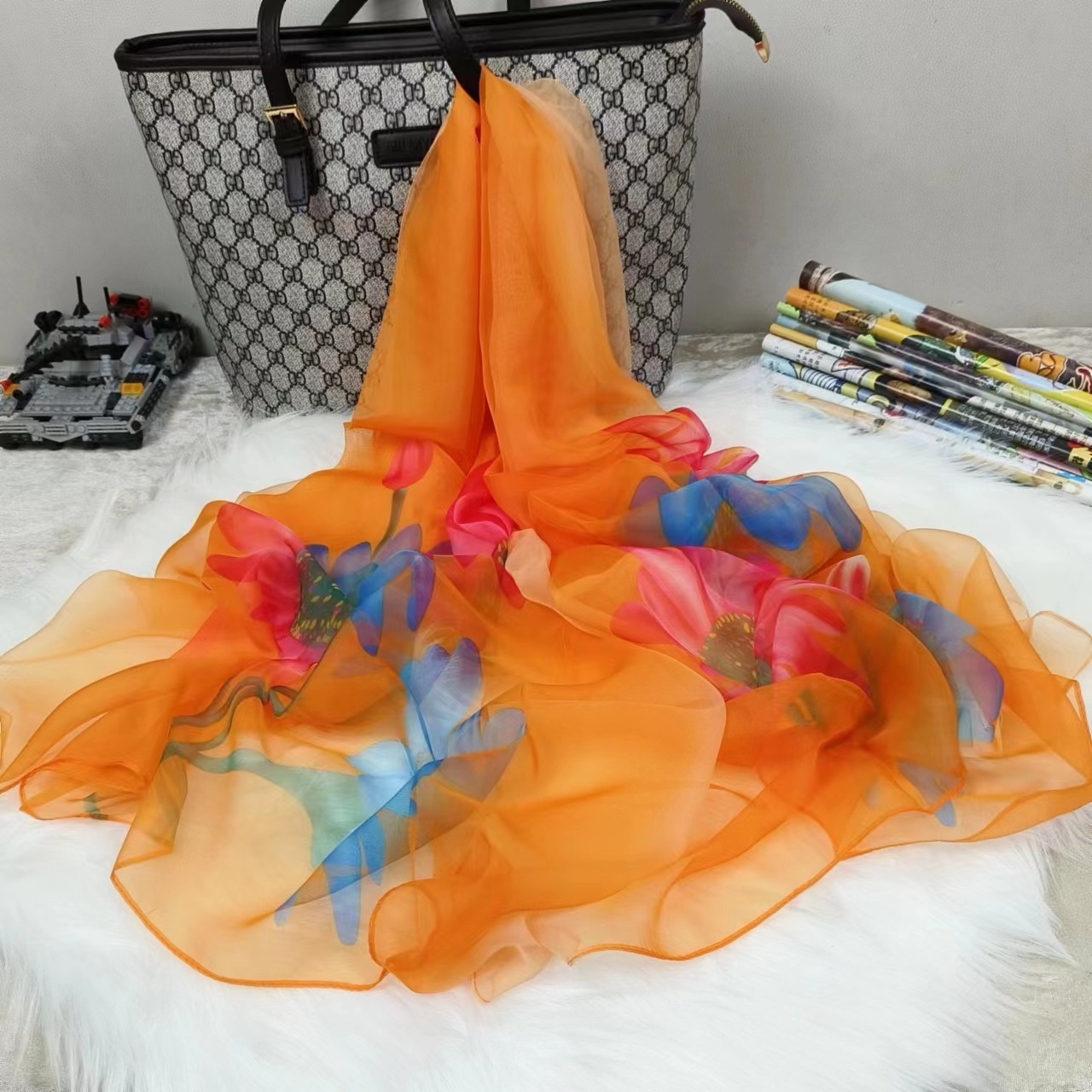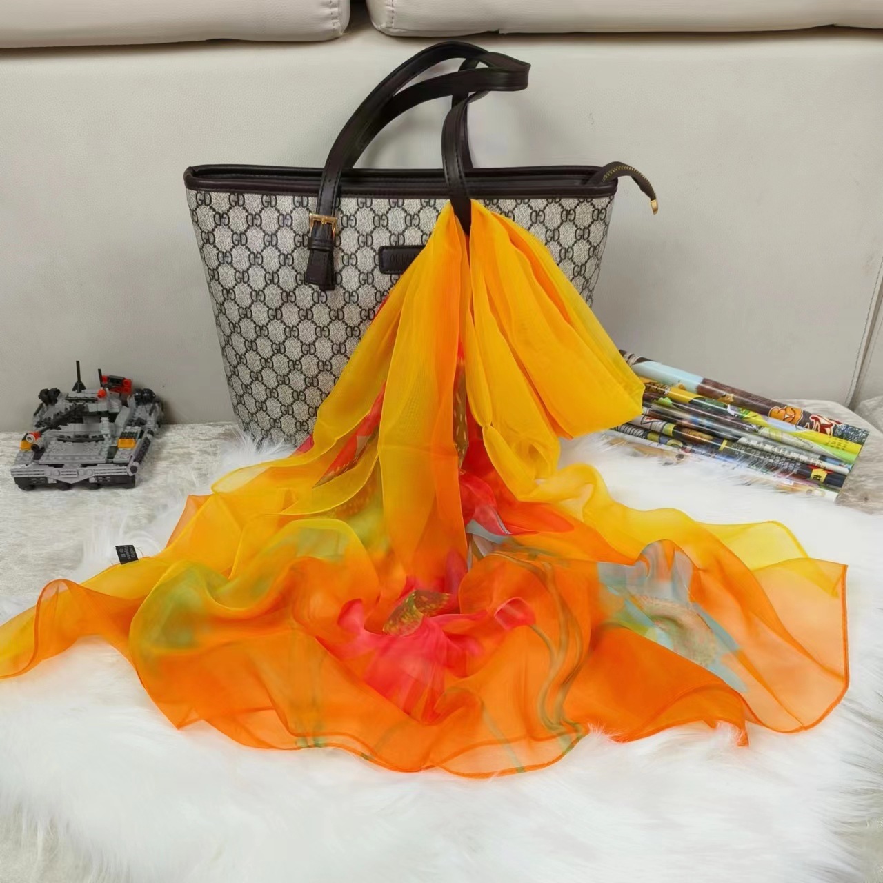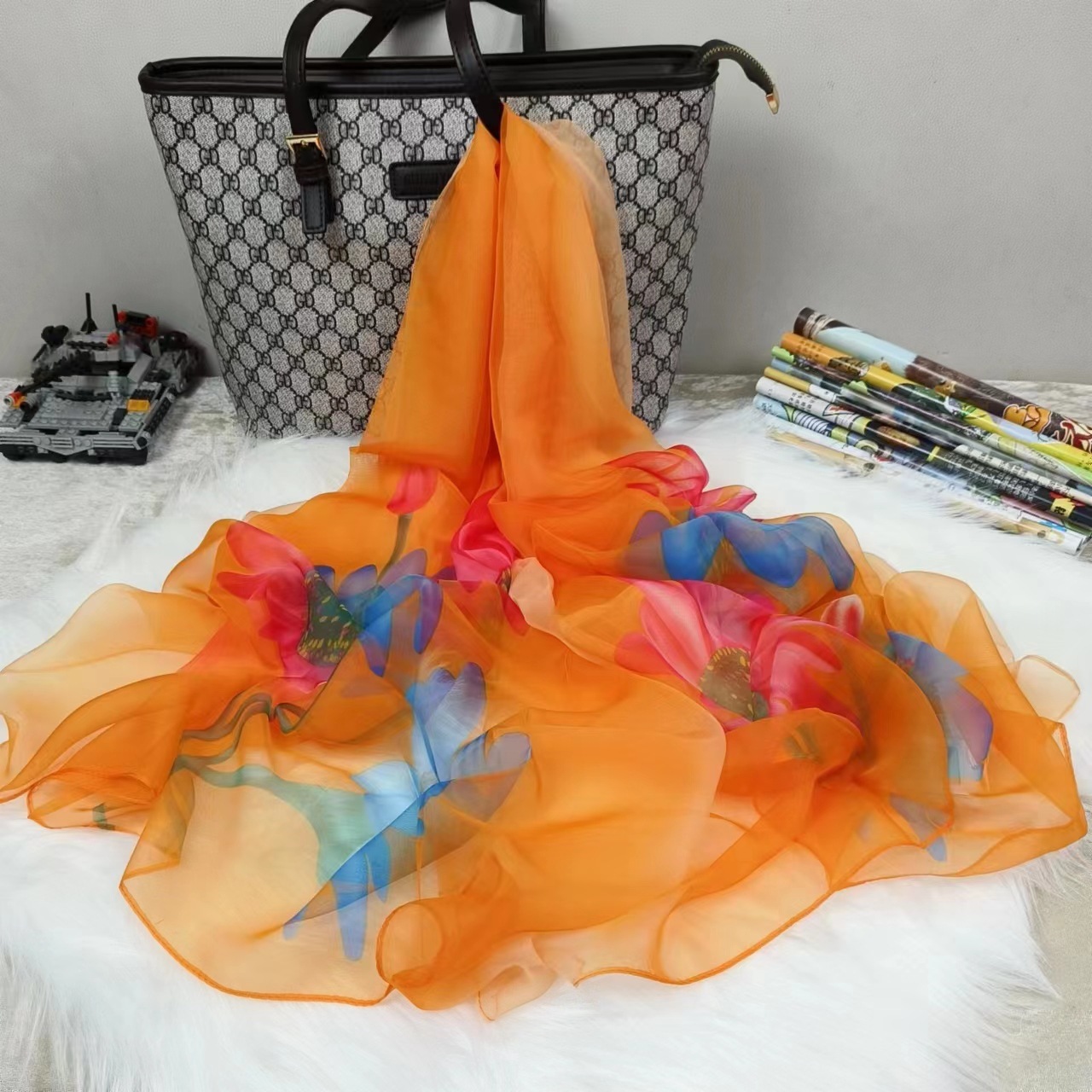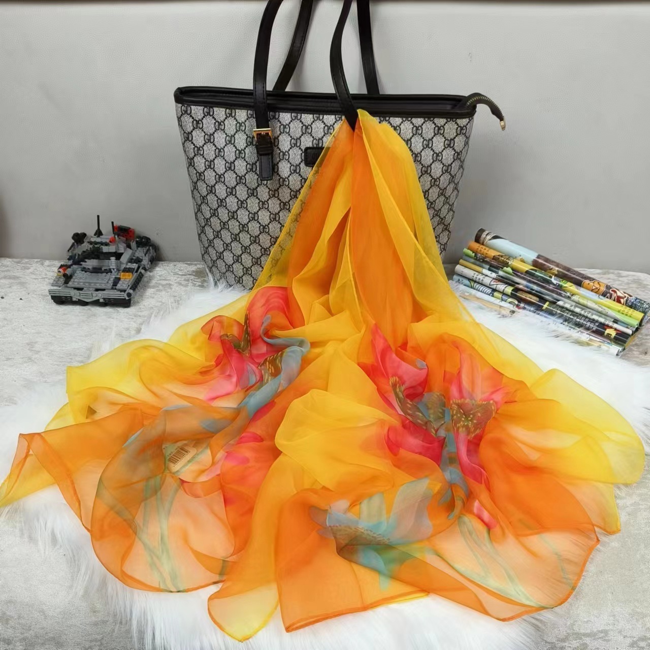 새로운 Yourou 원사 실크 스카프 골드 리프 프린트 비치 타올 여행 휴일 자외선 차단제 숄 모든 매치 스카프 도매 여성