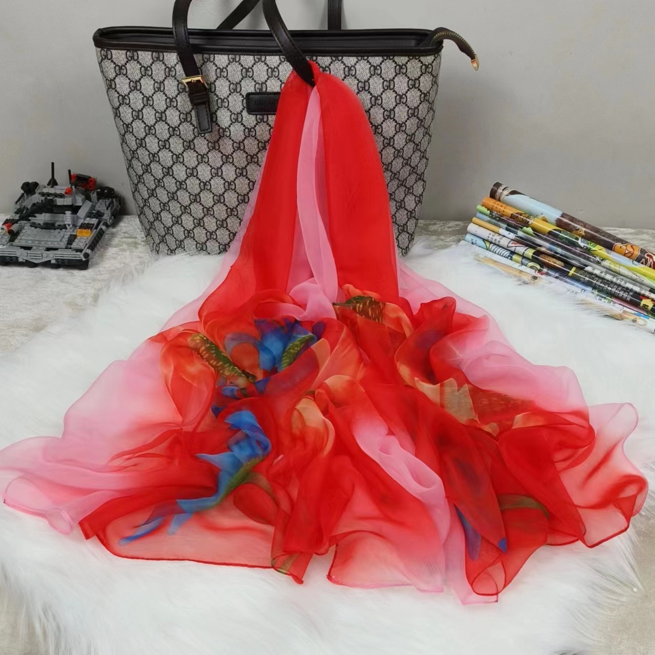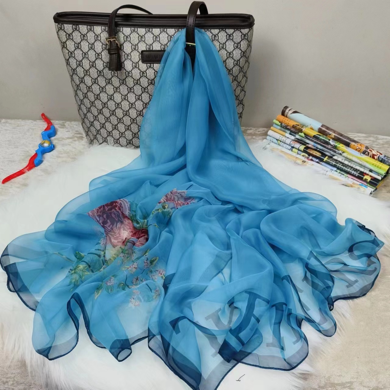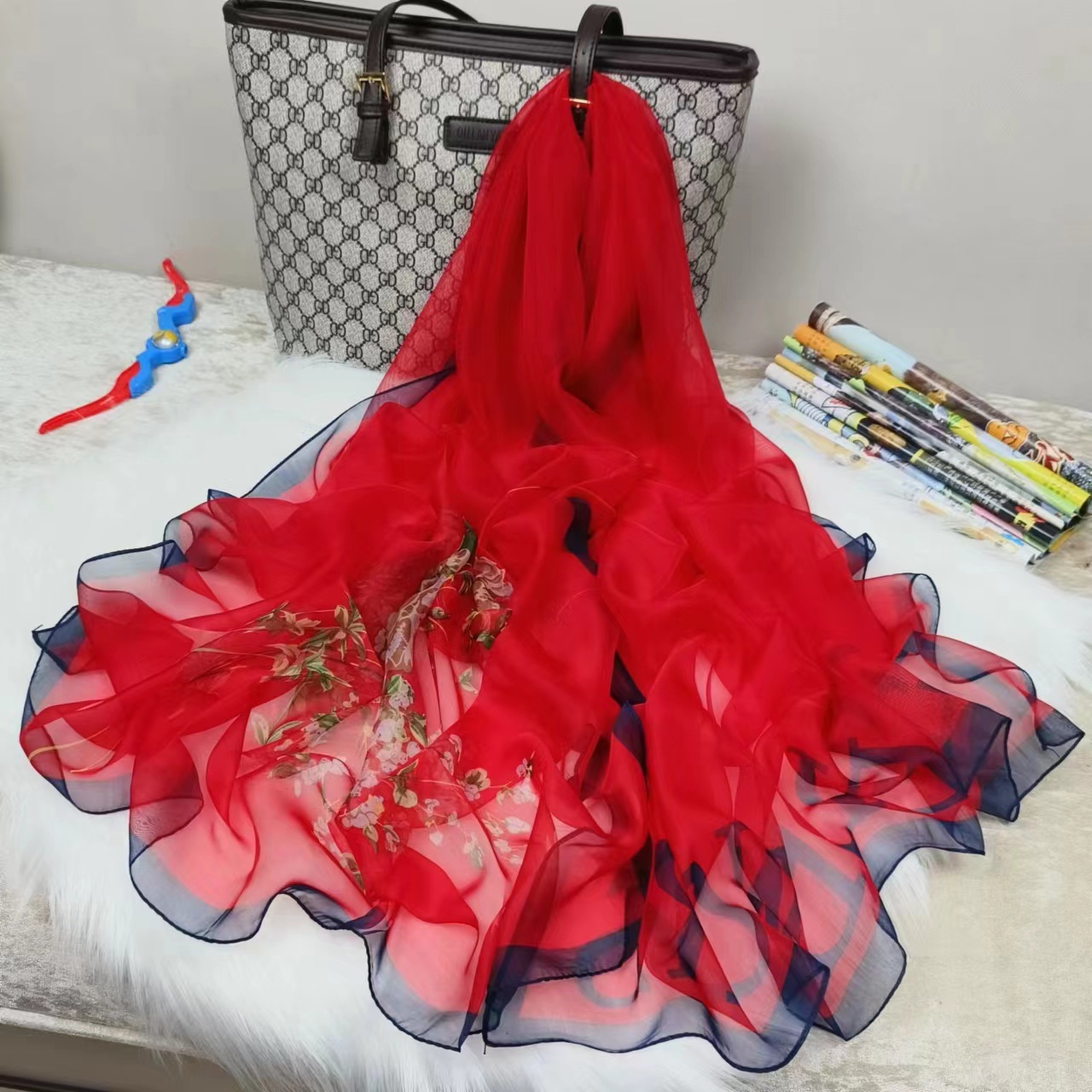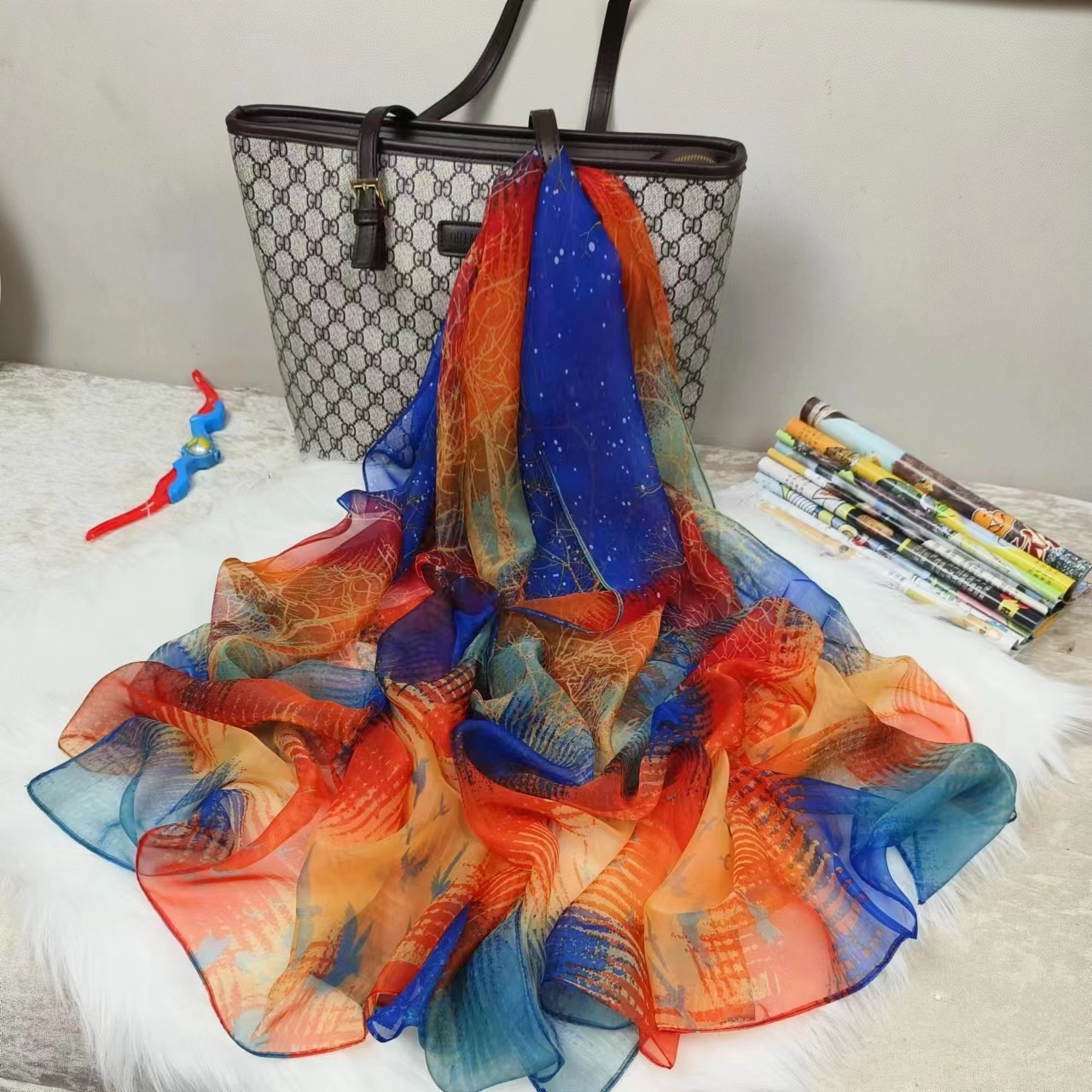 새로운 Yourou 원사 실크 스카프 골드 리프 프린트 비치 타올 여행 휴일 자외선 차단제 숄 모든 매치 스카프 도매 여성