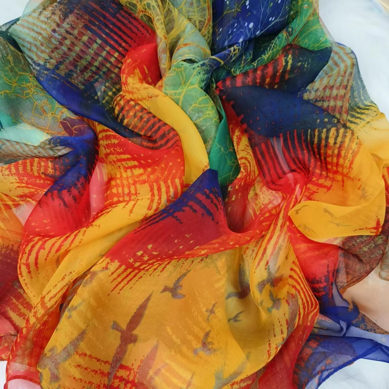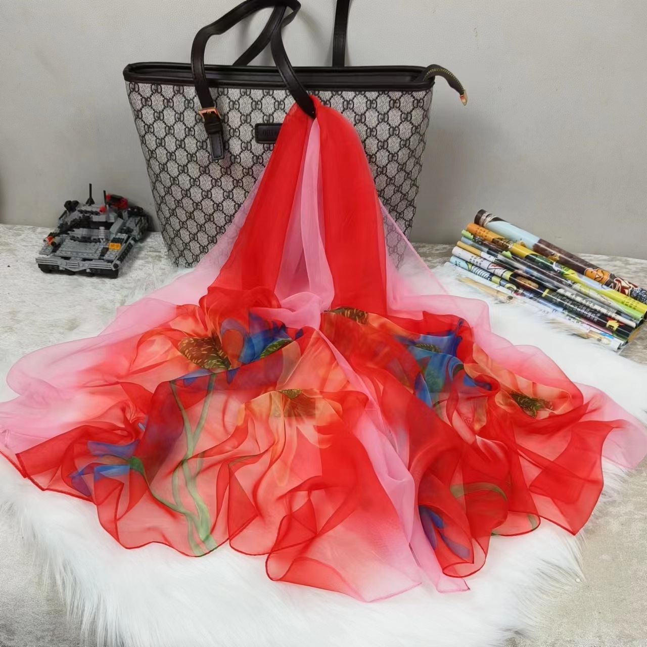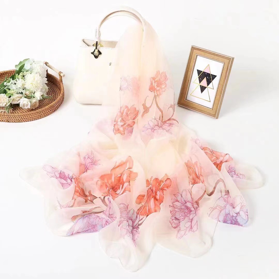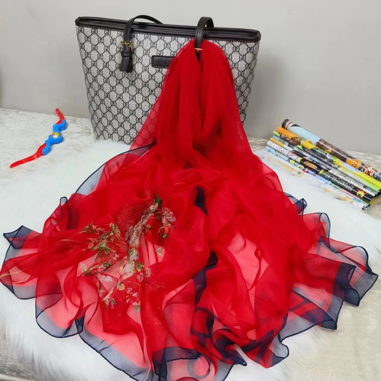 새로운 Yourou 원사 실크 스카프 골드 리프 프린트 비치 타올 여행 휴일 자외선 차단제 숄 모든 매치 스카프 도매 여성