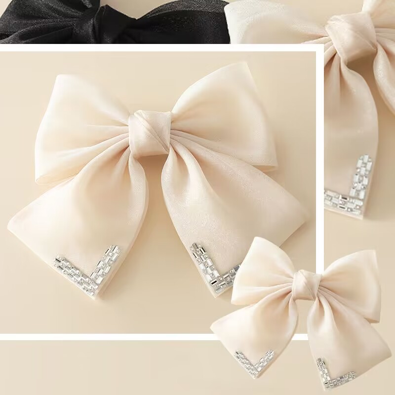 한국 간단한 복고풍 모조 다이아몬드 거품 거즈 활 봄 클립 우아한 기질 하이 엔드 헤드 플레이트 머리핀 여성스토어 가기
